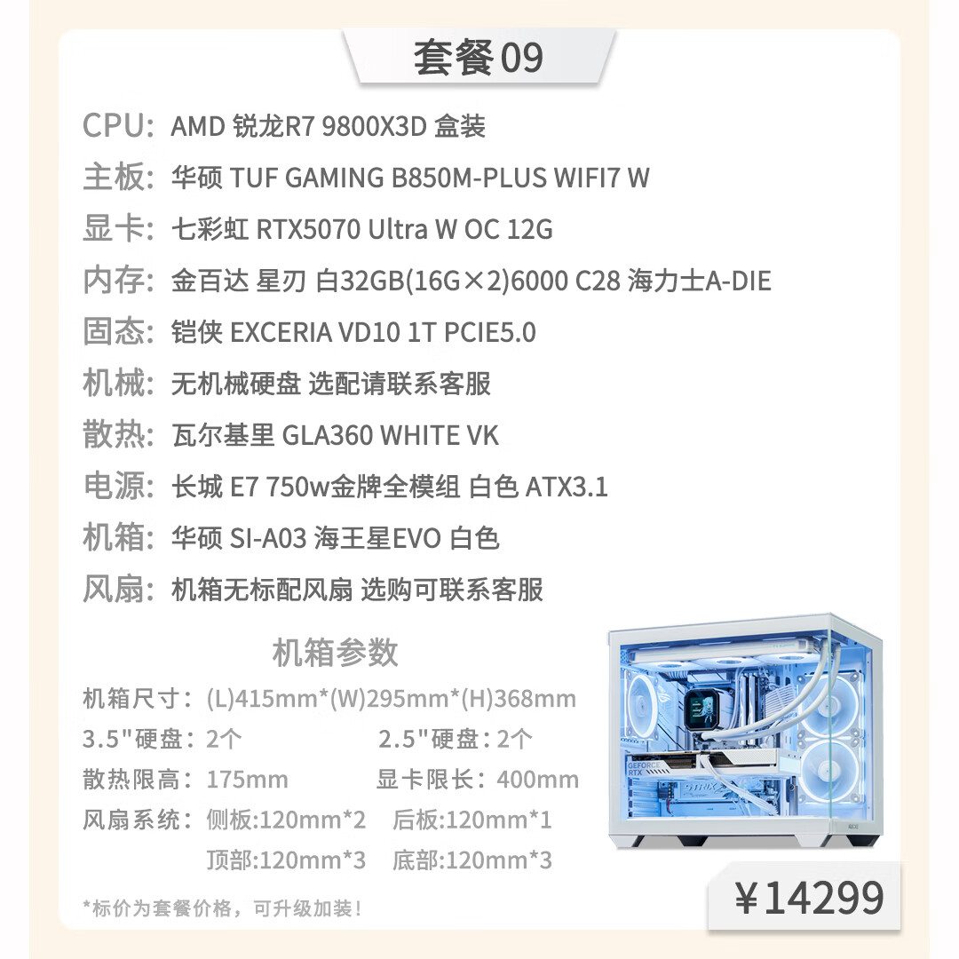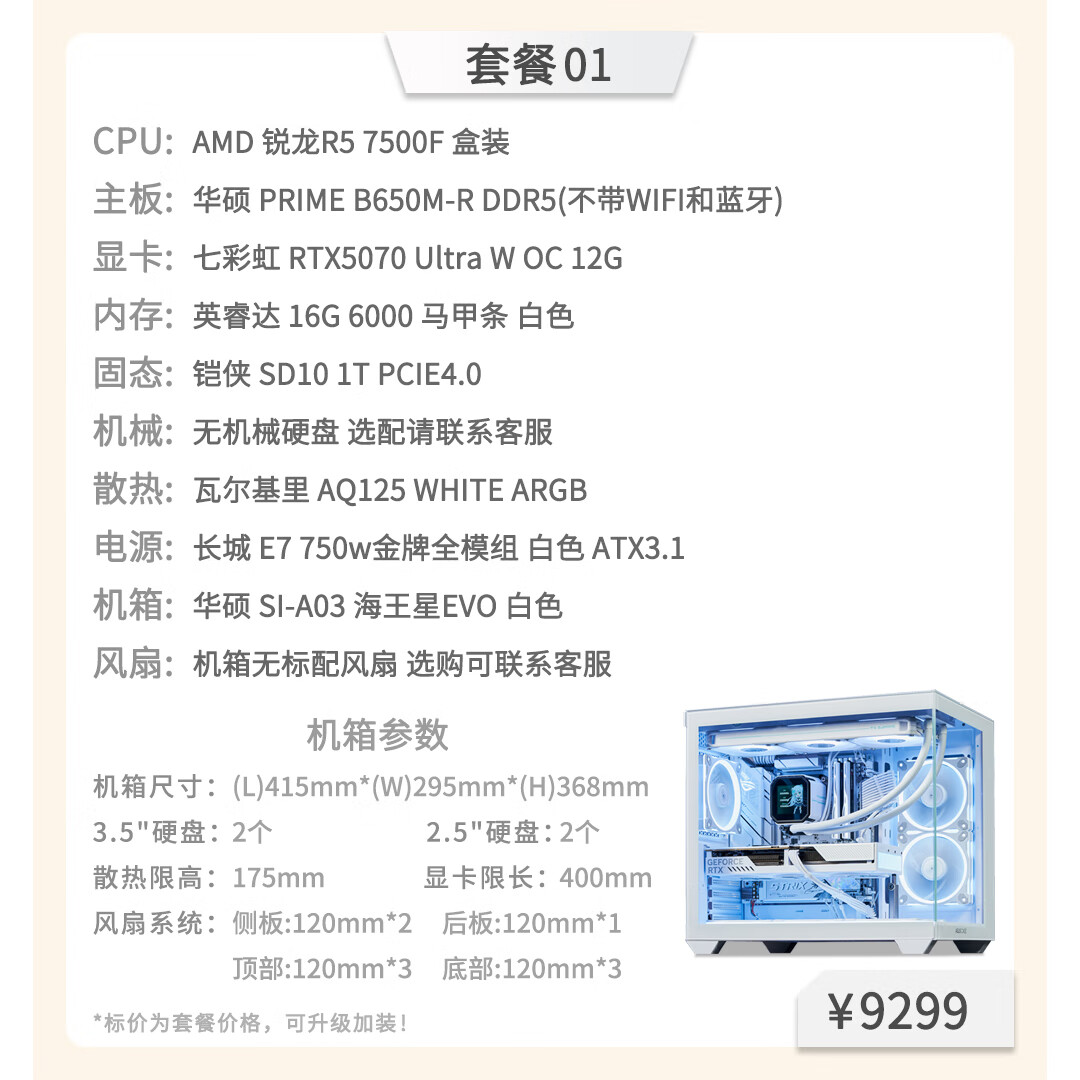 Colorful Hardware Tea Talk Colorful 5070 Graphics Card AMD7500F 9600X 9700X9800X3D Game Live Design and Assembly Computer Host Desktop Rendering Machine Package Nine (9800X3D+5070 Ultra) Capacity 1TB