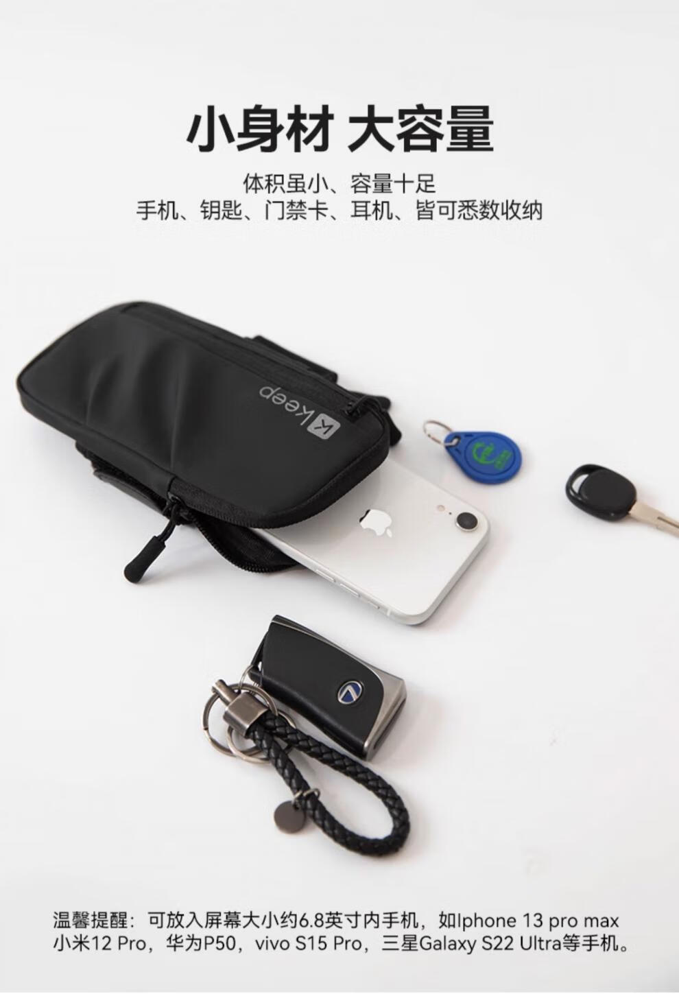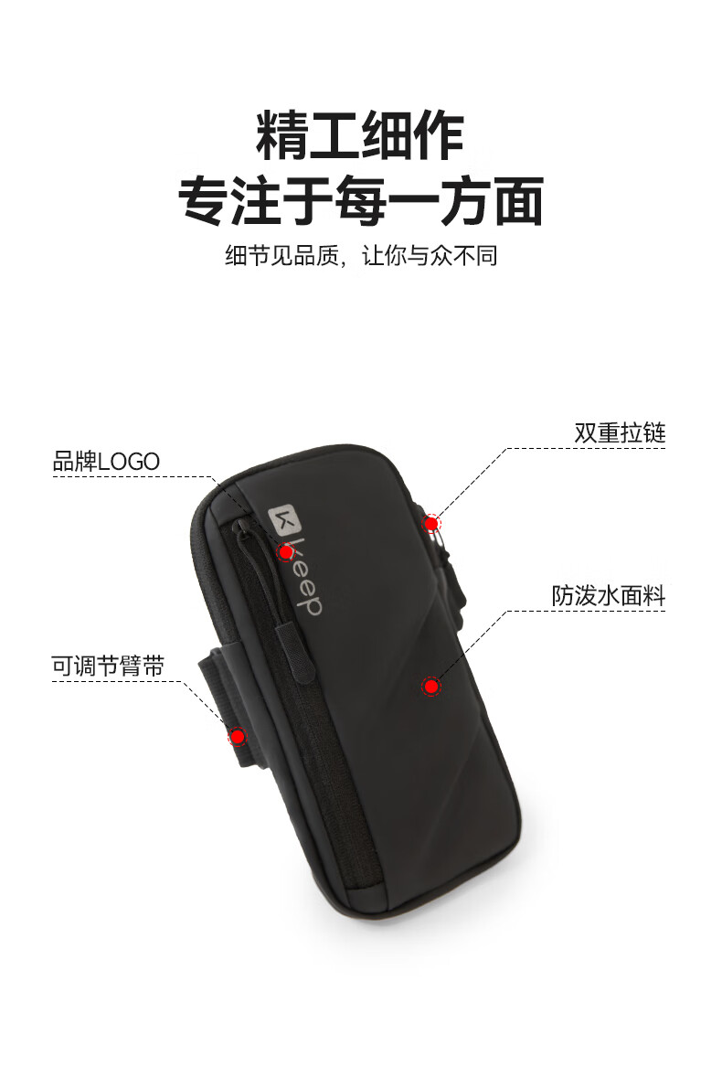 KEEP EGOKeep running mobile phone arm bag for men and women sports fitness equipment arm arm storage bag waterproof wrist bag arm bag running arm bag-classic black