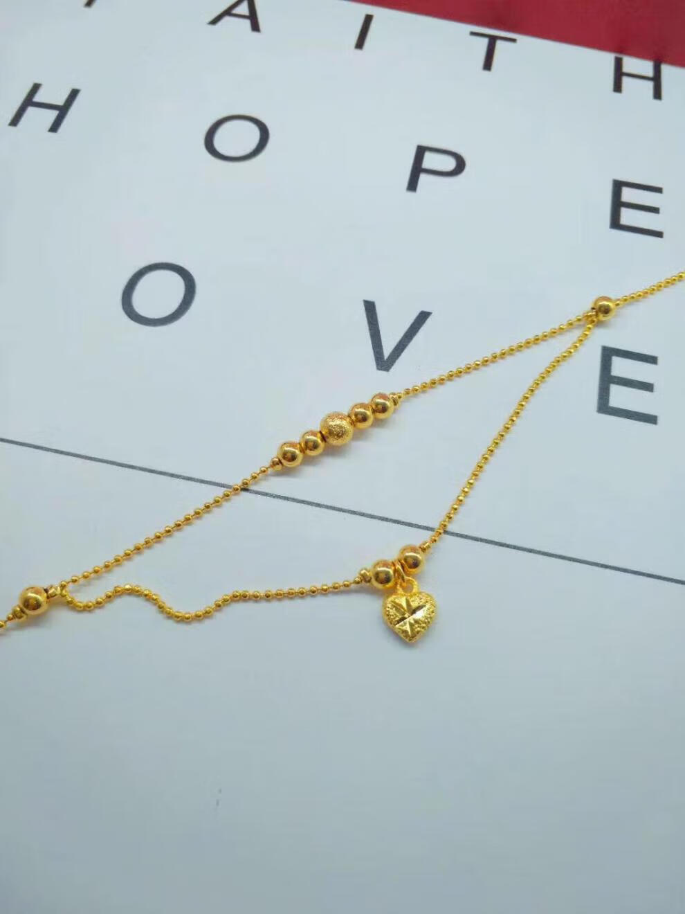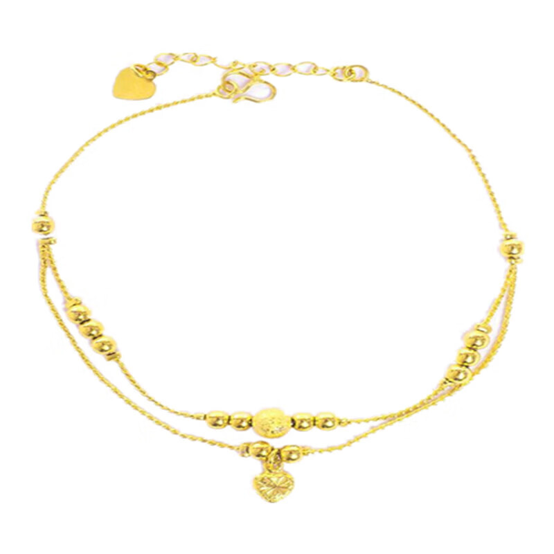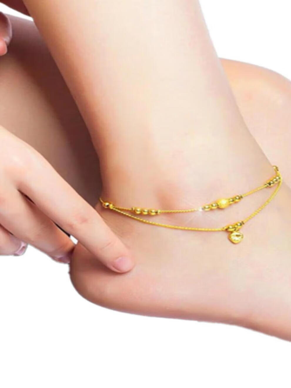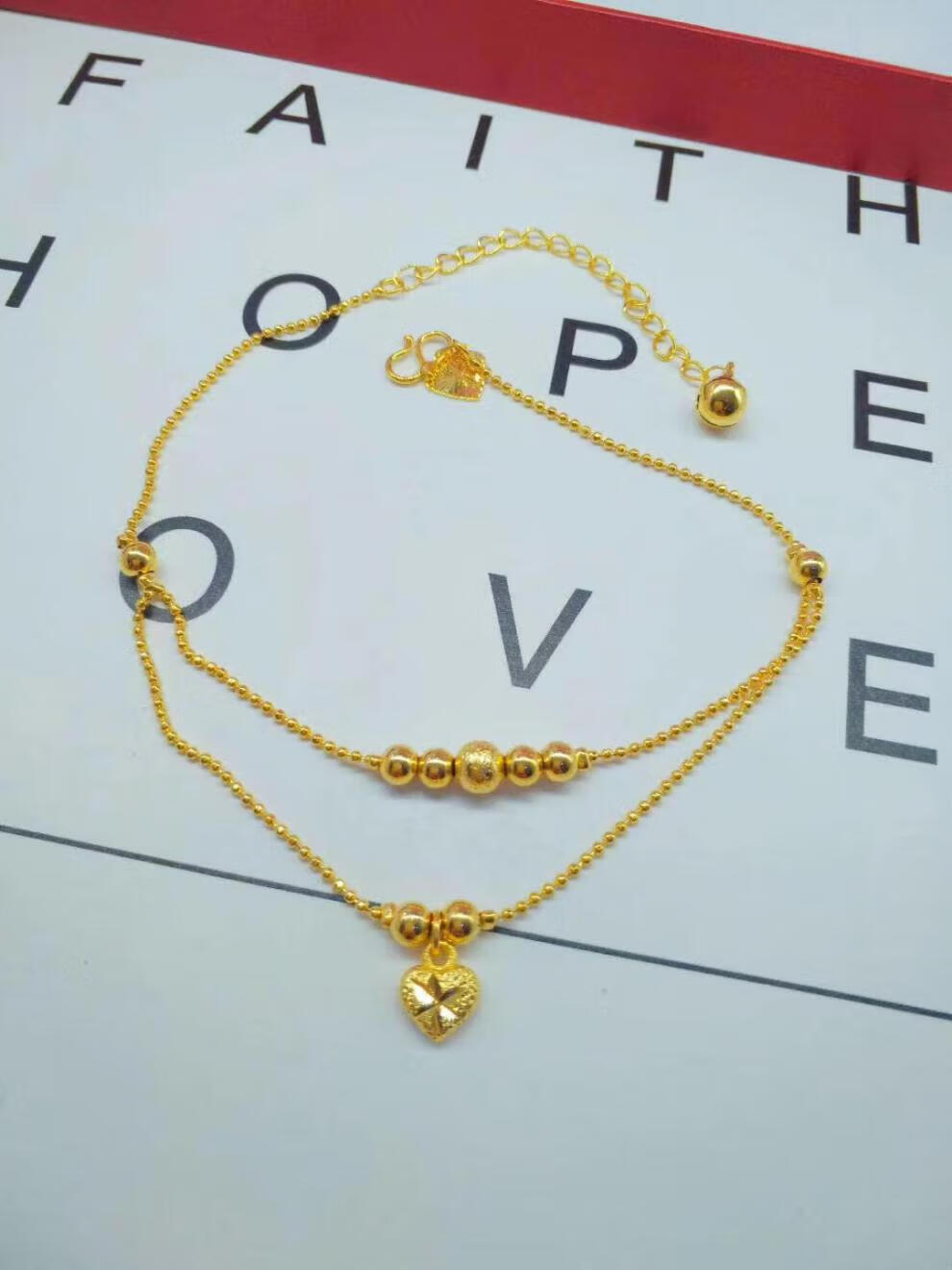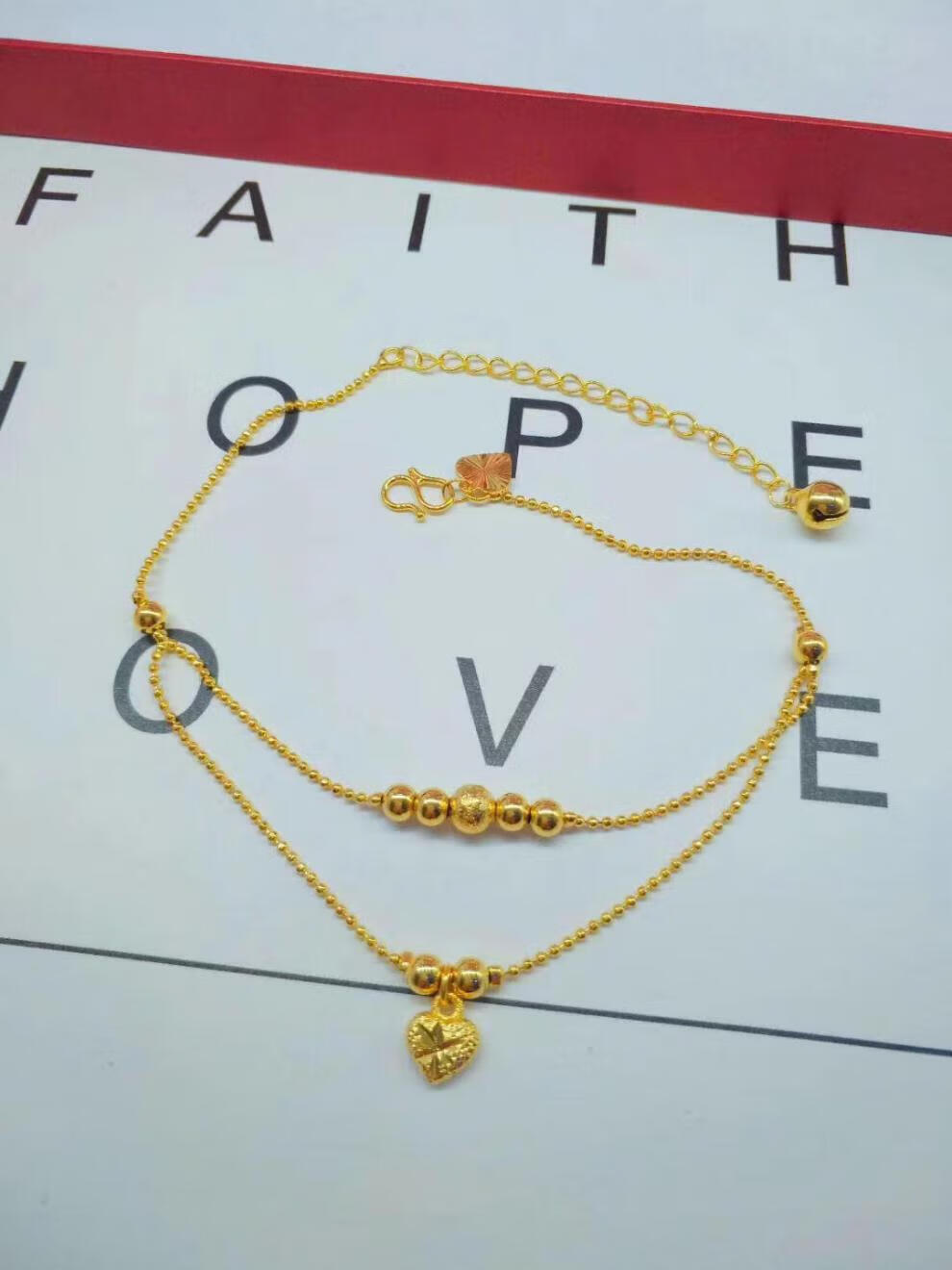 Ningfeng new 18K gold anklet for women double layer love 5D hard gold anklet anti-real 999 pure gold pigment does not fall off double layer