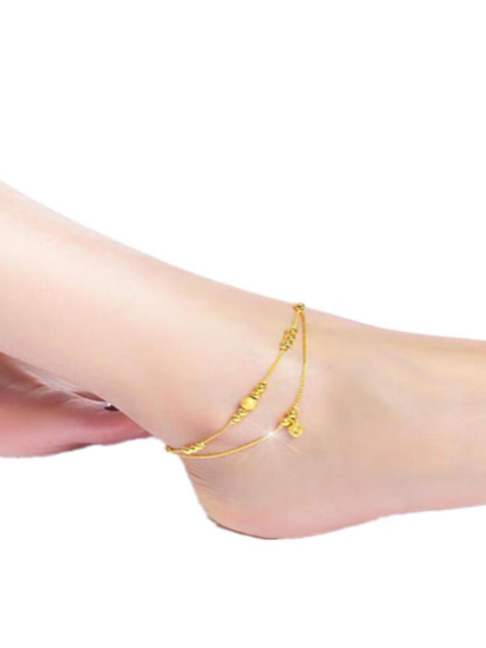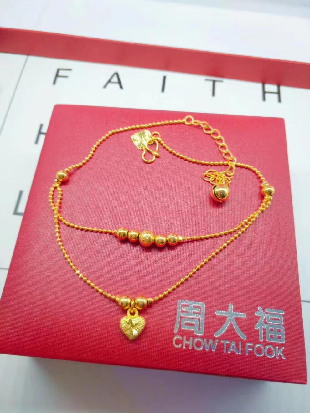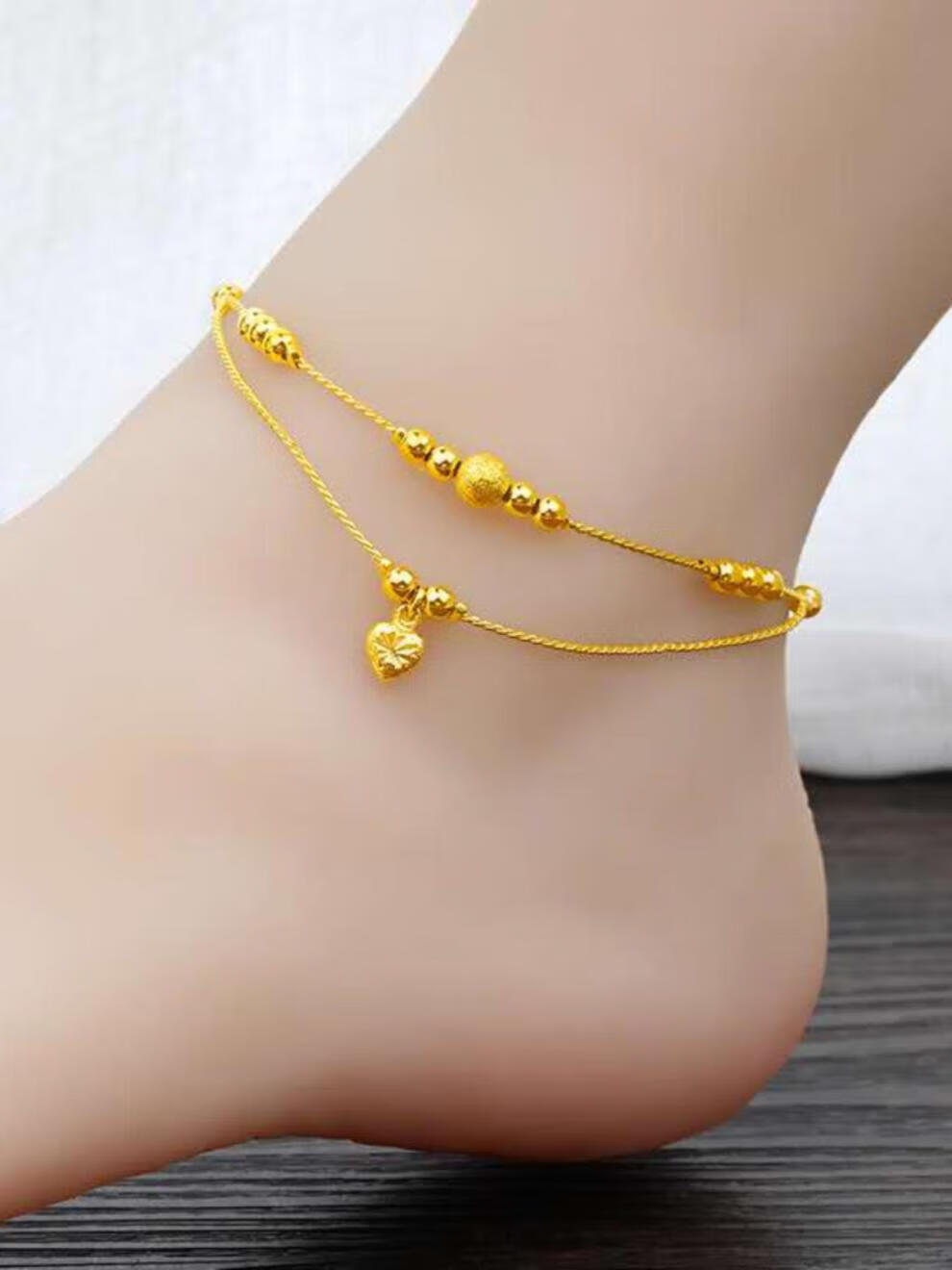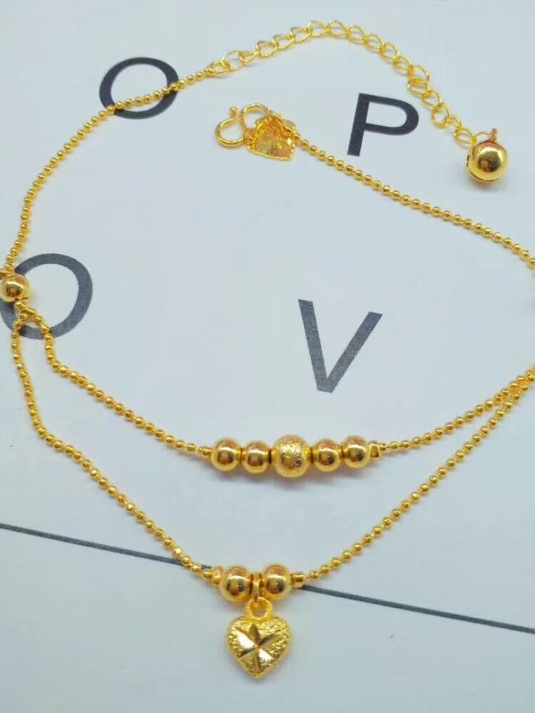 Ningfeng new 18K gold anklet for women double layer love 5D hard gold anklet anti-real 999 pure gold pigment does not fall off double layer