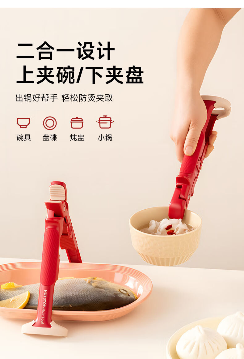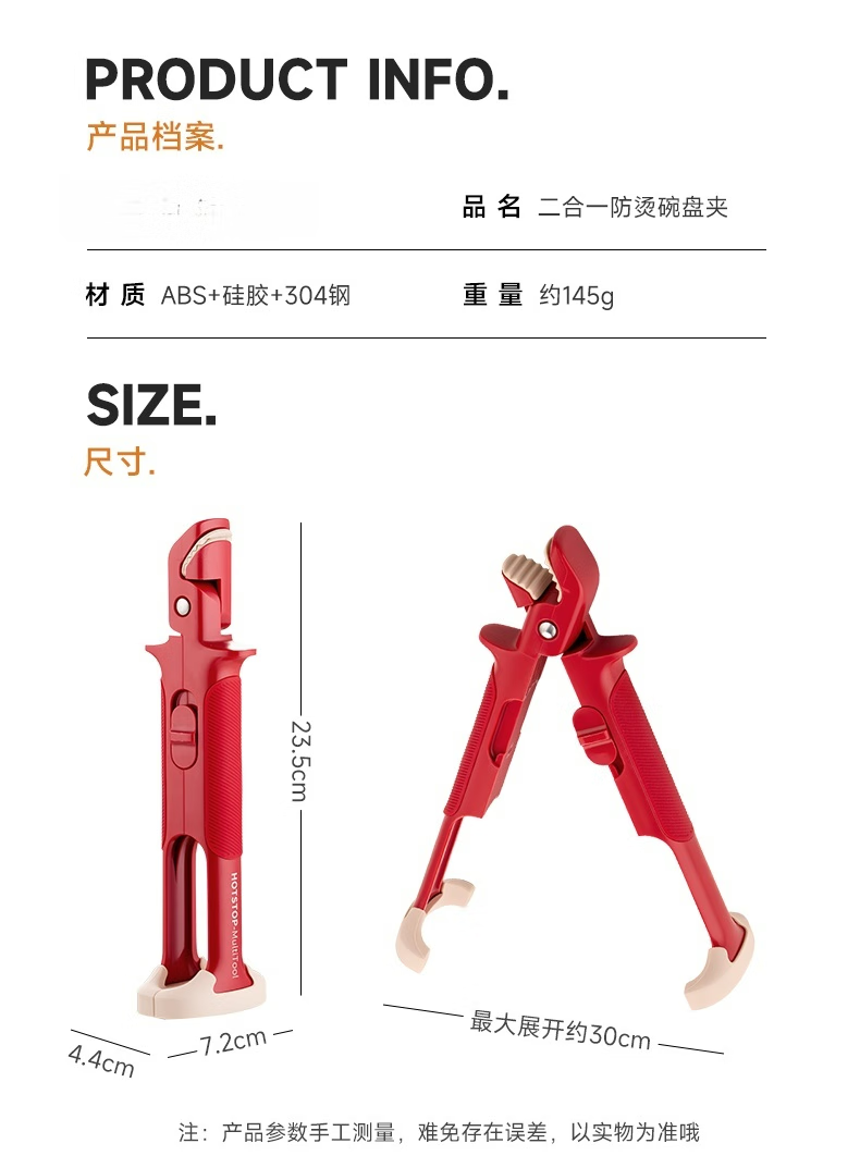 Steel Shield Germany imported high-quality two-in-one anti-scalding bowl and plate clamp kitchen silicone plate clip artifact anti-slip heat insulation clip two-in-one anti-scalding bowl and plate clamp-red/1 piece