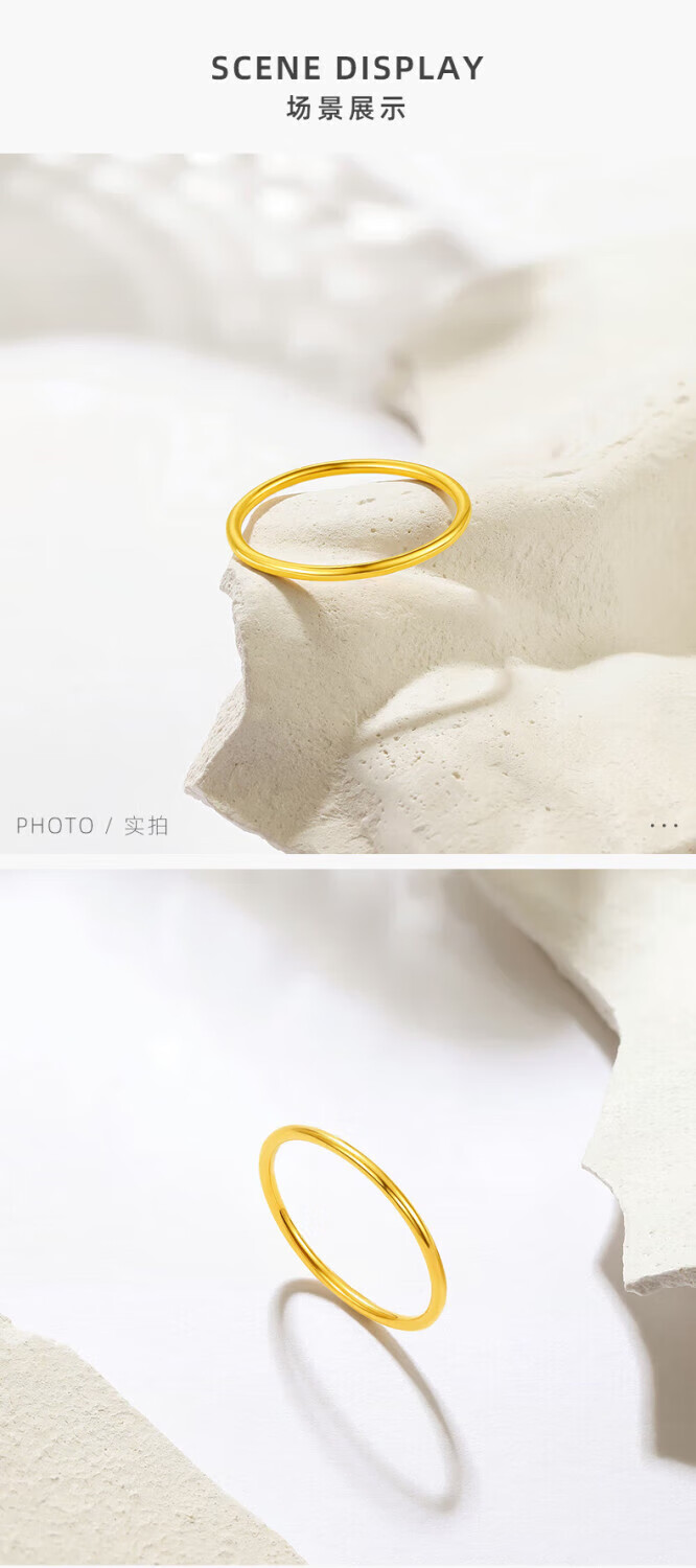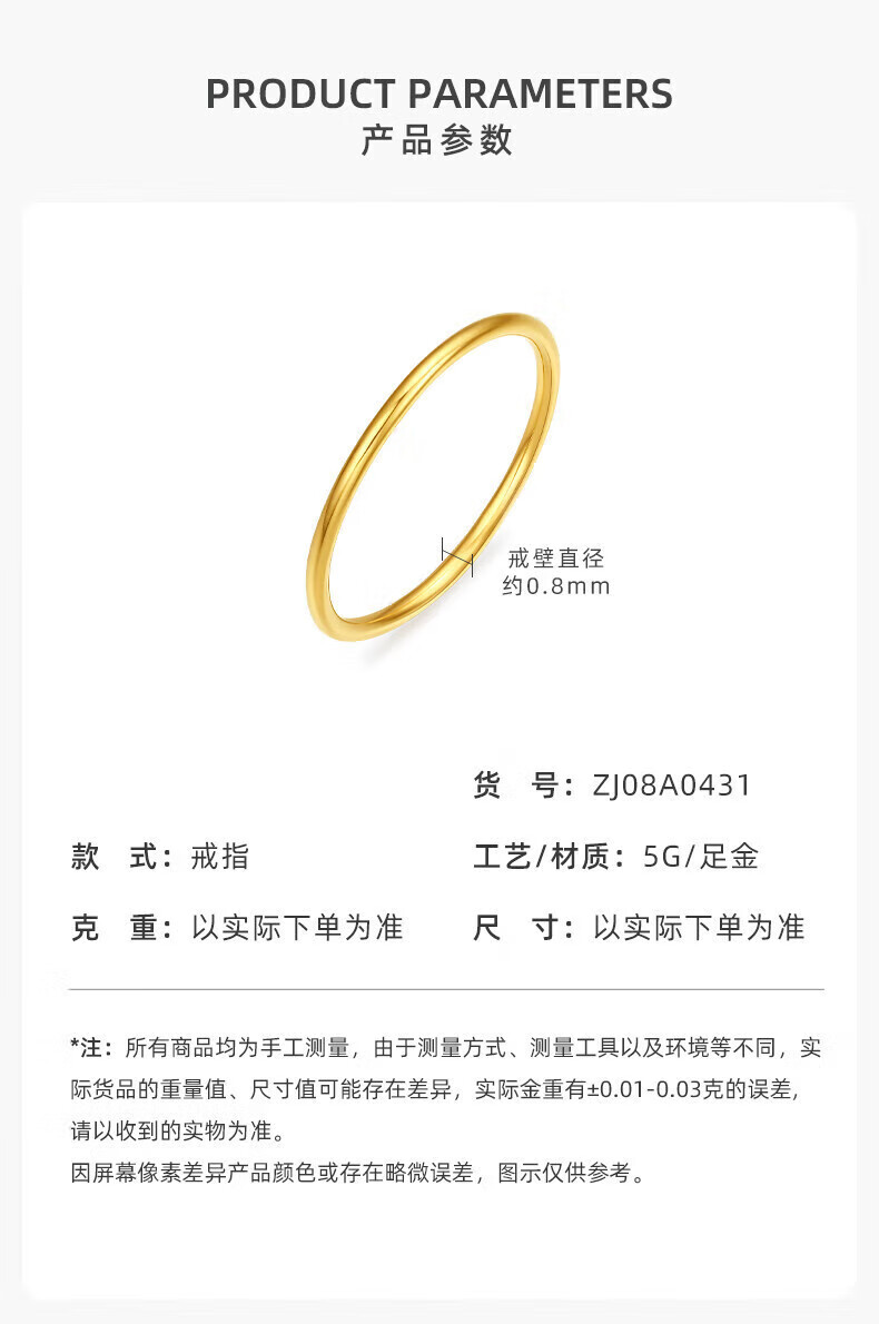 Ningfeng Sansheng III plain ring 9999 pure gold ring for male and female couples, aperture tail ring for girlfriend, glossy ring No. 7 1g