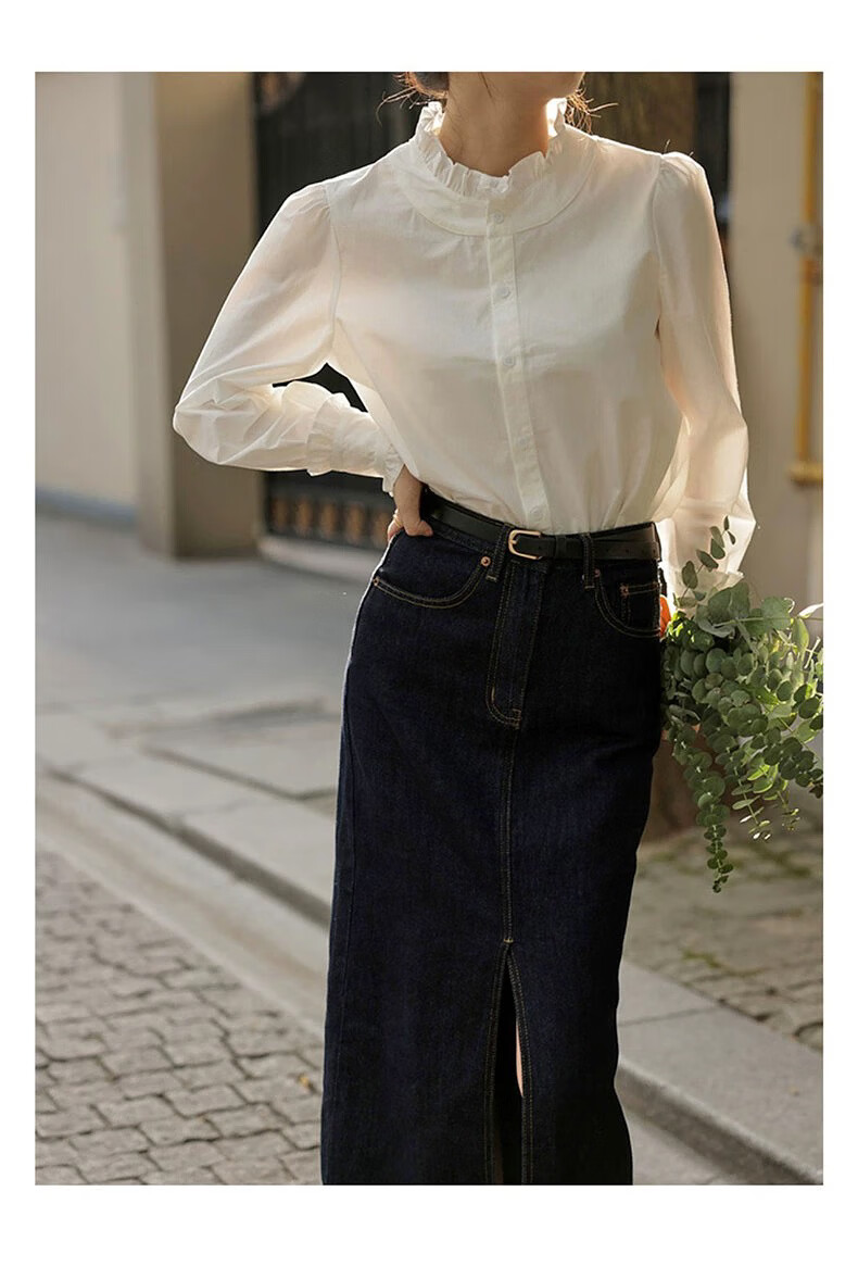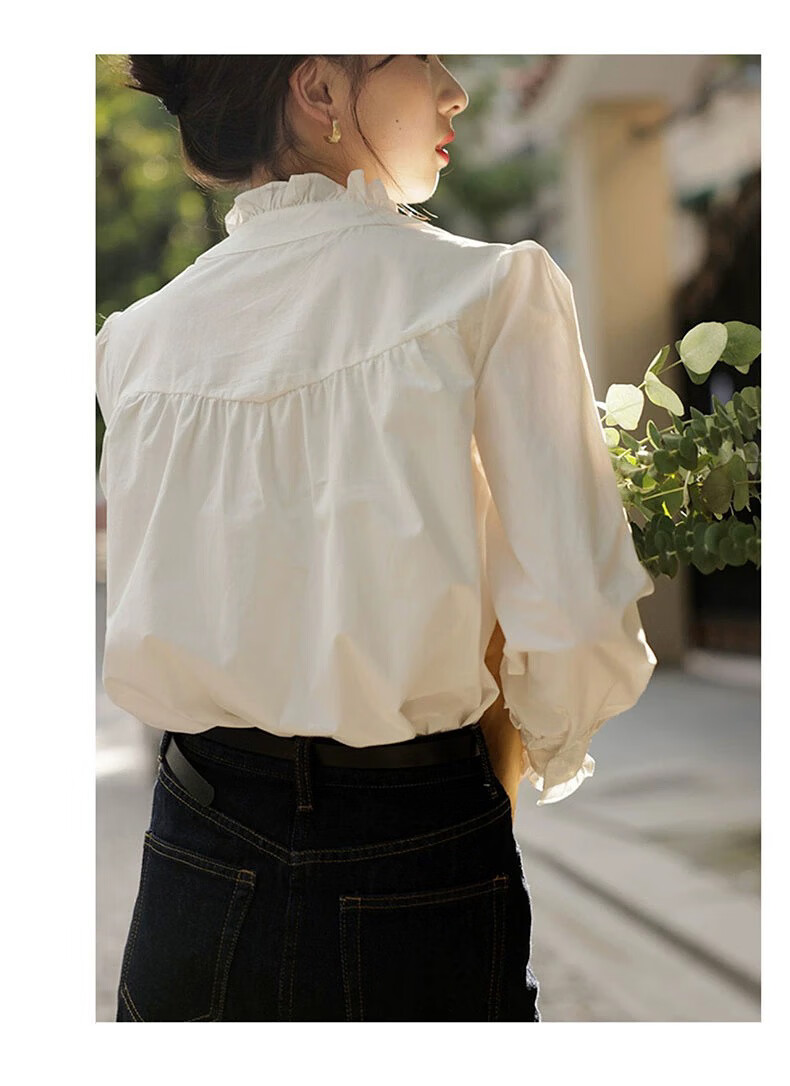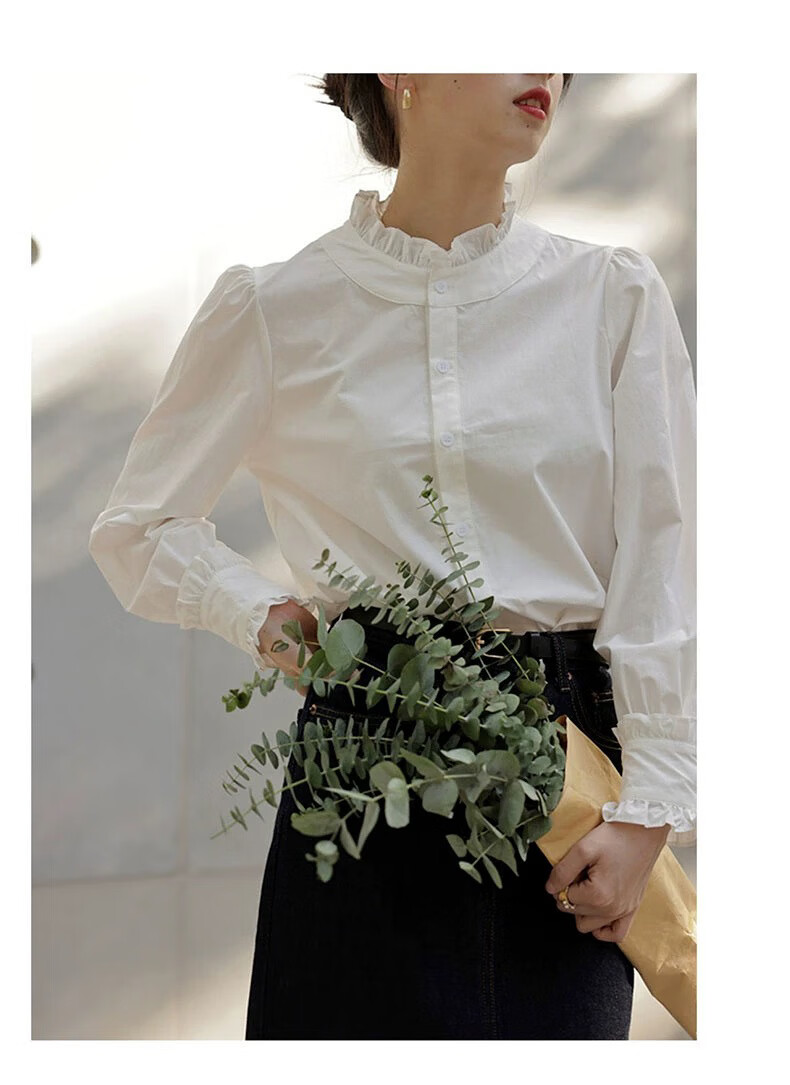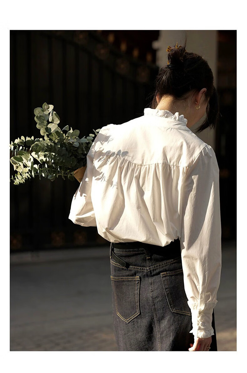 Hengyuanxiang velvet thickened white stand-up collar shirt for women 2025 autumn and winter new style French chic inner base shirt top white-velvet L