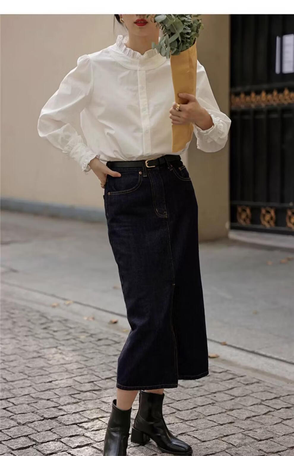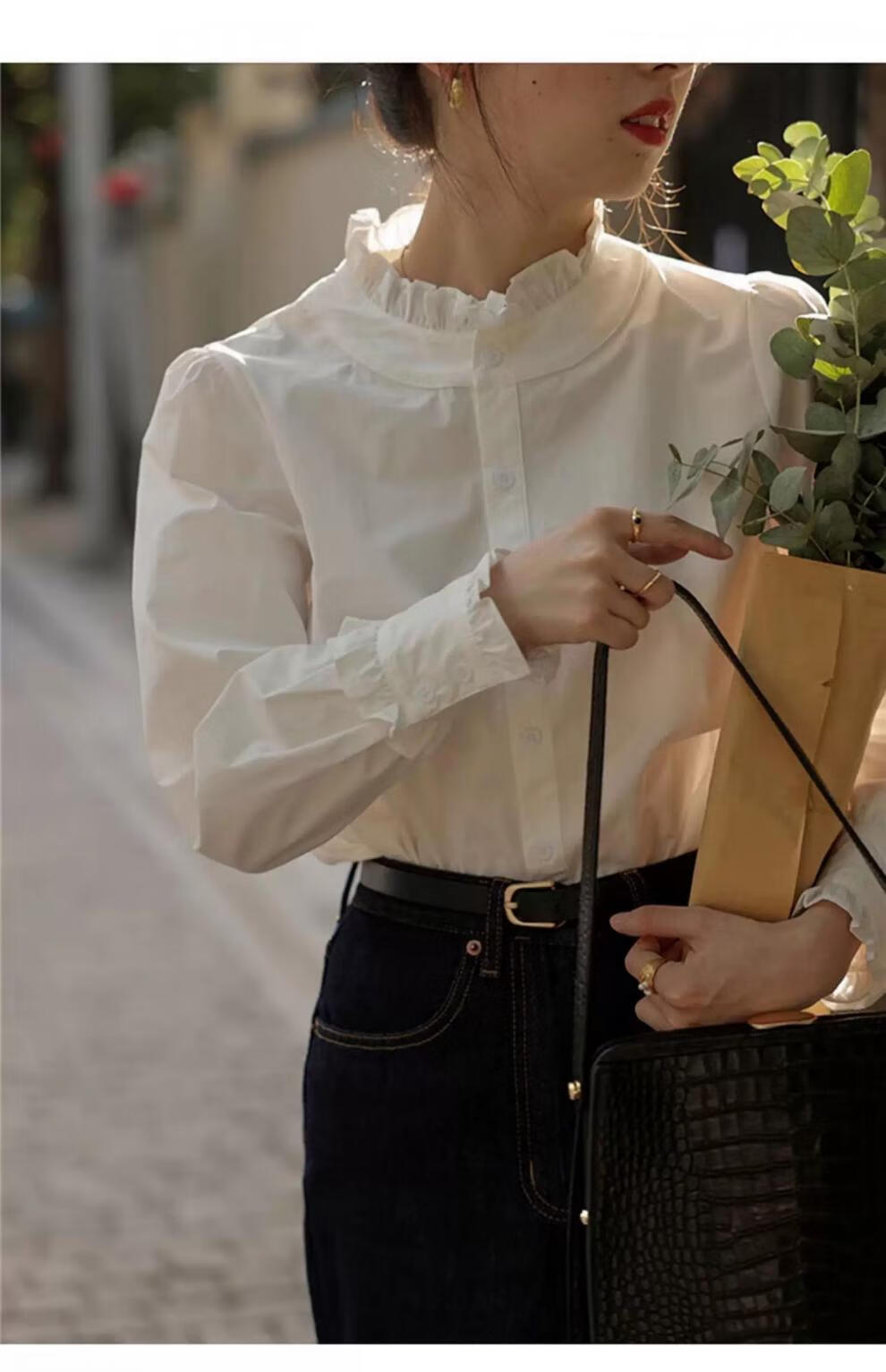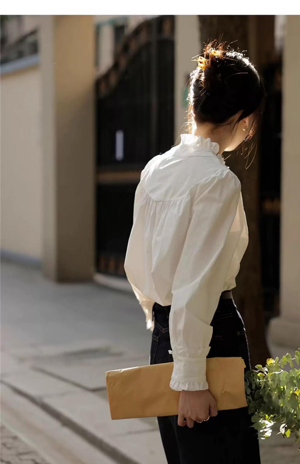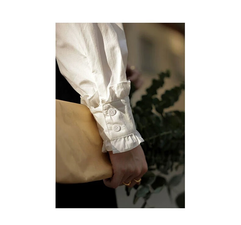 Hengyuanxiang velvet thickened white stand-up collar shirt for women 2025 autumn and winter new style French chic inner base shirt top white-velvet L