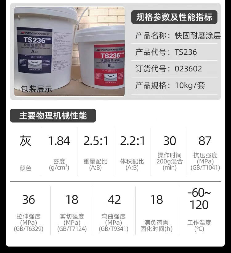 TONSAN TS226228236238246 wear-resistant coating ceramic particle glue pipe metal repair TS23610kg
