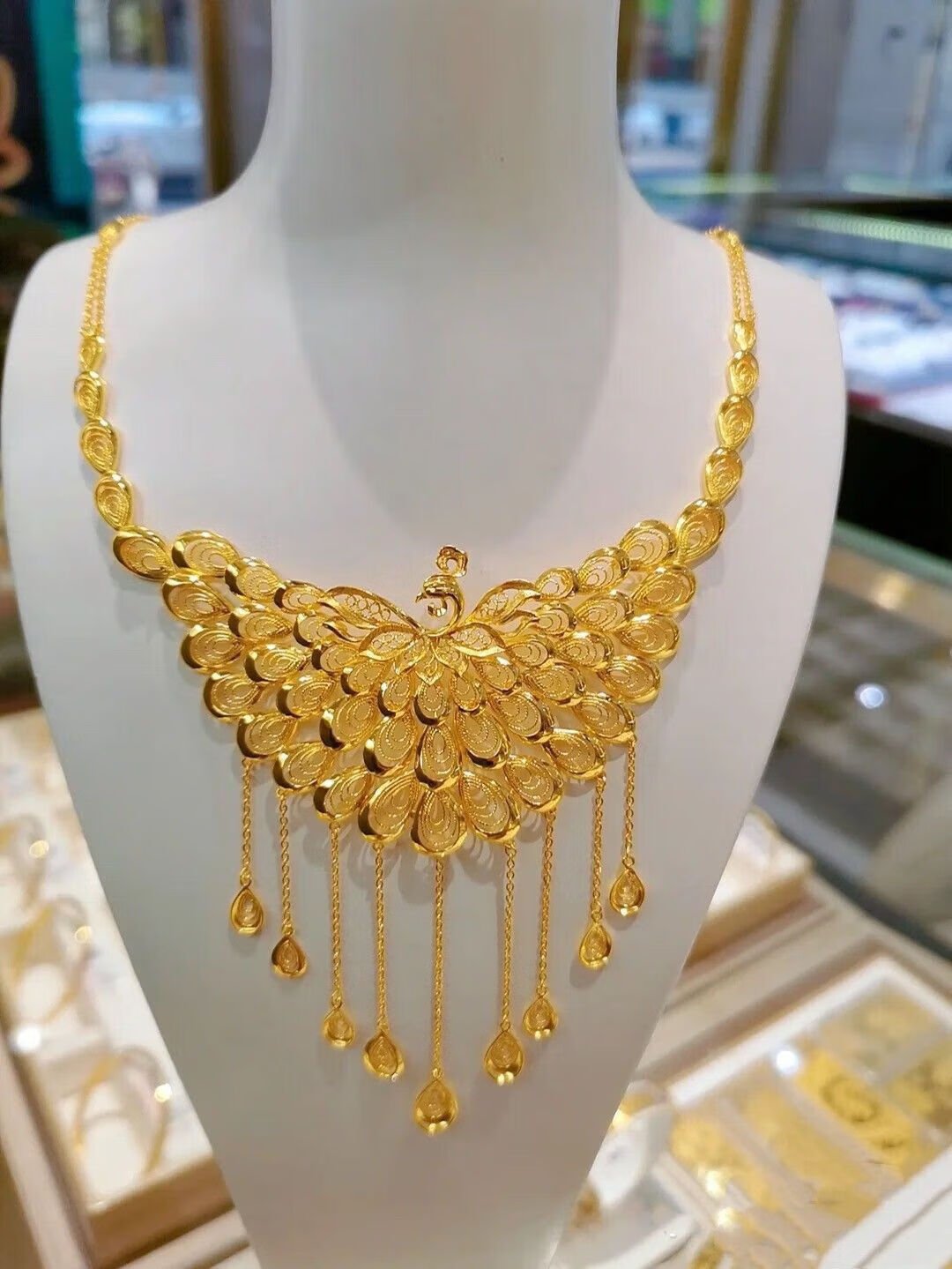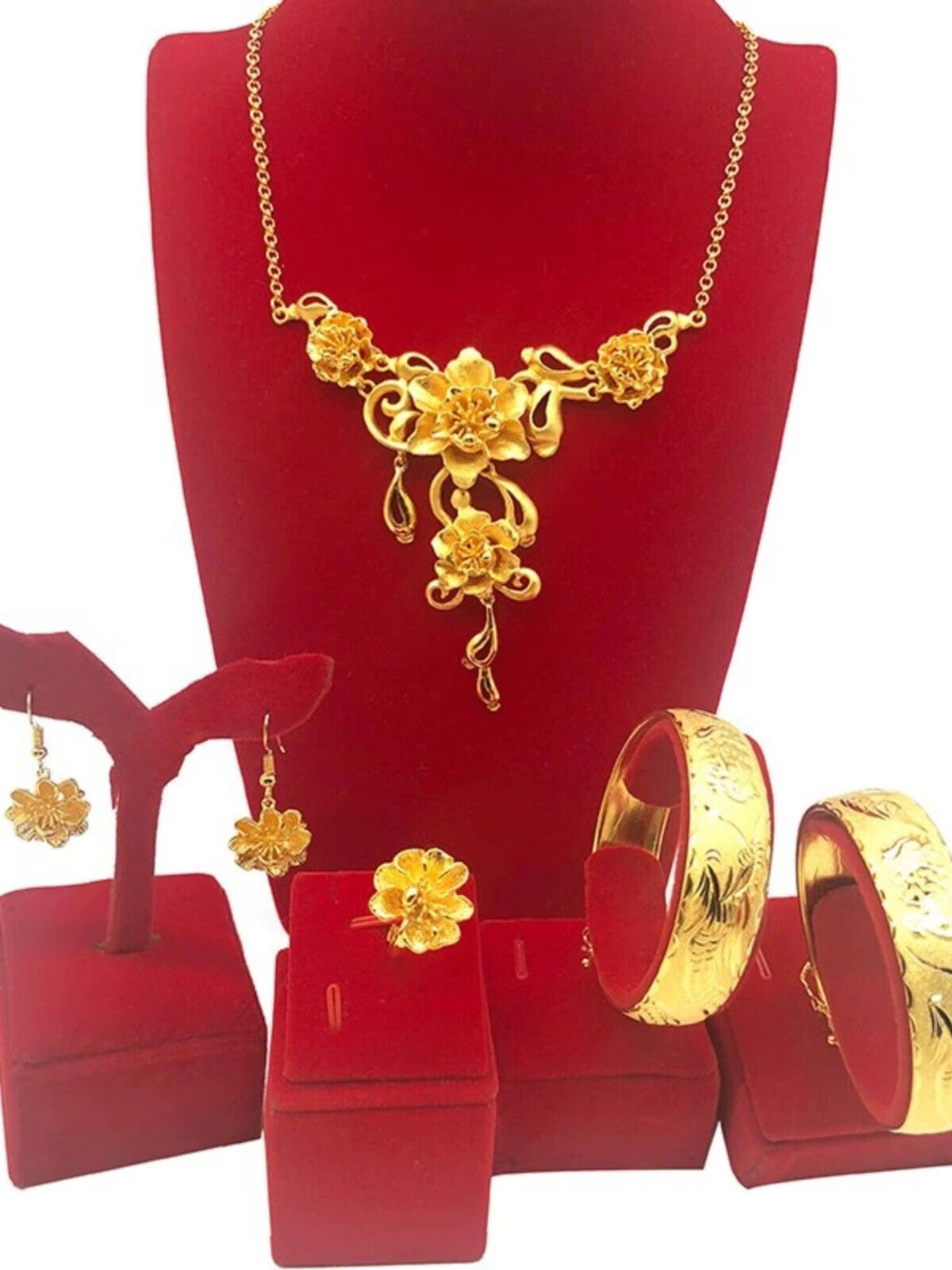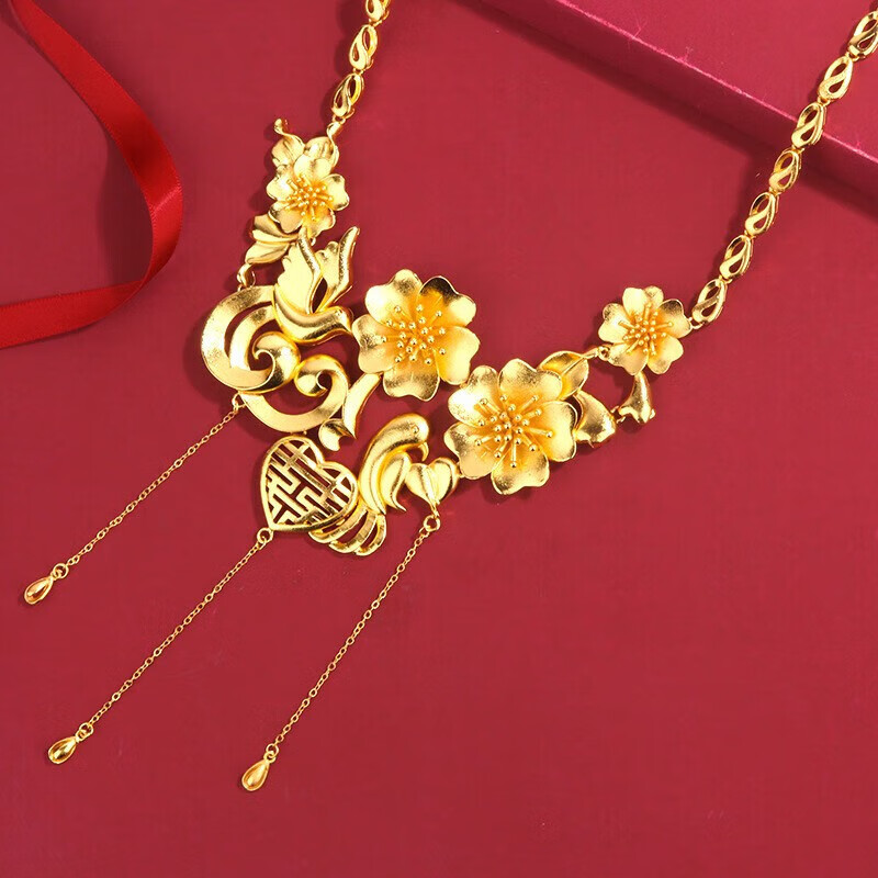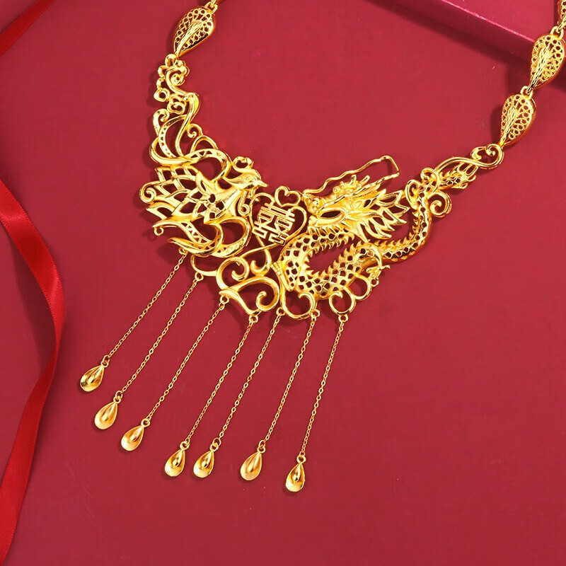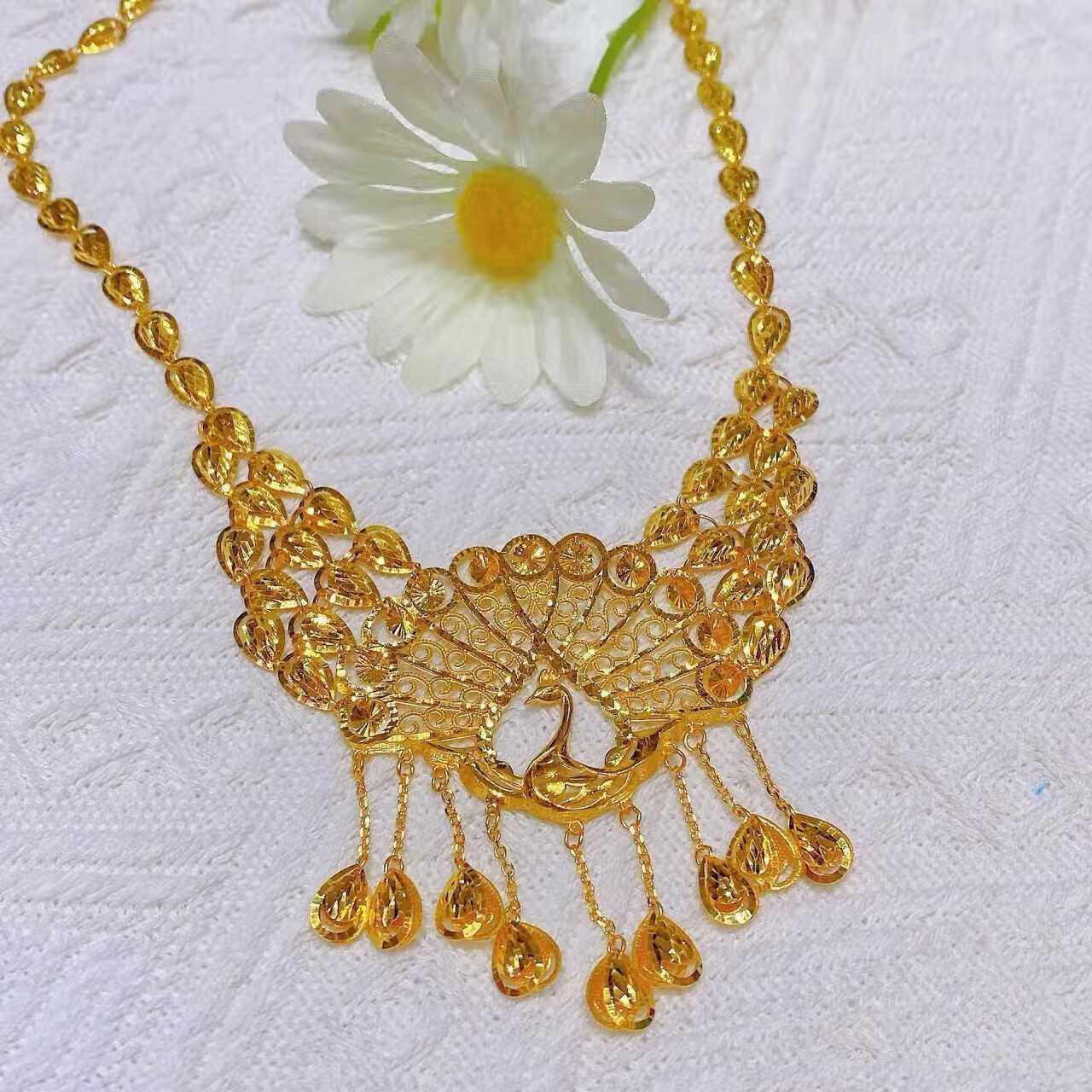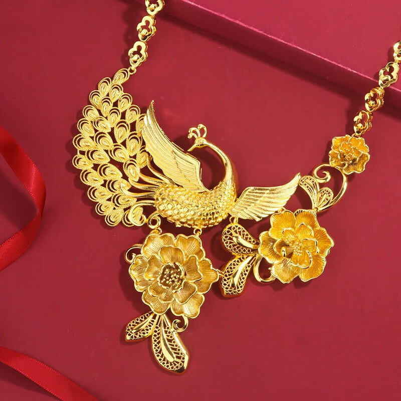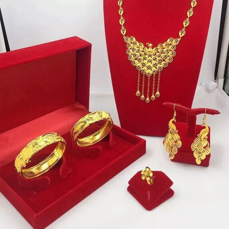 Fuwu old phoenix imitation fake three gold jewelry fake sand gold hardware set pig brand dragon and phoenix bracelet Chinese knot peacock necklace