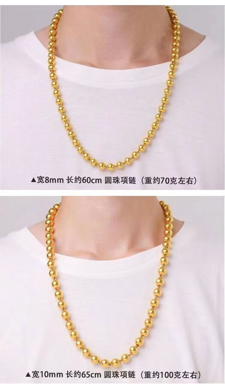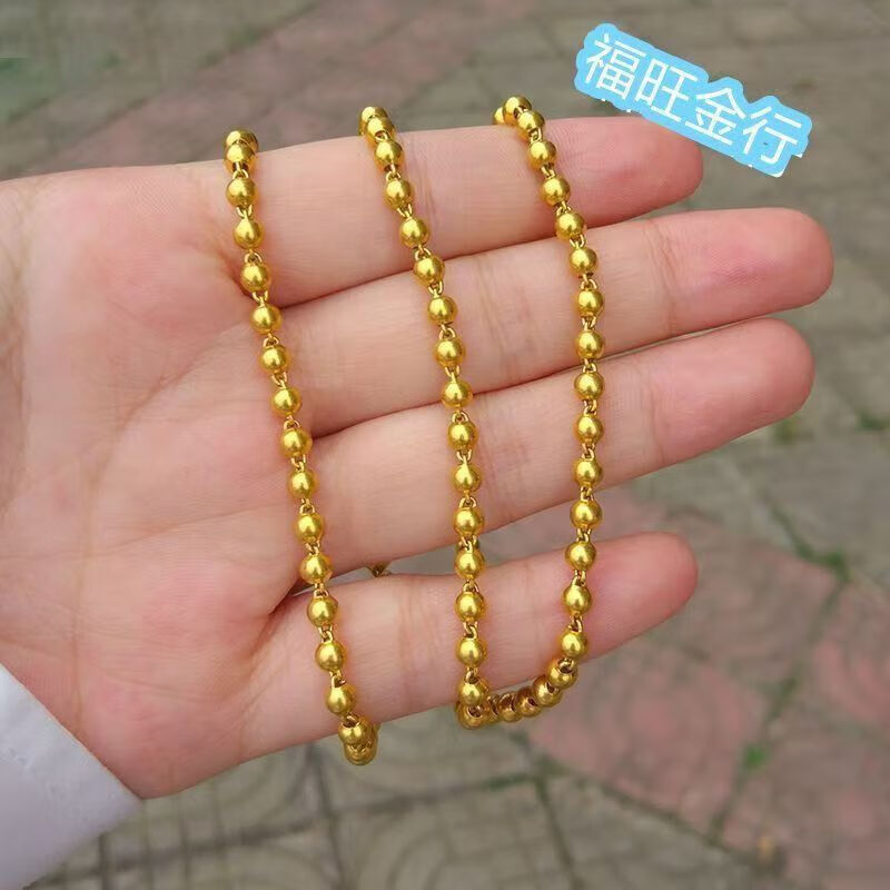 Ningfeng Old Phoenix Gold Store gold-coated silver round bead solid necklace for men and women gold-coated silver chain to give girlfriend Chinese Valentine's Day gift to give girlfriend 520 holiday gift 6mm