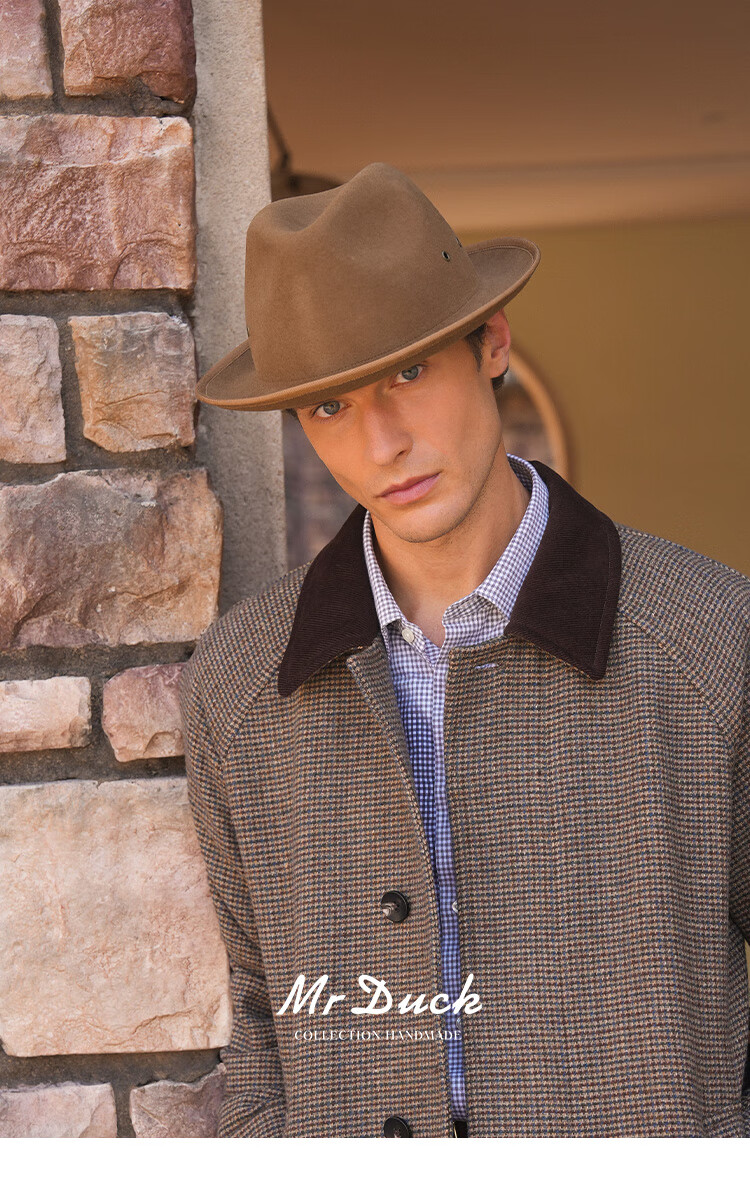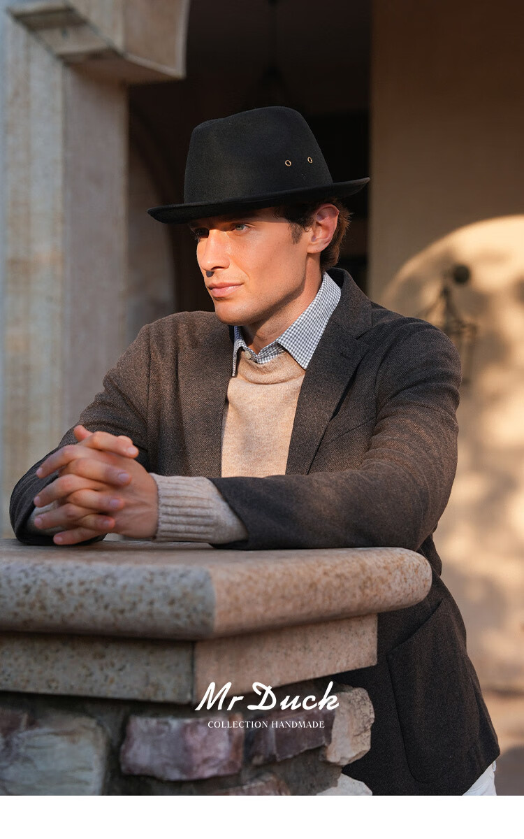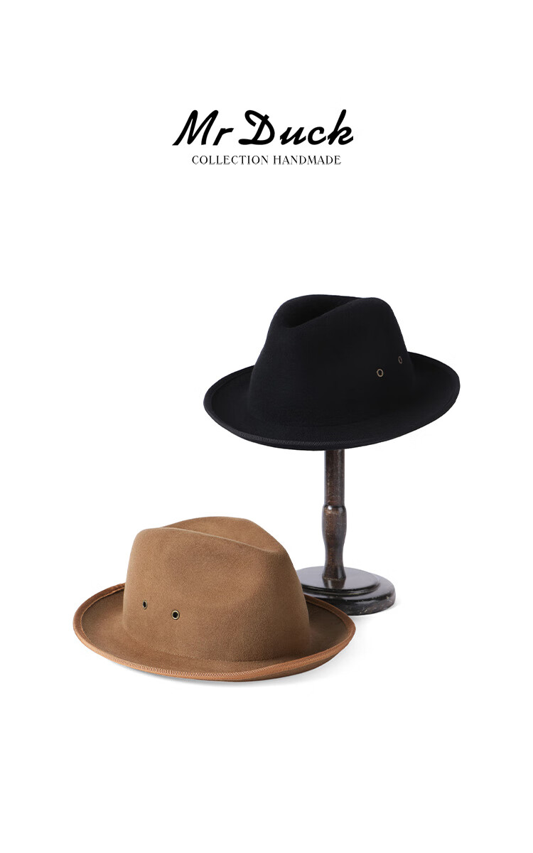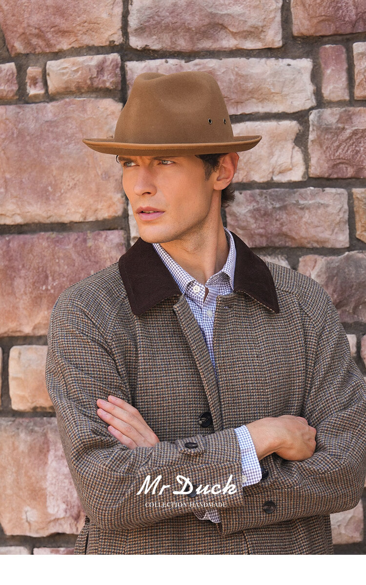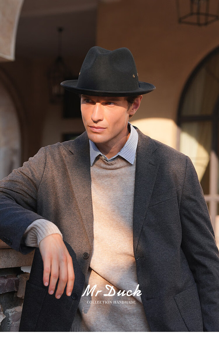 Mr DUCK Australian pure wool handmade top hat rolled edge foldable casual high-end jazz hat for men, warm and breathable in autumn and winter, royal black (top hat) M (suitable for 56-57cm head circumference)
