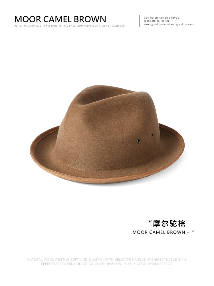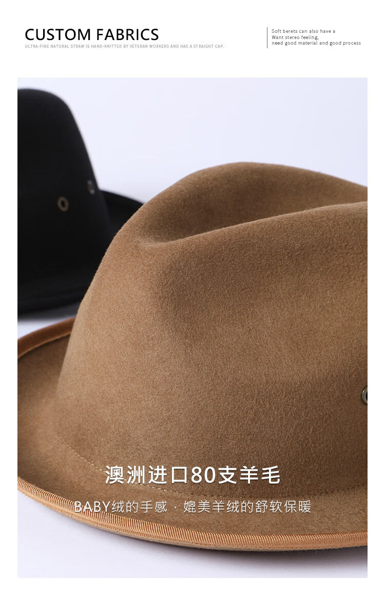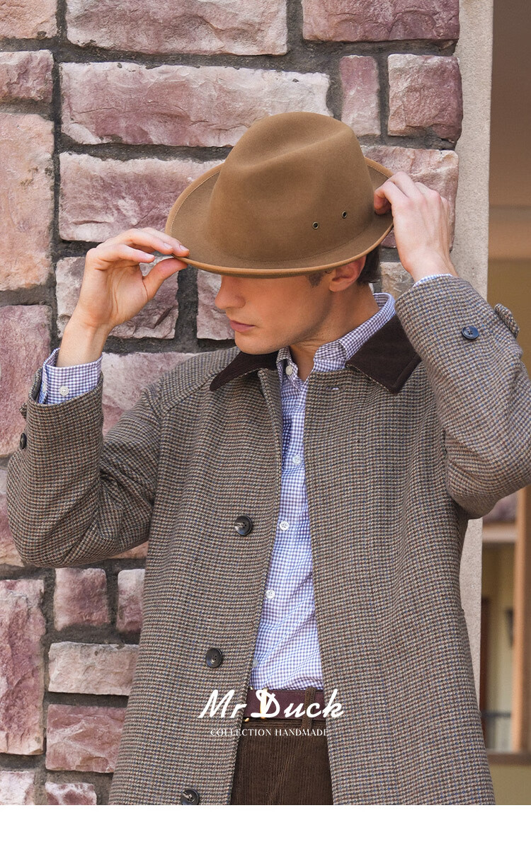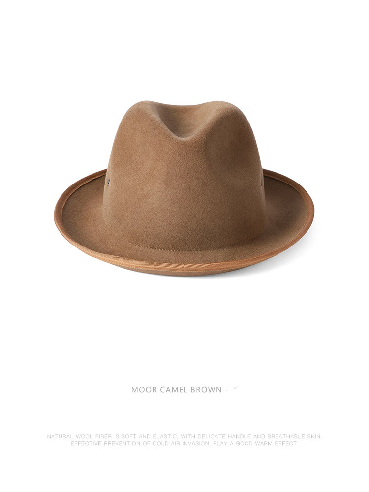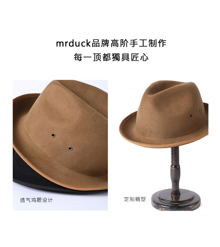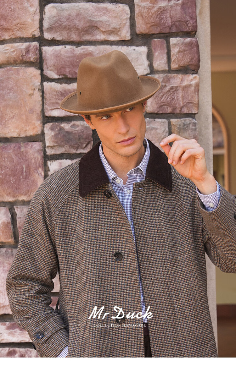 Mr DUCK Australian pure wool handmade top hat rolled edge foldable casual high-end jazz hat for men, warm and breathable in autumn and winter, royal black (top hat) M (suitable for 56-57cm head circumference)