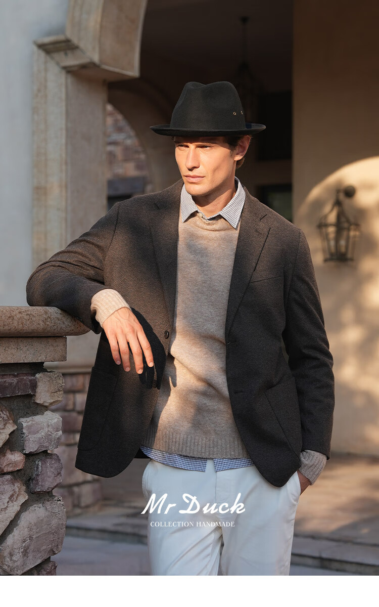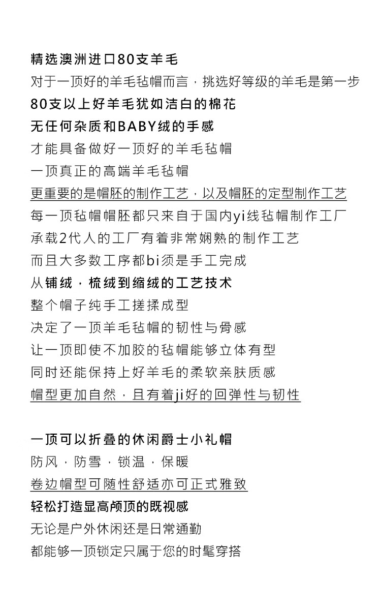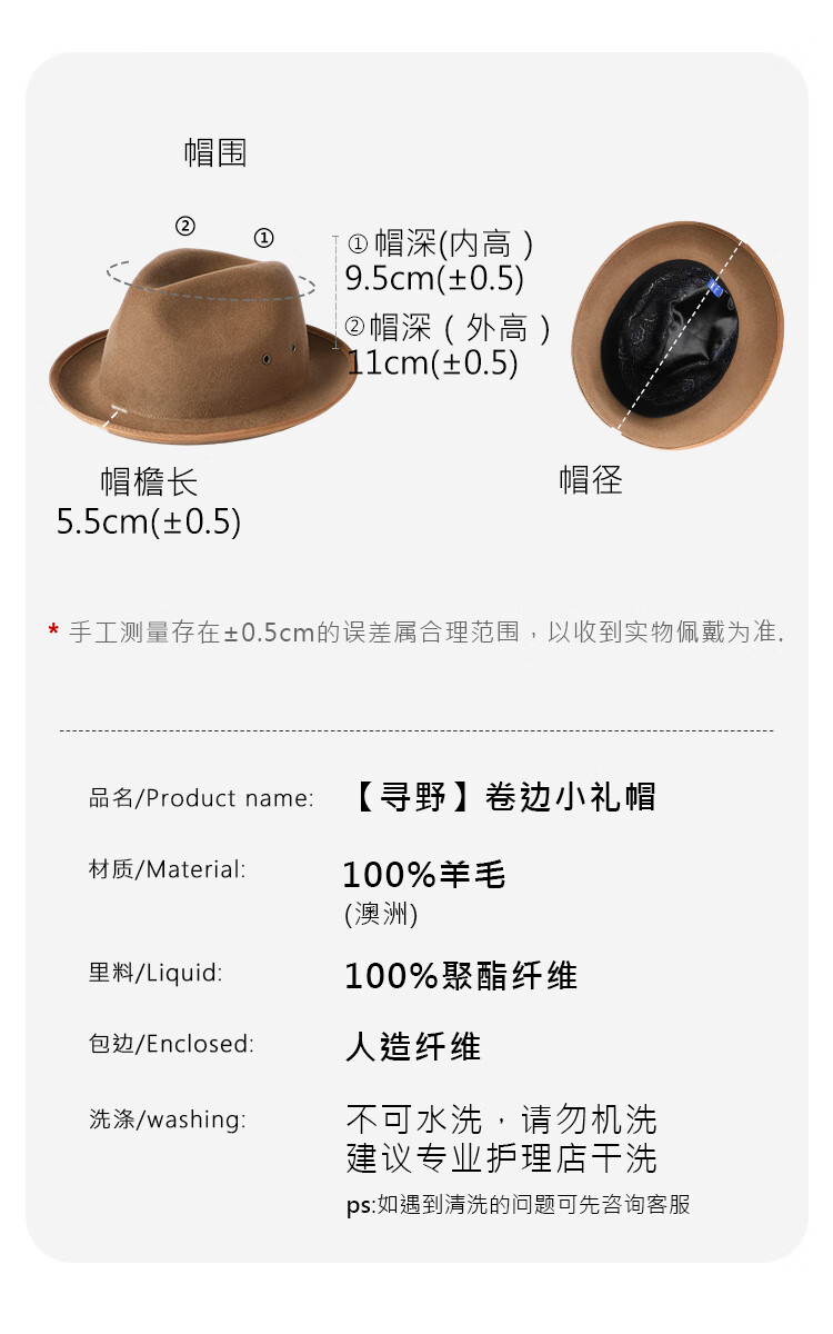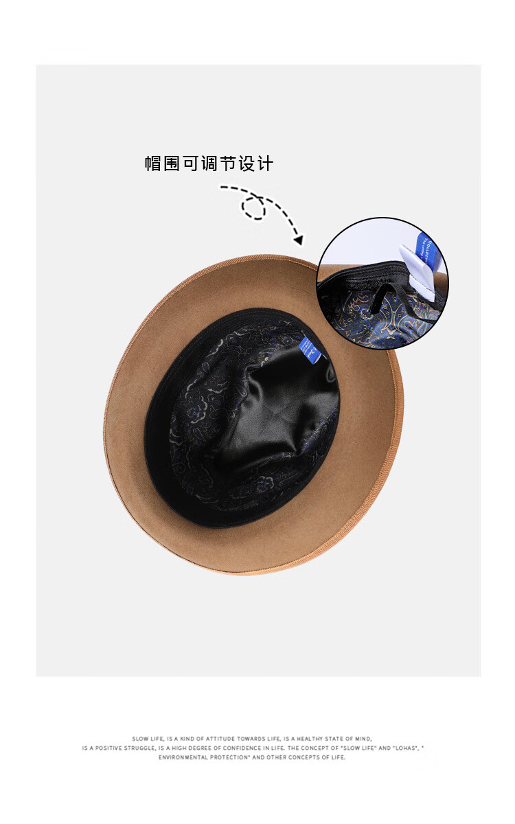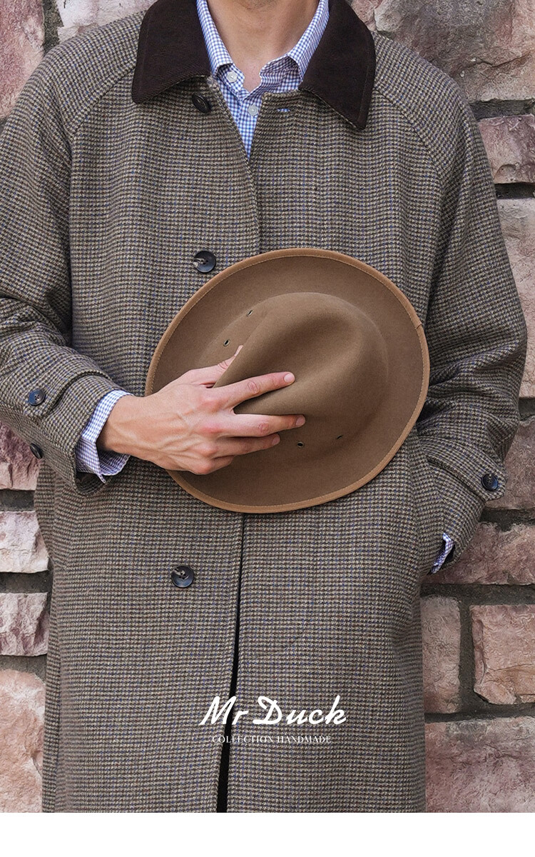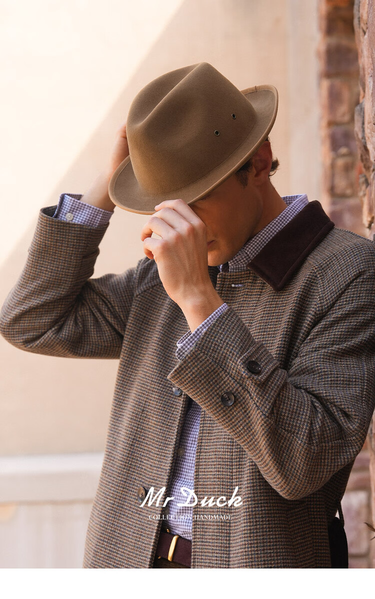 Mr DUCK Australian pure wool handmade top hat rolled edge foldable casual high-end jazz hat for men, warm and breathable in autumn and winter, royal black (top hat) M (suitable for 56-57cm head circumference)