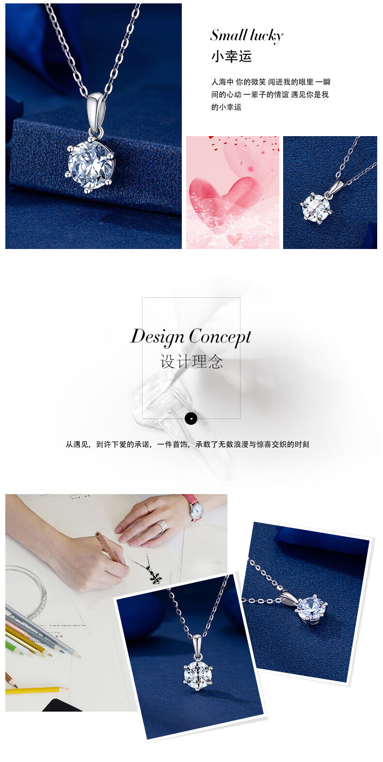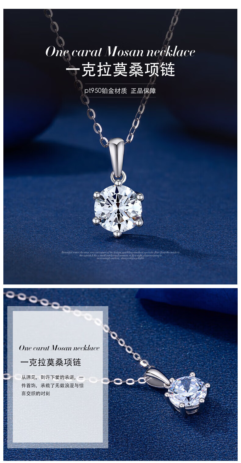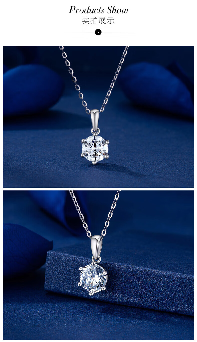 Ningfeng Light Luxury Platinum One Carat Moissanite Necklace Women's Gold Pendant Jewelry Birthday Gift for Girlfriend