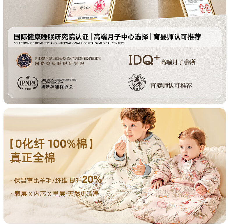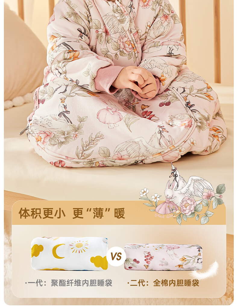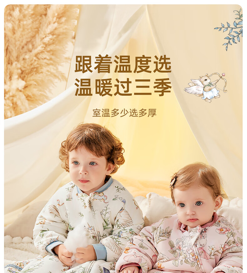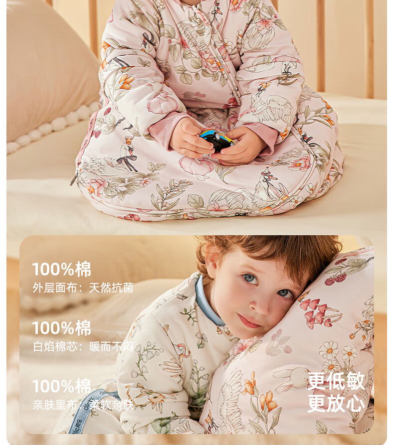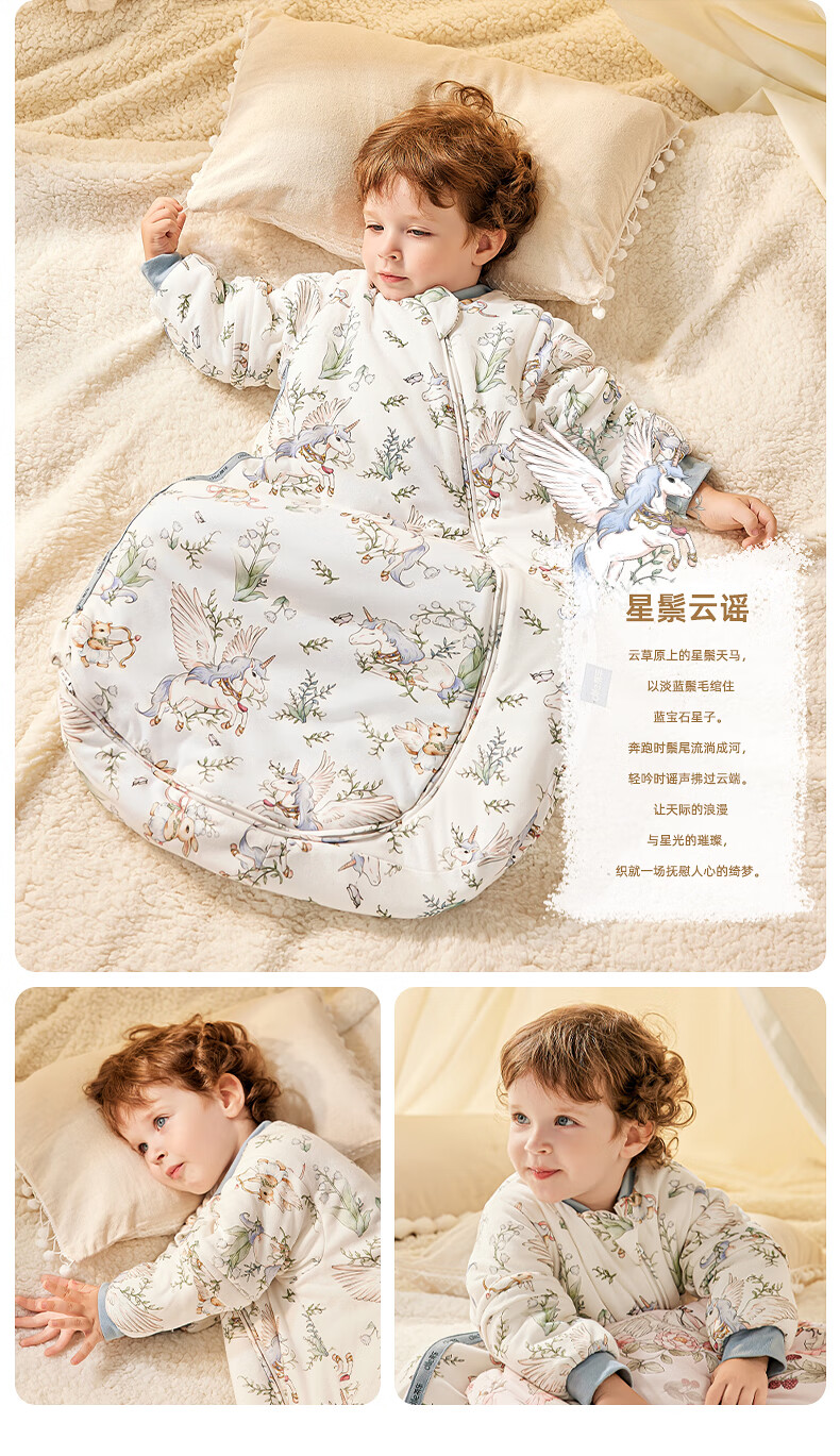 Tile baby sleeping bag spring, autumn and winter pure cotton thermostatic leg-wrapped all-in-one anti-kicking quilt for newborn children, universal for all seasons, pure cotton liner, autumn and winter thick quilting, room temperature 0-15, Huayu Qiyuan, M size, suitable for height 80-95cm, recommended for 1.5-3 years old