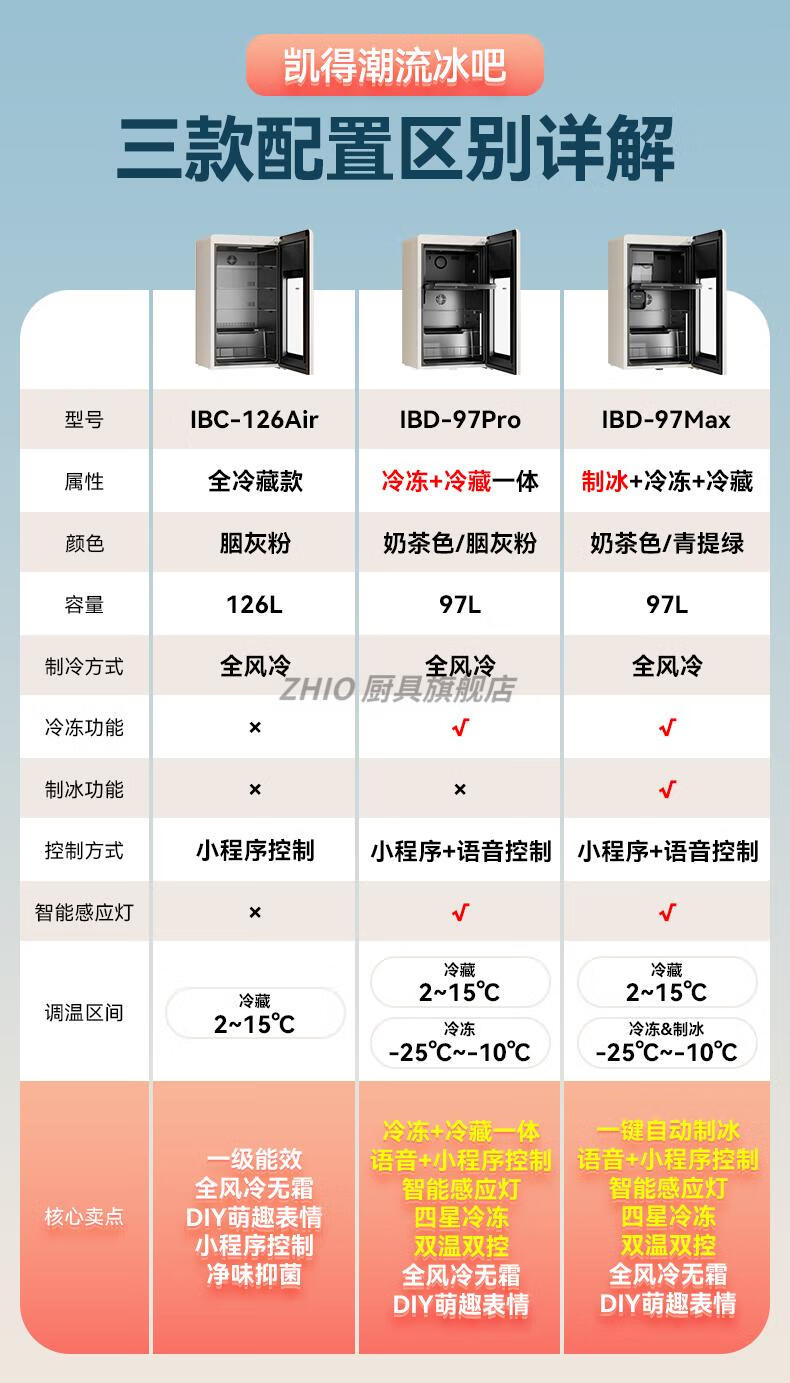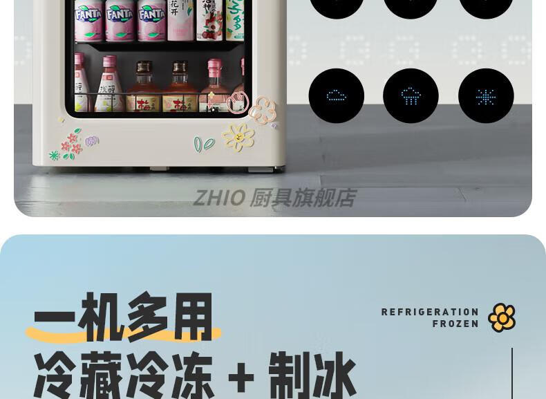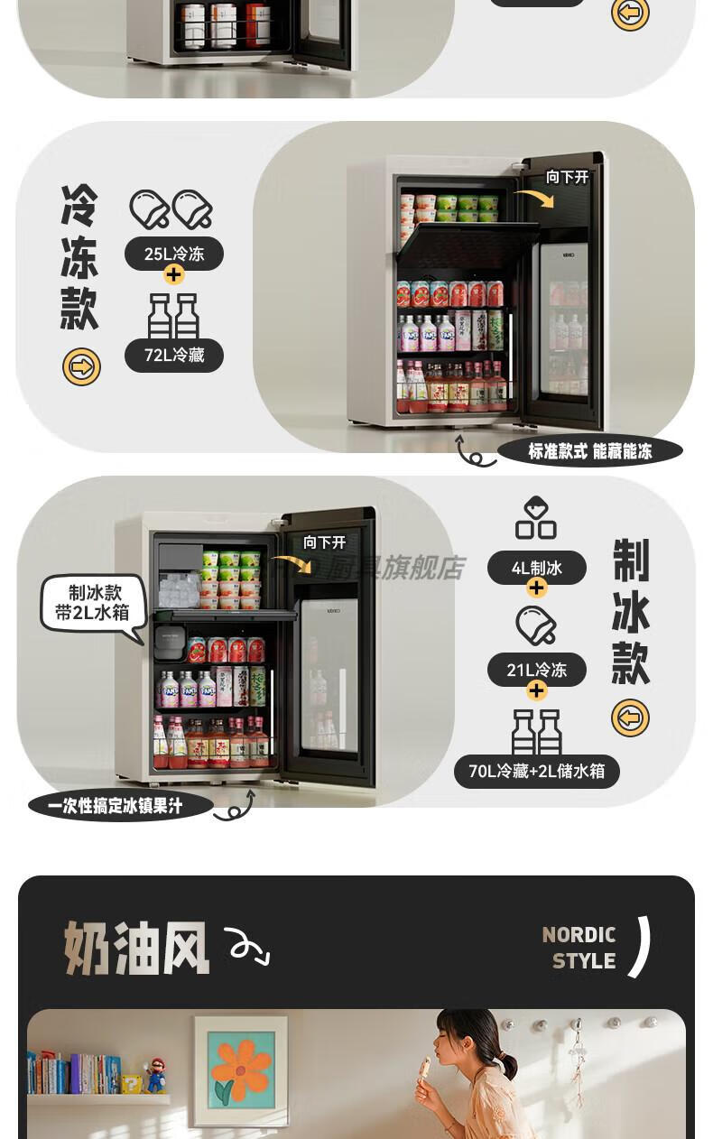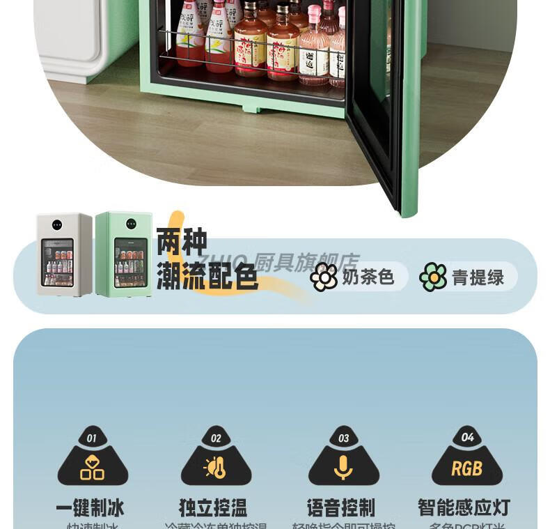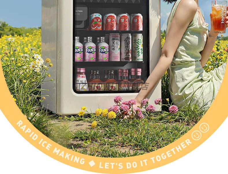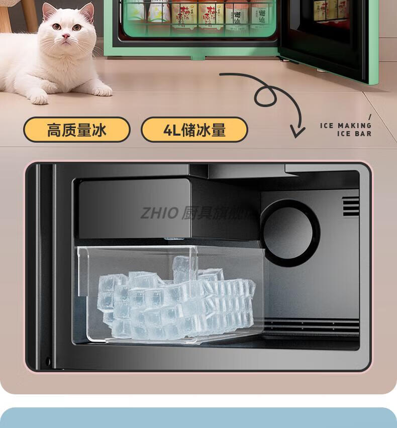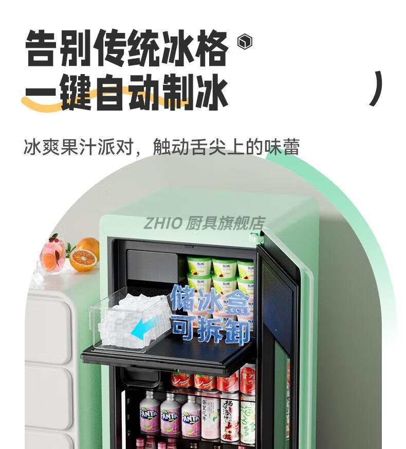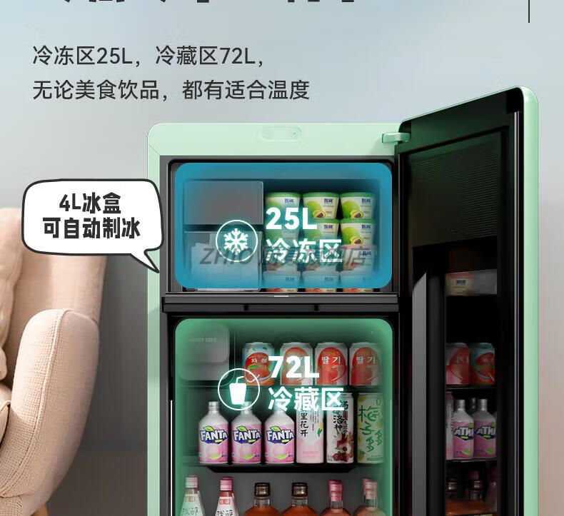 ZHIO German imported high-quality automatic ice-making ice bar air-cooled frost-free home living room office e-sports room retro small refrigerator 97/max milk tea color