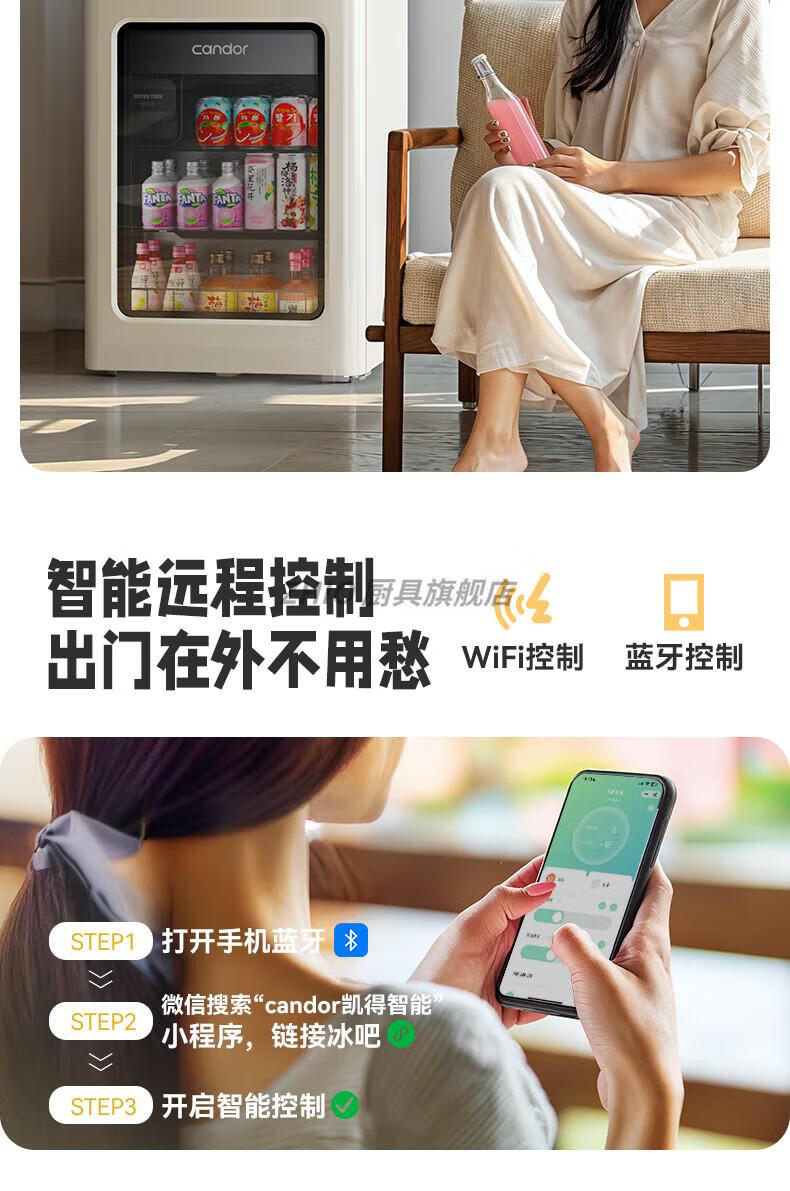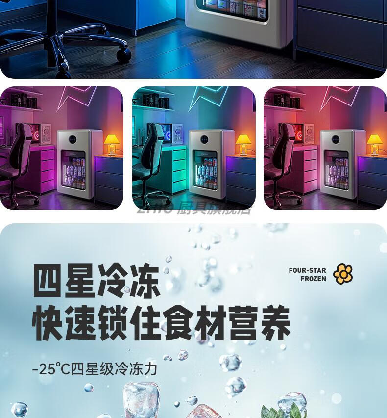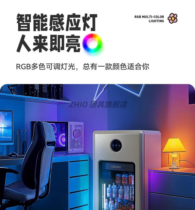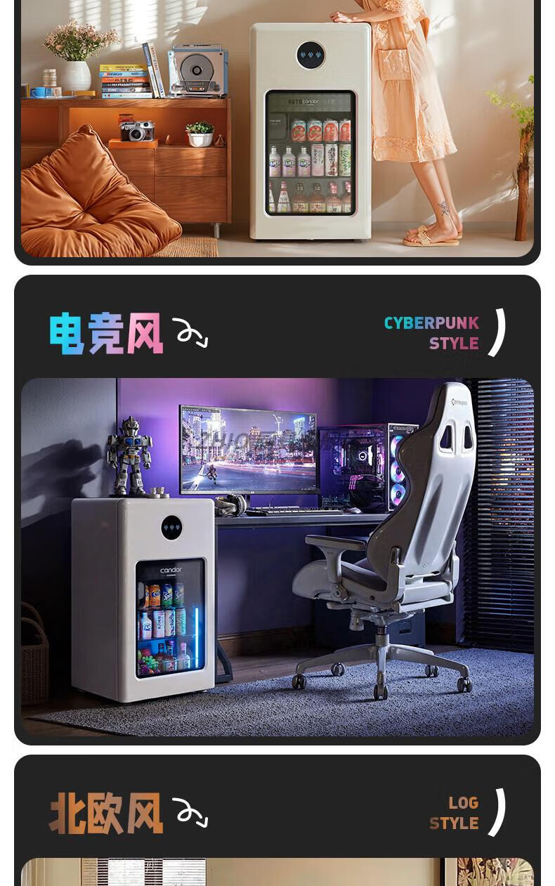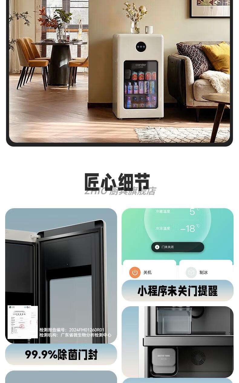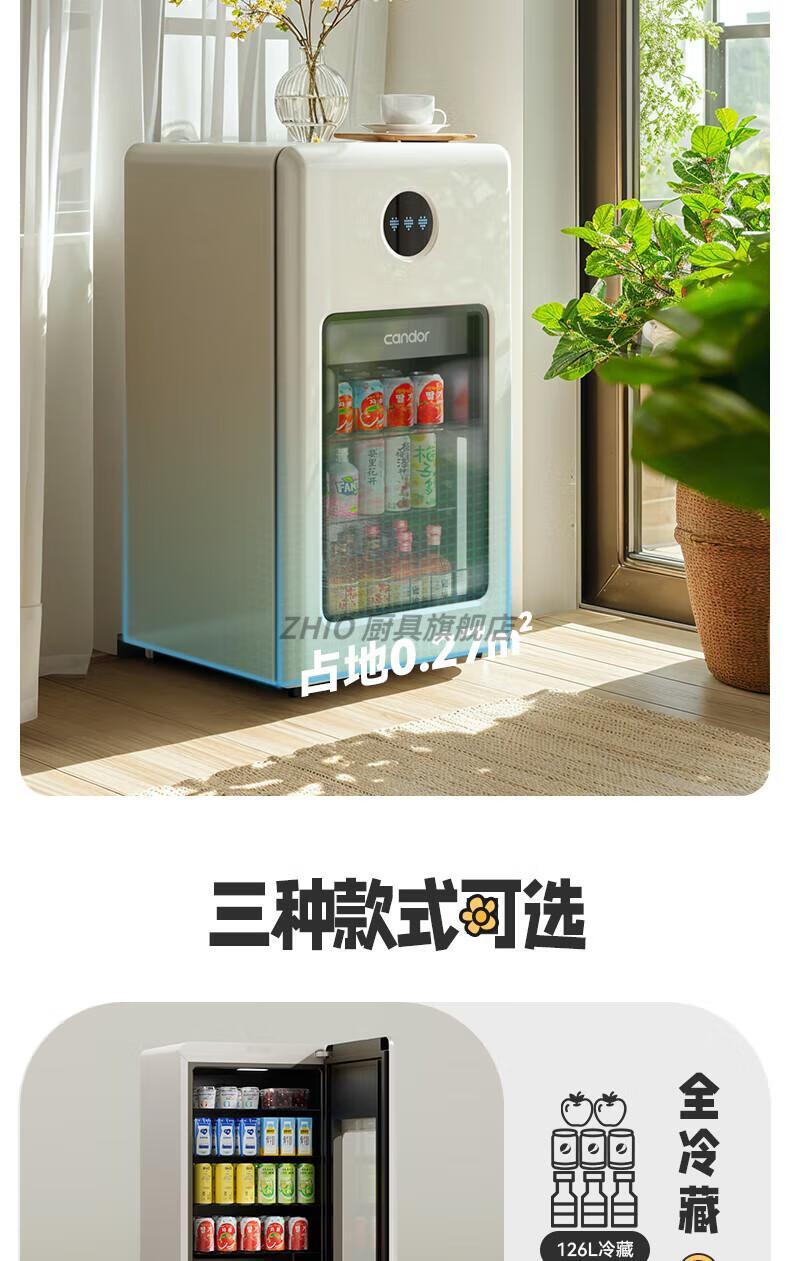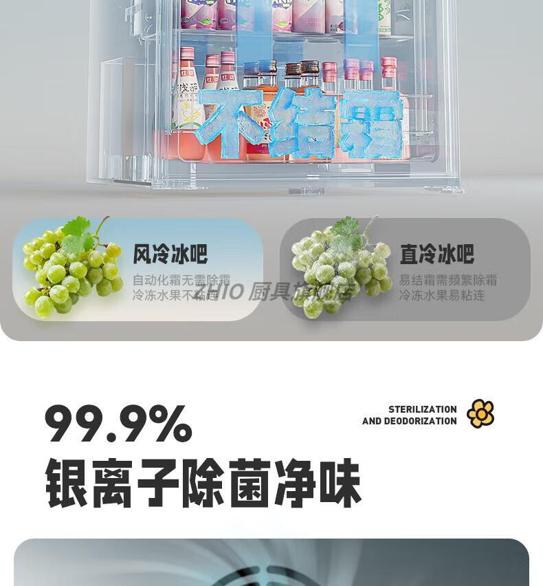 ZHIO German imported high-quality automatic ice-making ice bar air-cooled frost-free home living room office e-sports room retro small refrigerator 97/max milk tea color