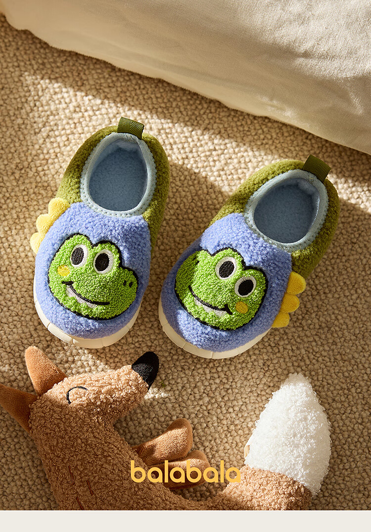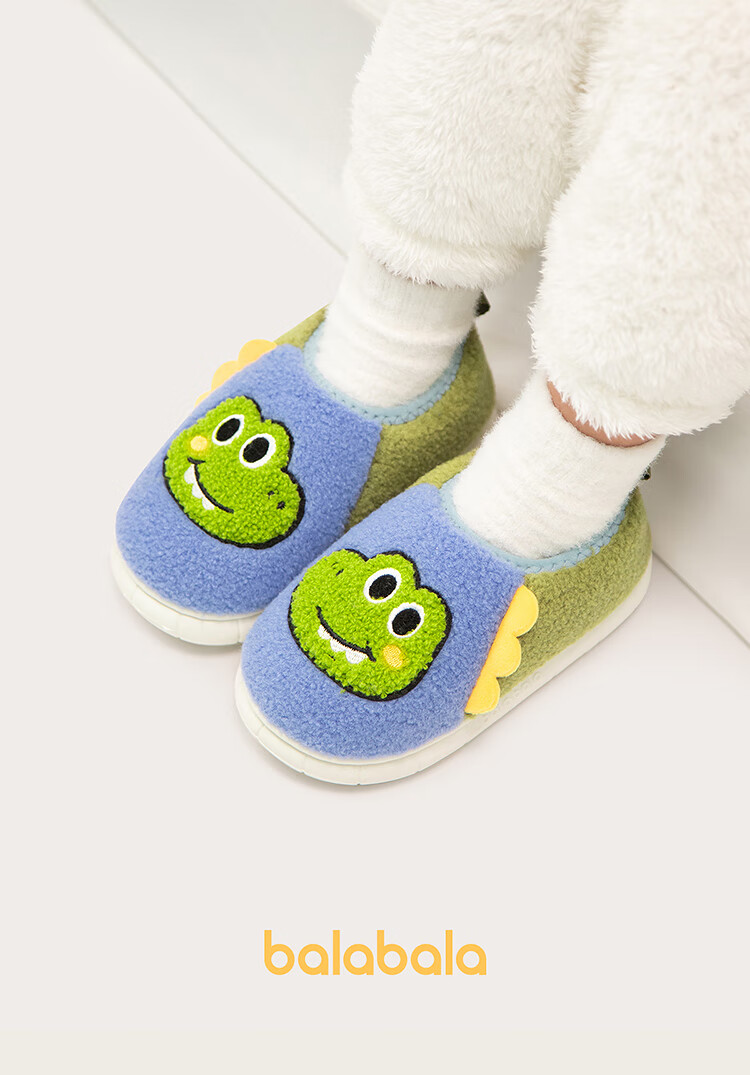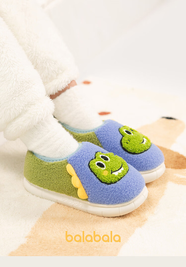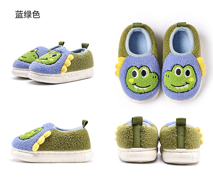 Balabala children's shoes children's cotton slippers boys and girls velvet home shoes winter bags and shoes for outer wear blue-green tone 00384 28 (inside length 18cm recommended foot length 17cm)
