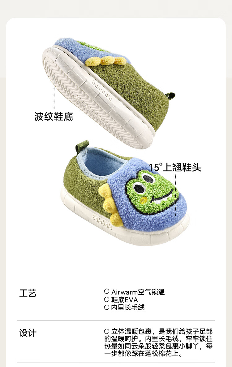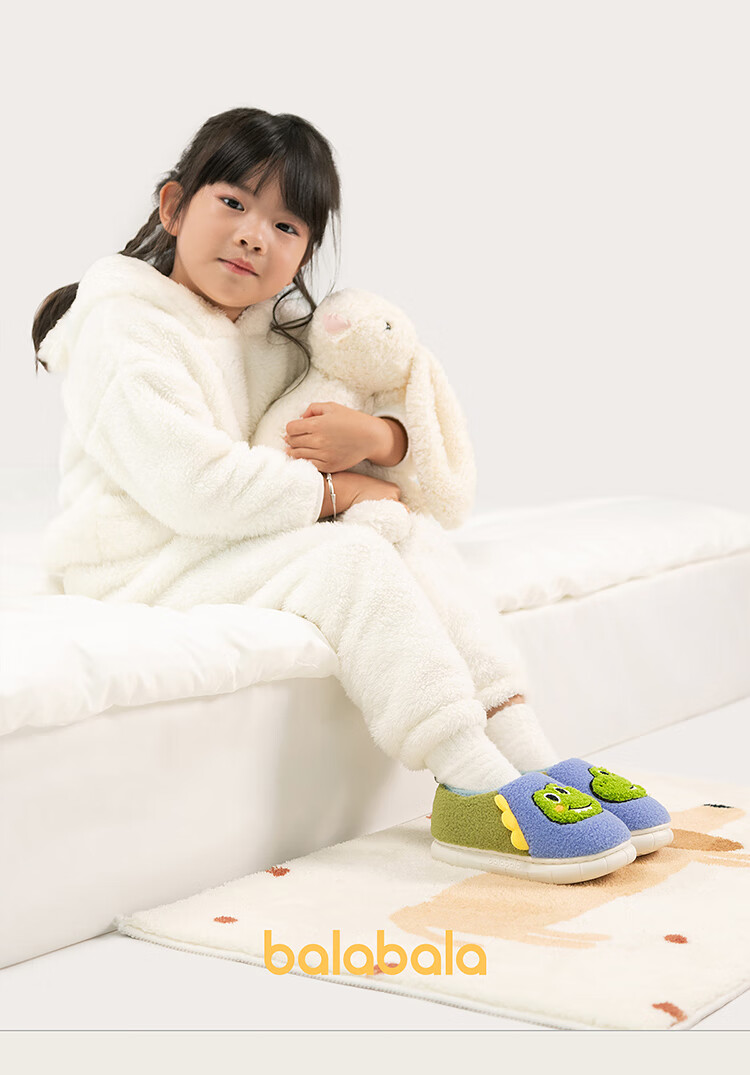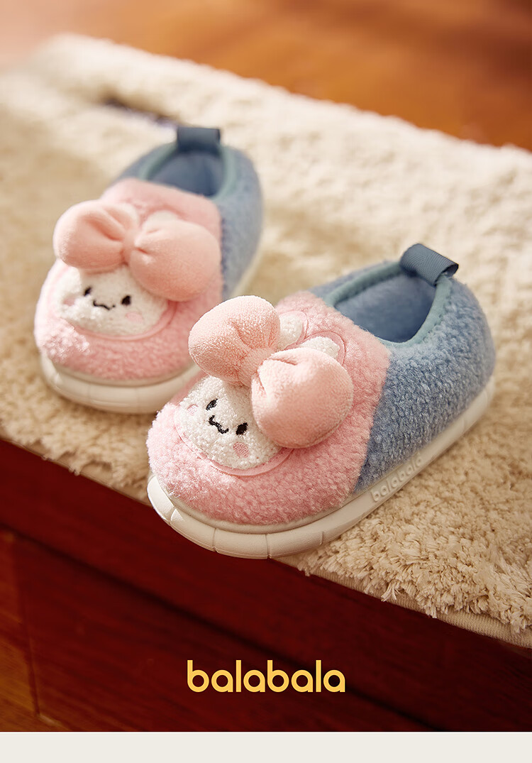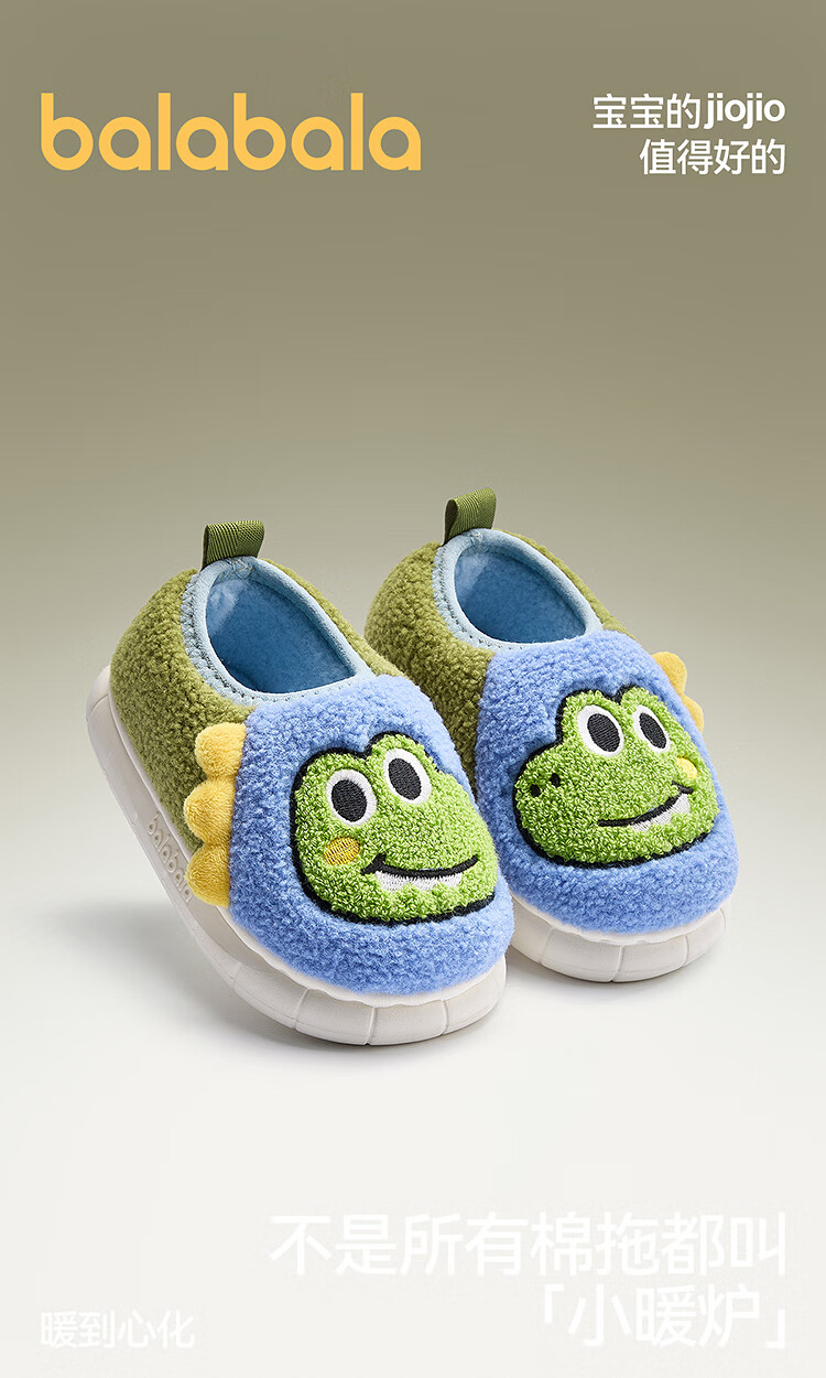Balabala children's shoes children's cotton slippers boys and girls velvet home shoes winter bags and shoes for outer wear blue-green tone 00384 28 (inside length 18cm recommended foot length 17cm)