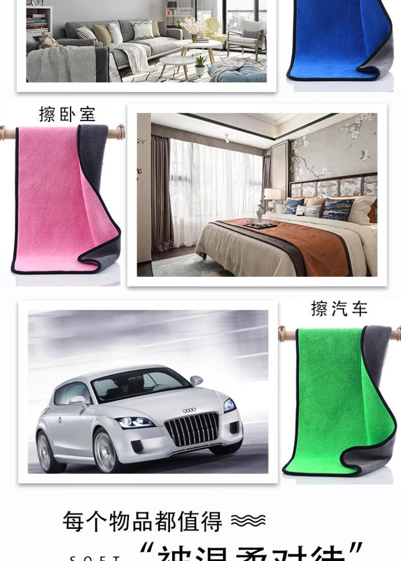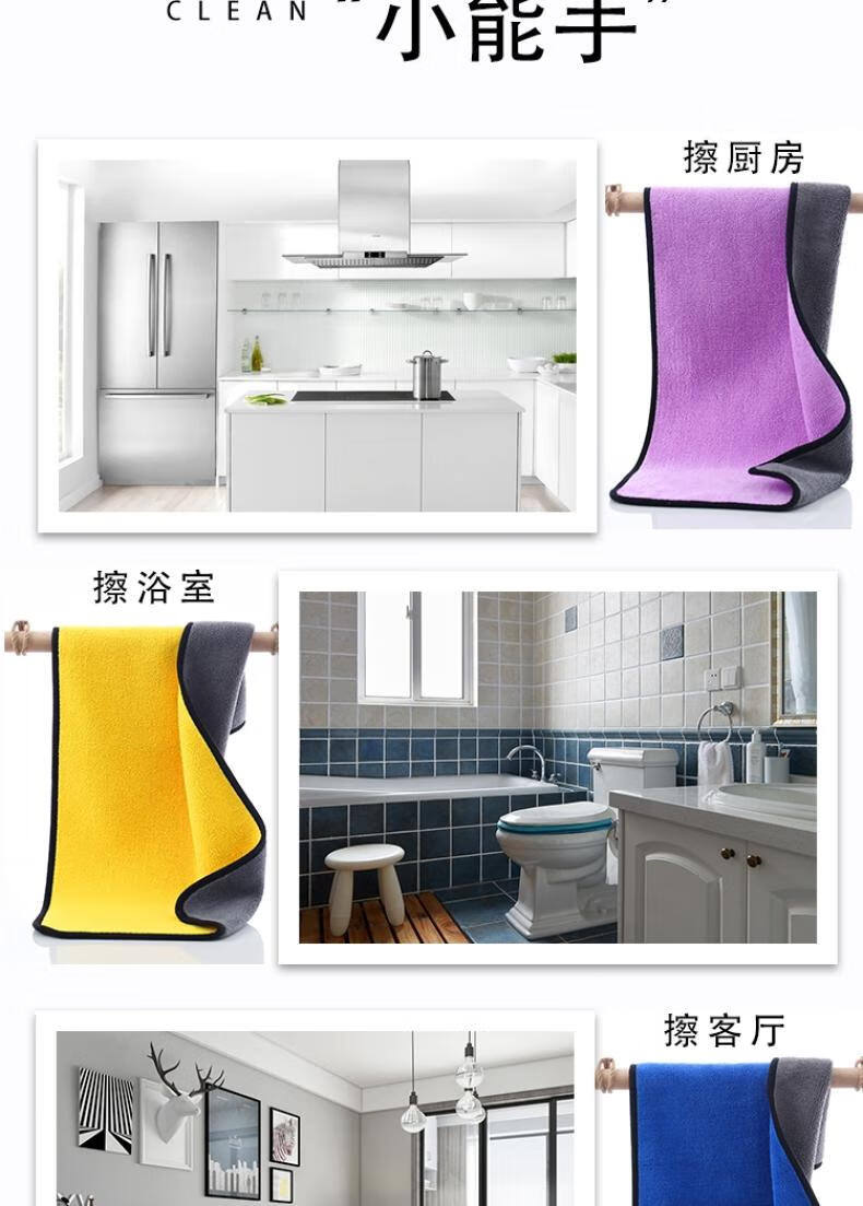 TRUHEIM Japanese housework special rags for cleaning, water absorption, thickening, wiping floors, sanitary towels, household table wiping dishcloths, 30*60cm, gray and yellow 6 pieces