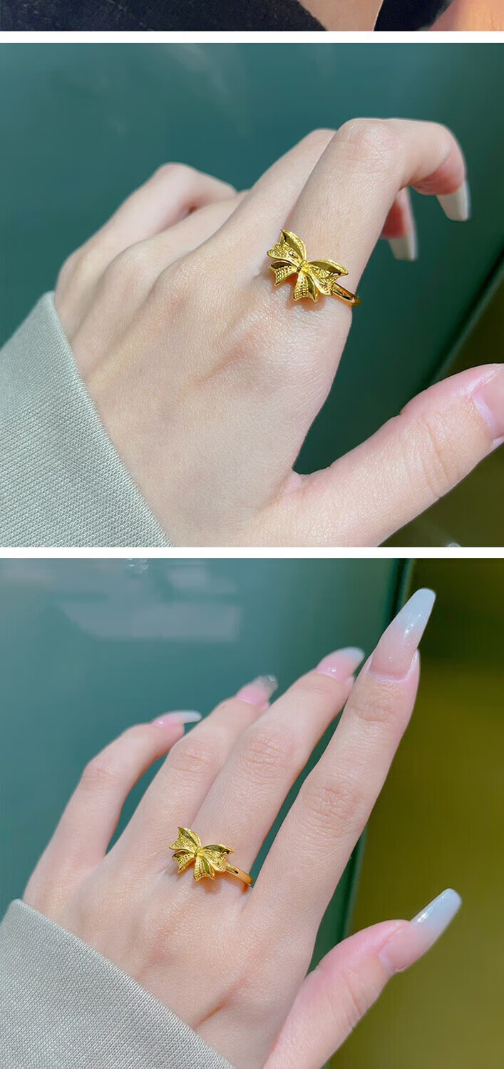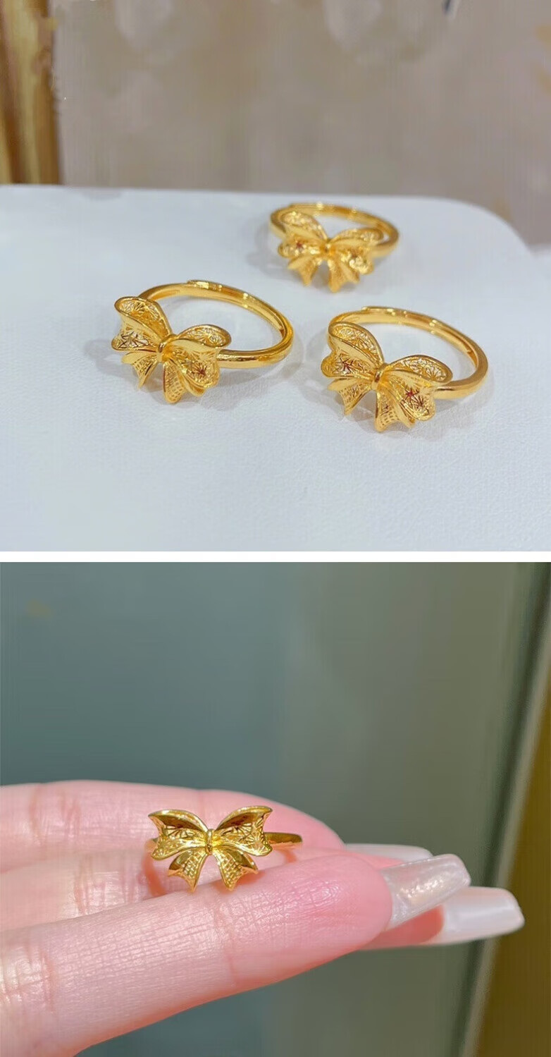 Ningfeng Old Phoenix Gold Store Gold 9999 Bow Ring Fugitive Princess Imitation Gold Live Ring Holiday Girlfriend 1.12g