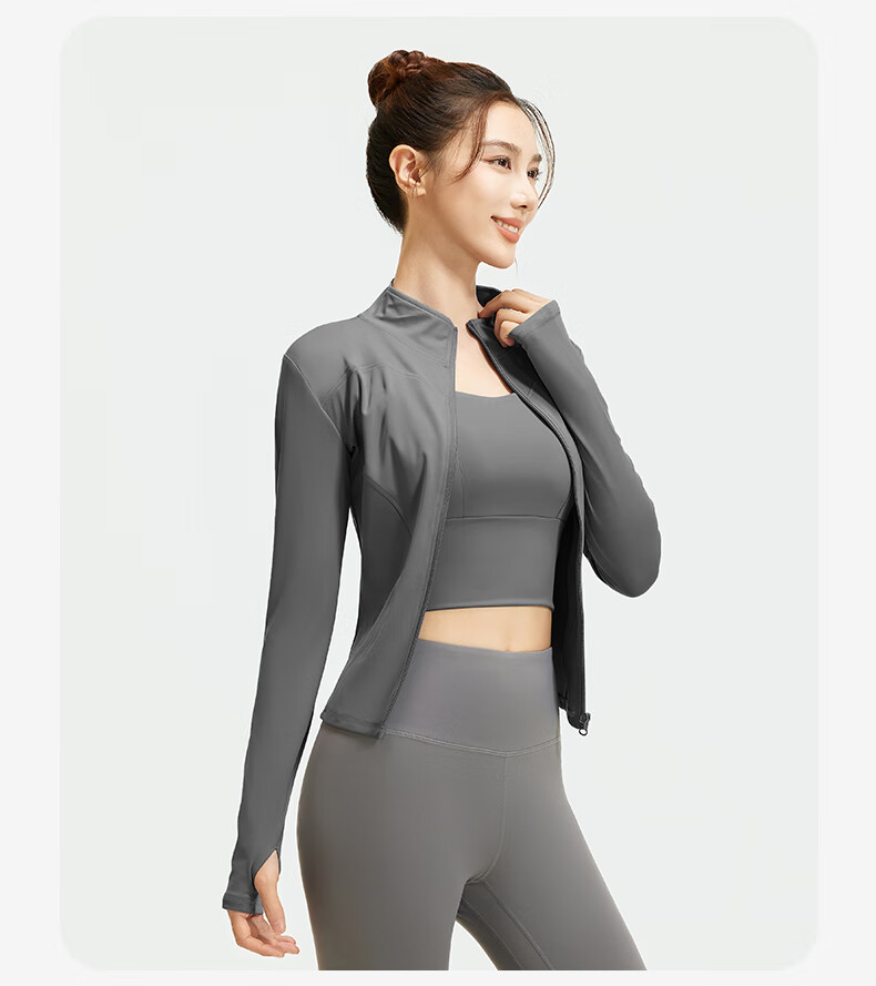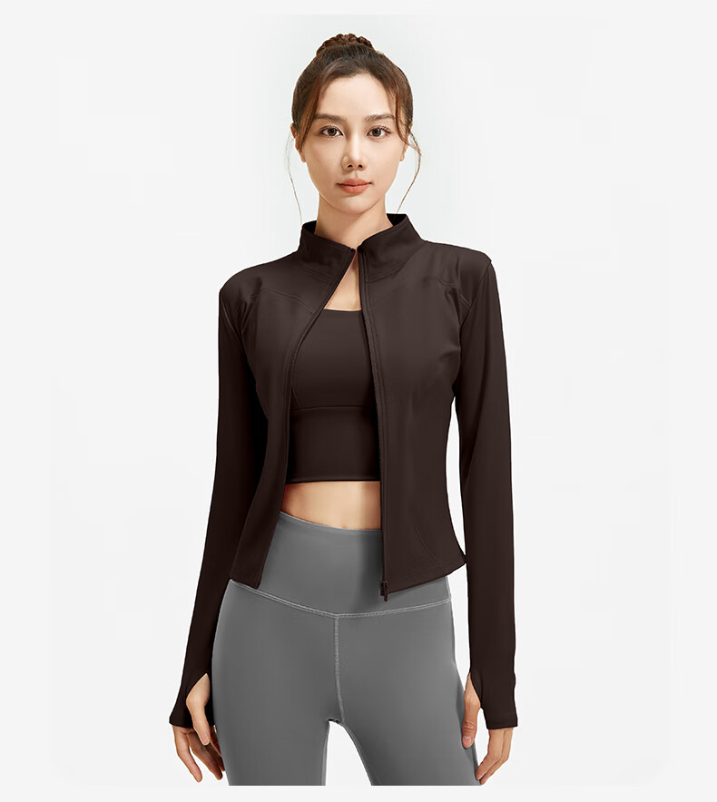 Lujiapingti yoga wear jacket slimming top running fitness suit Pilates autumn and winter large size espresso M