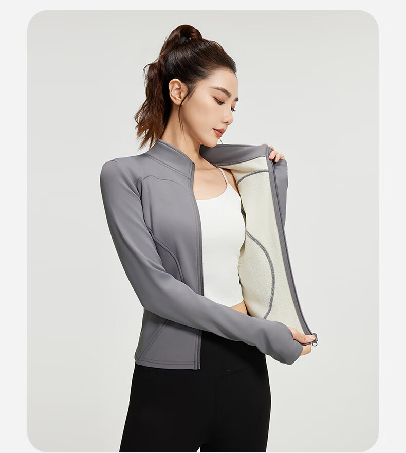 Yoga wear women's jacket 2025 autumn and winter Pilates training fitness top morning running sports suit plus velvet to keep warm Star Black L