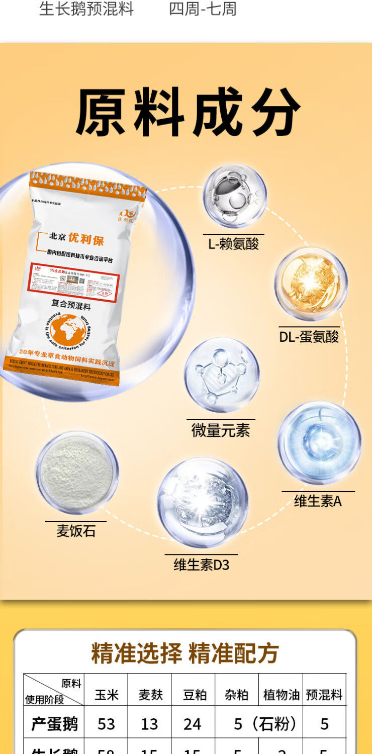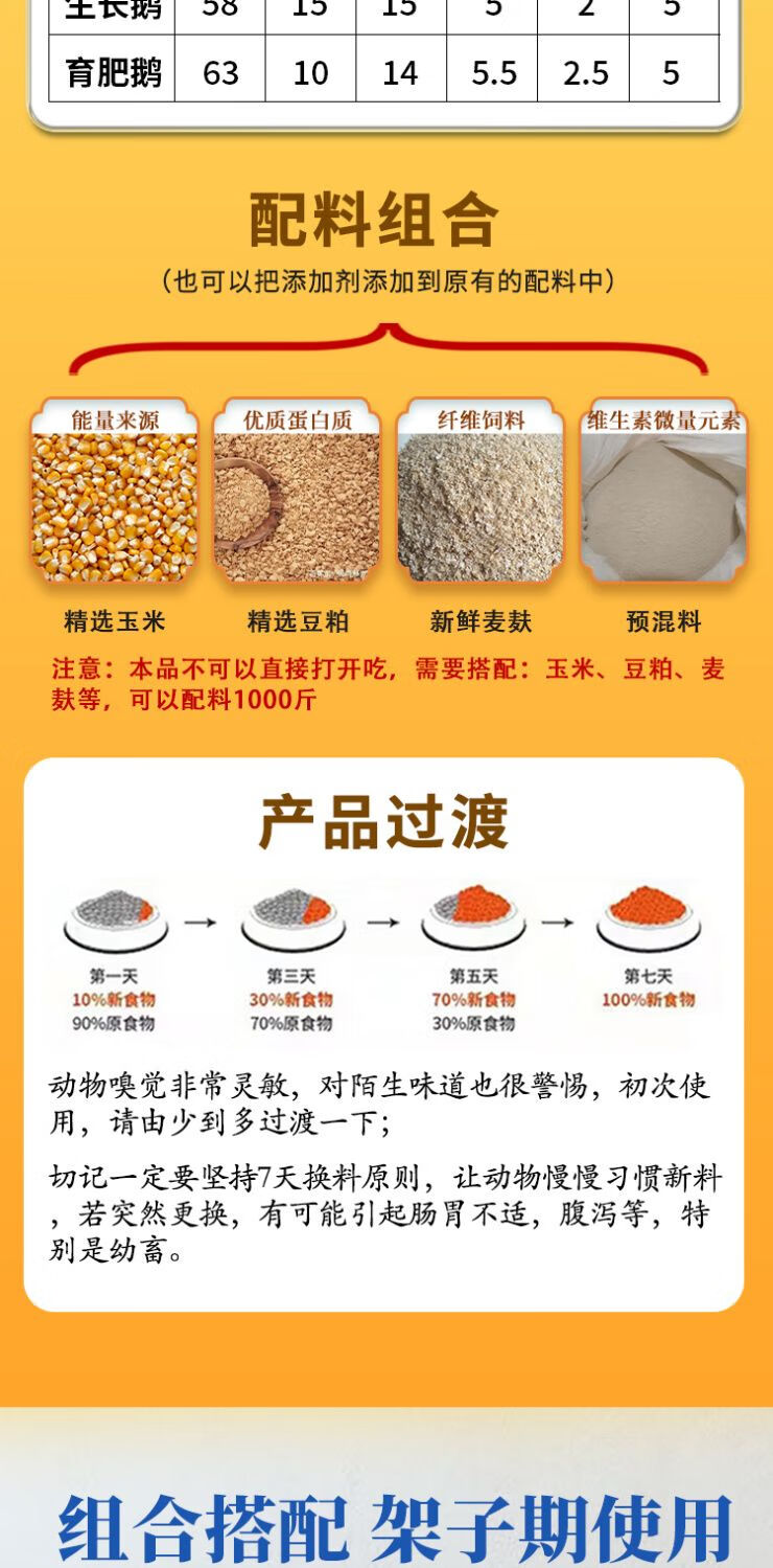 OIMG goose premix, special feed for growing geese, goslings, lion head geese, general feed for chickens, ducks and geese, mid-term feed, 5% growing goose premix #50Jin Jin is equal to 0.5 kg