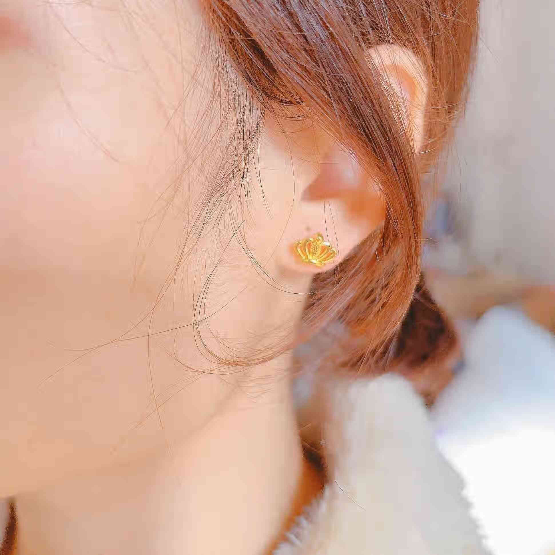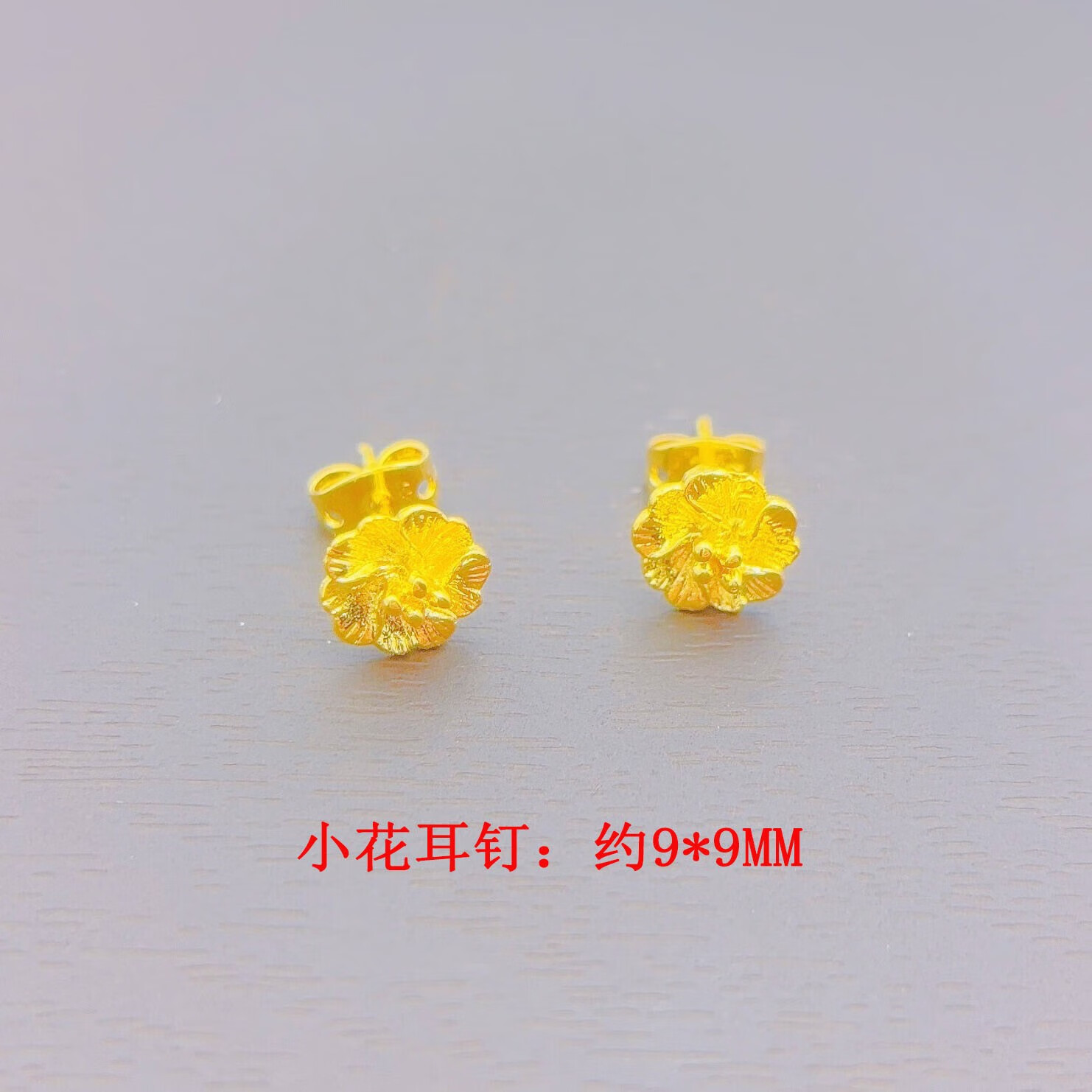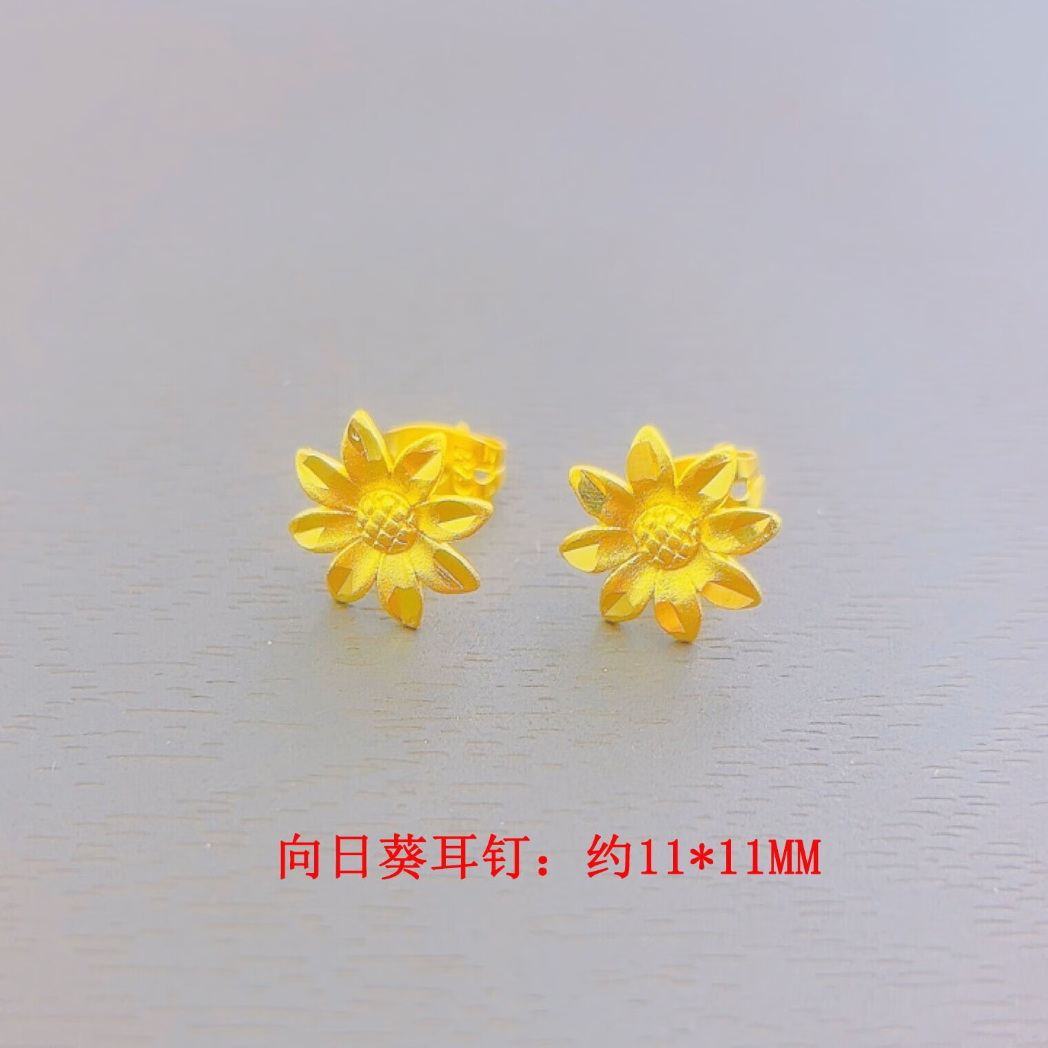 Ningfeng Old Phoenix Gold Store 2025 new sand gold earrings for women fresh four-leaf clover imitation gold color sunflower earrings