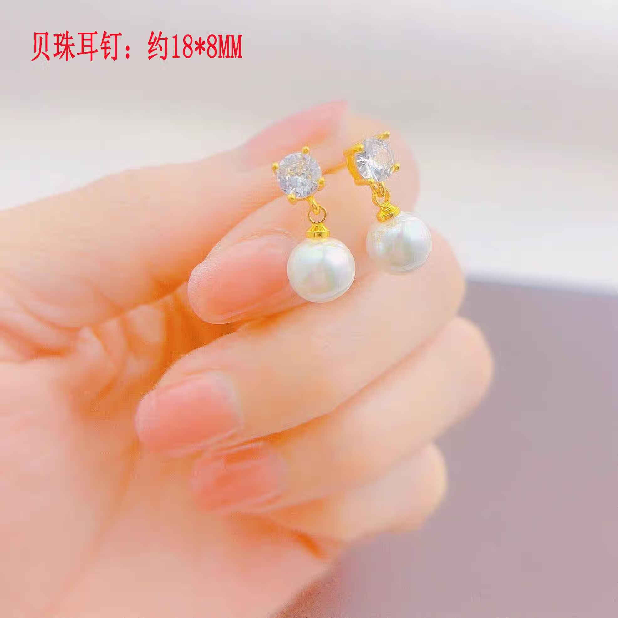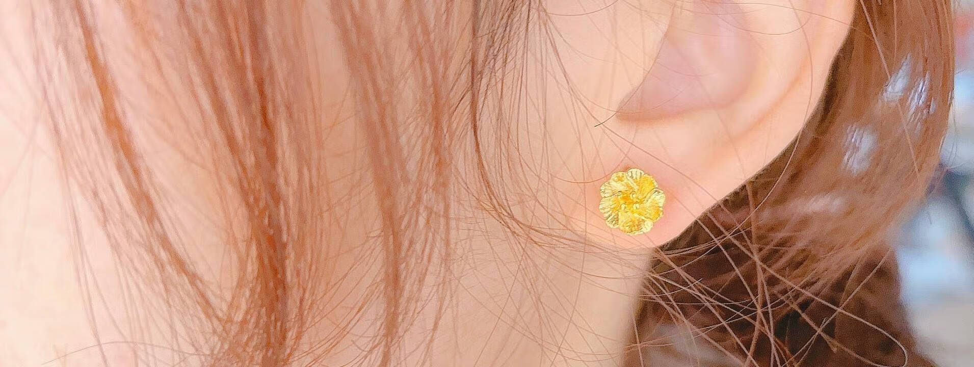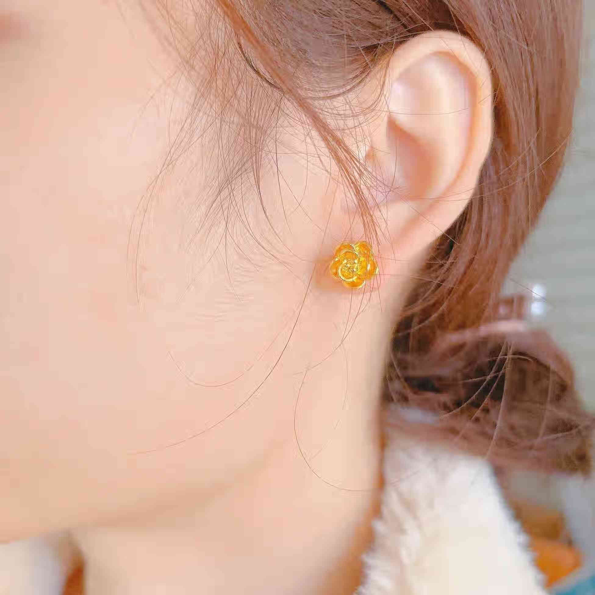 Ningfeng Old Phoenix Gold Store 2025 new sand gold earrings for women fresh four-leaf clover imitation gold color sunflower earrings