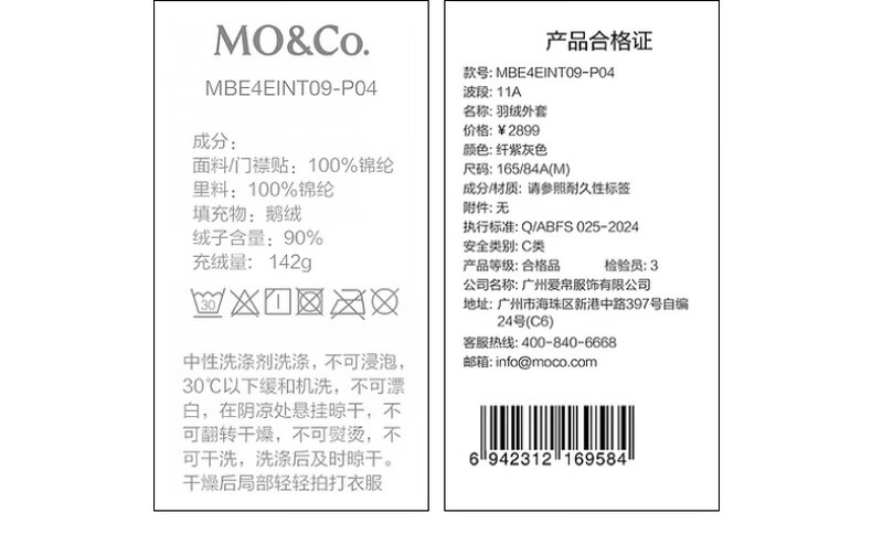MO&Co. Qin Lan's same style goose down jacket, light and warm roaming series, Moanke off-white XS /155