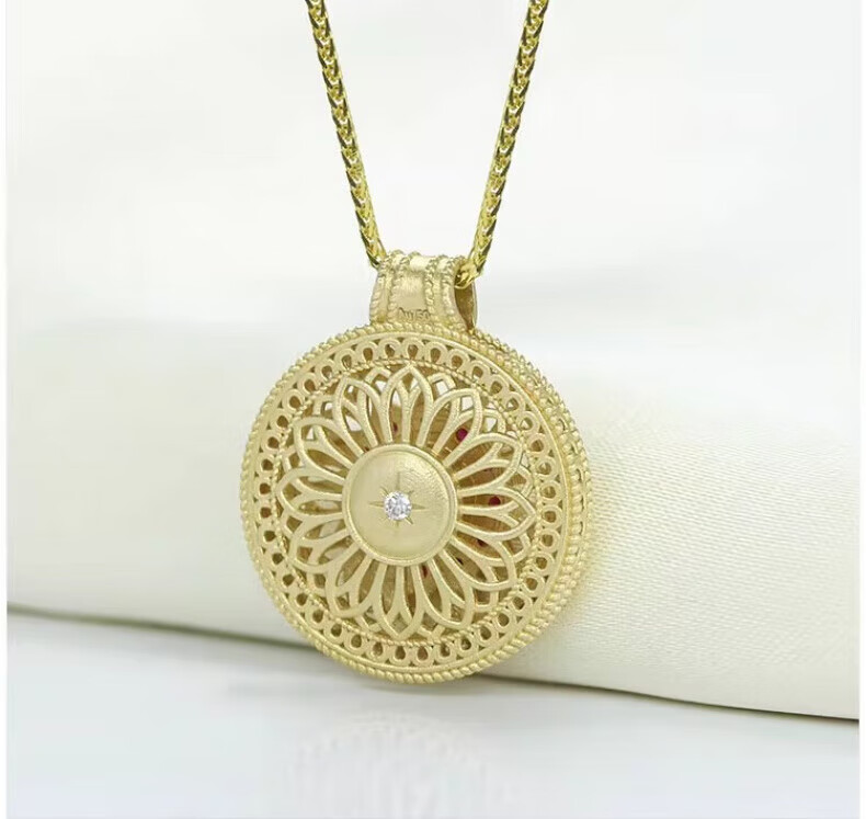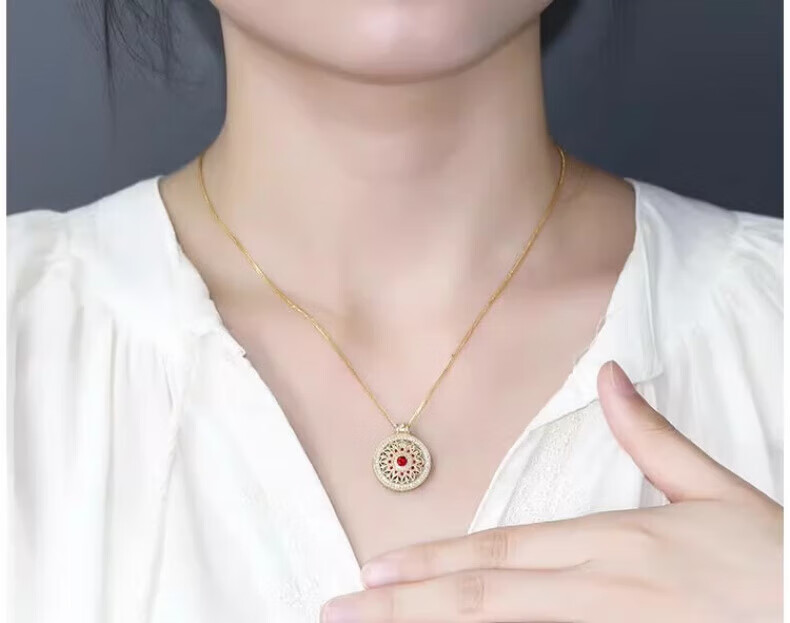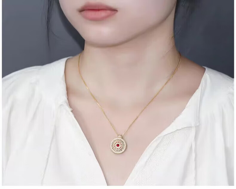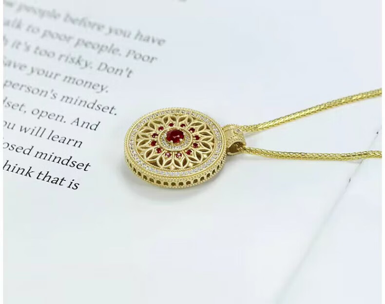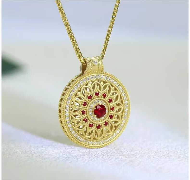 Ningfeng 18K gold natural pigeon blood ruby diamond pendant for women ancient compass rose sweater necklace pendant jewelry pendant