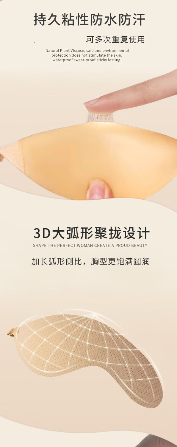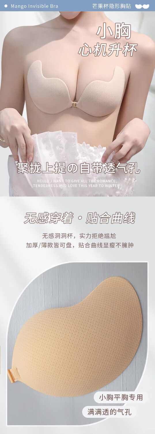Tanbeiman underwear women's push-up bra non-slip push-up invisible silicone breast patch wedding dress seamless evening dress thickened breast patch mango breast patch thick B cup