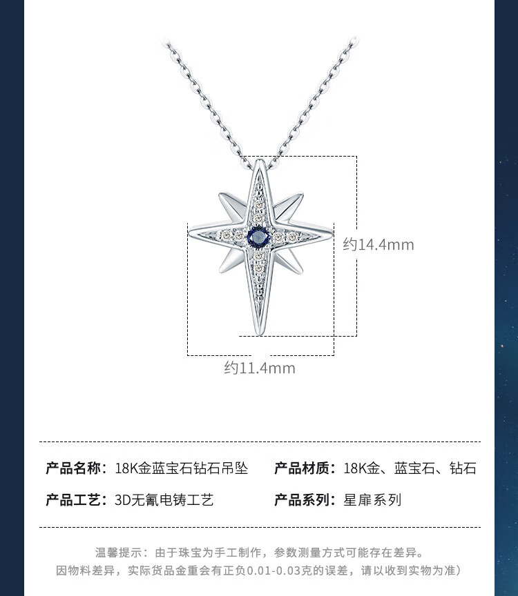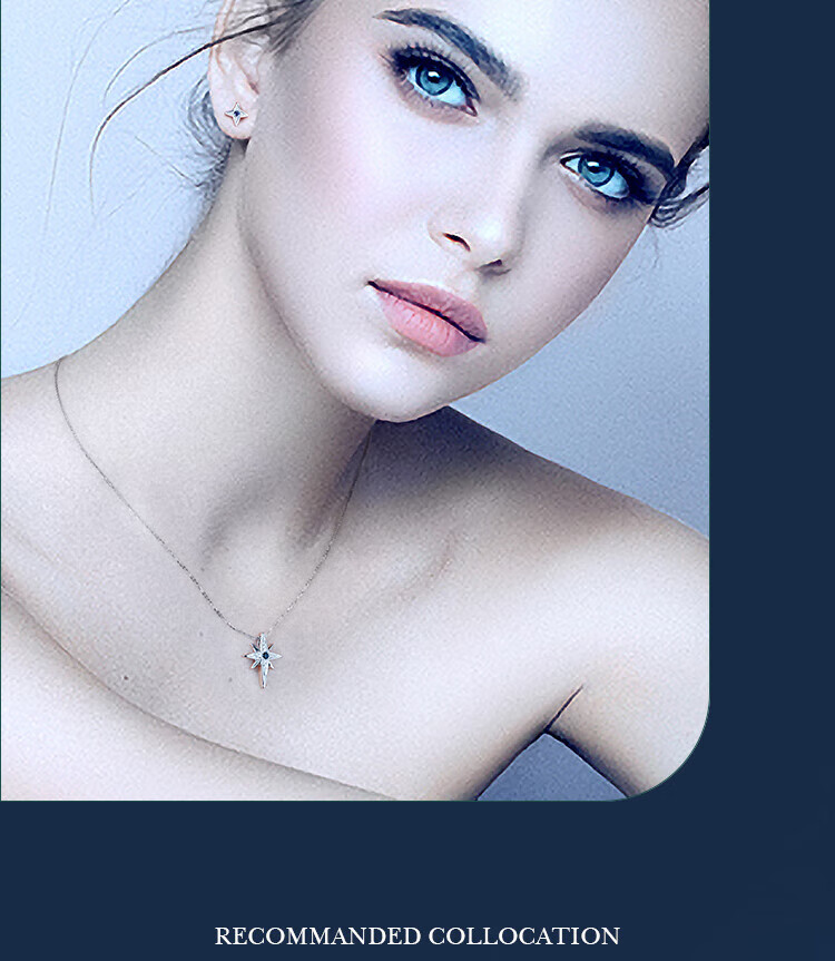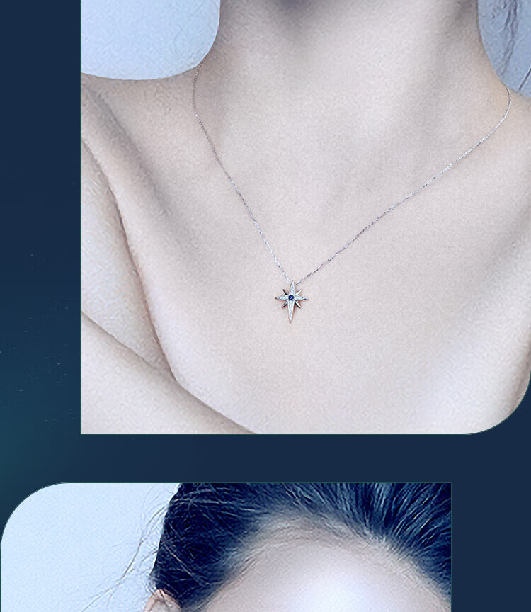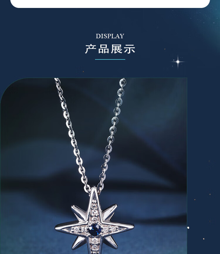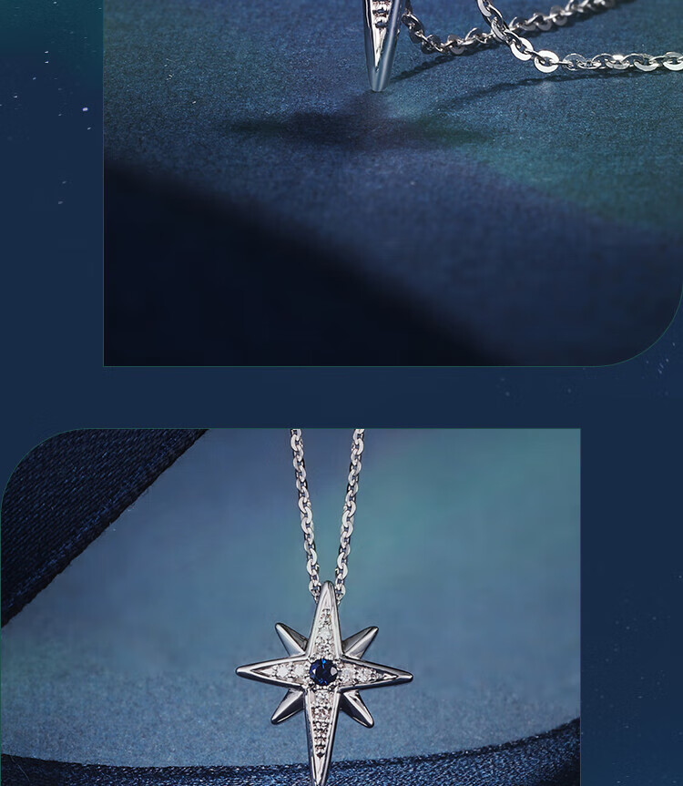 Qiaoyu Jewelry 18K Gold Sapphire Diamond Pendant K Gold Necklace Eight-pointed Star Neck Ornament for Girlfriend’s Birthday Gift Pendant