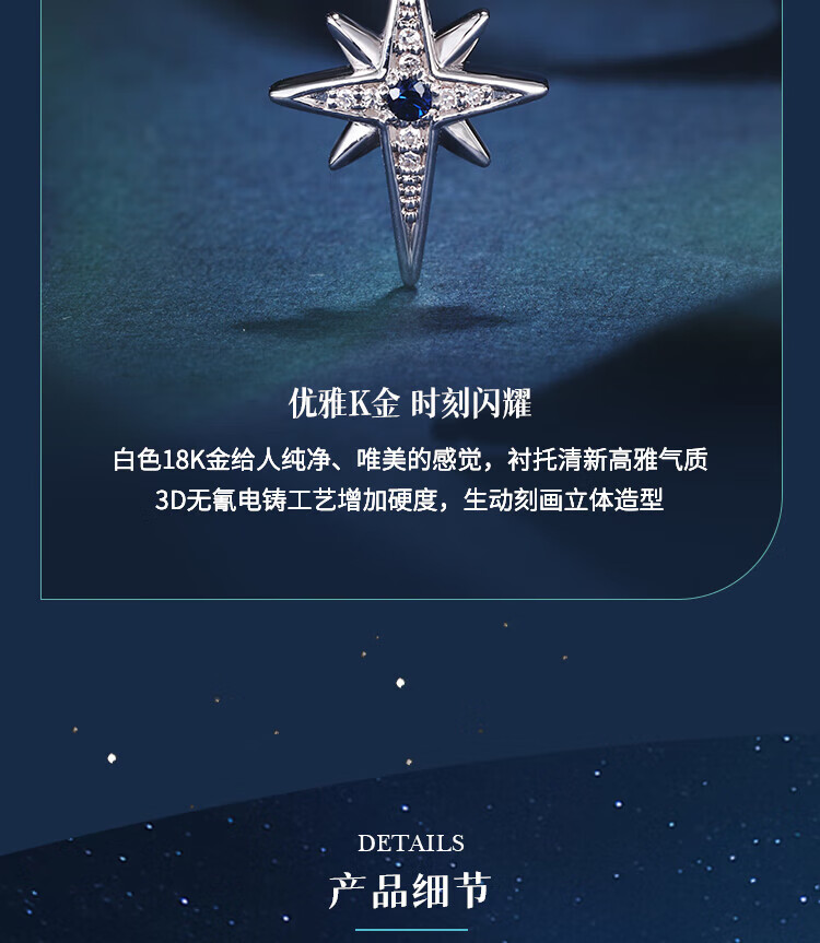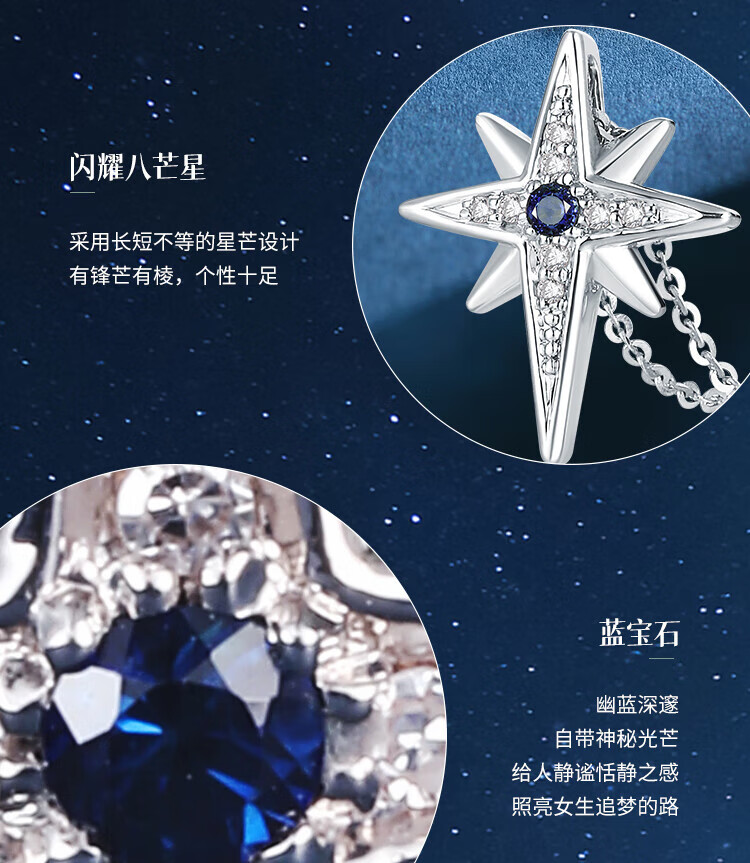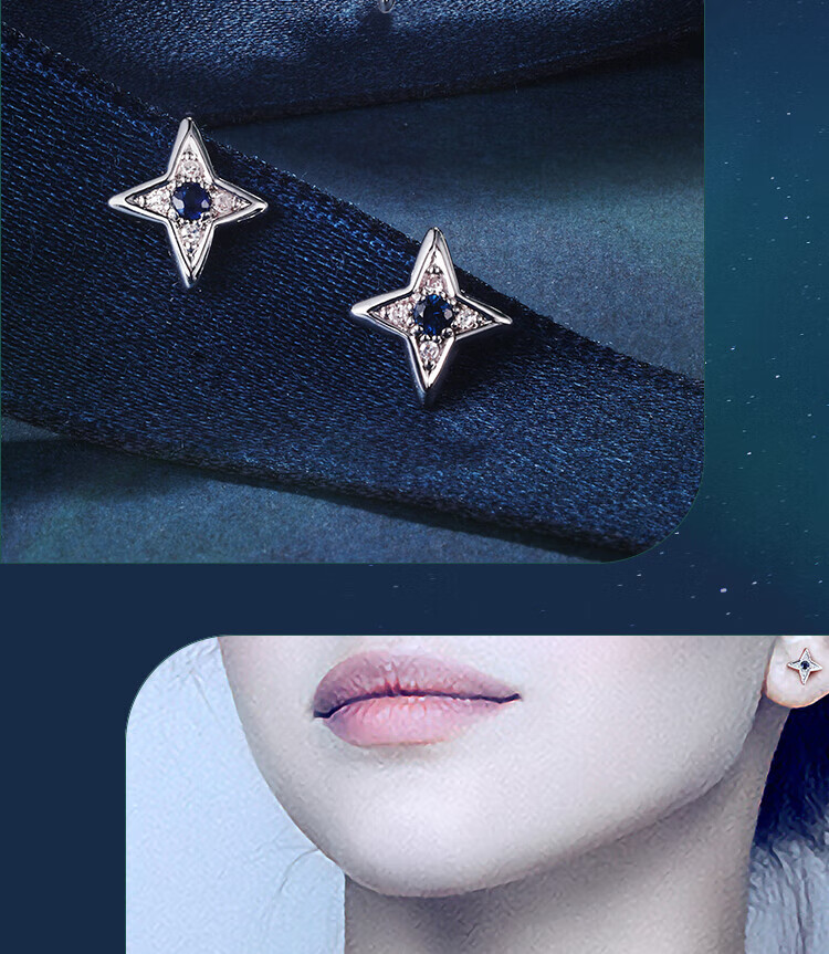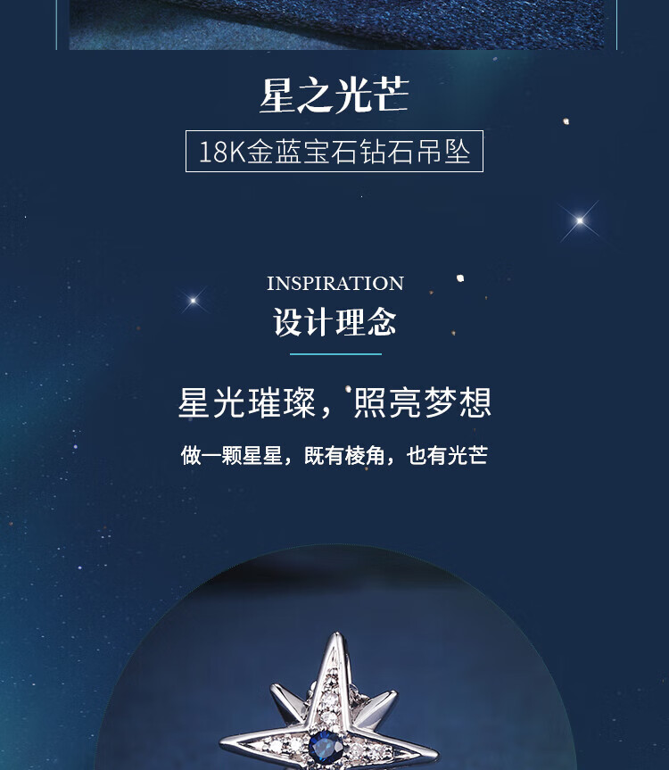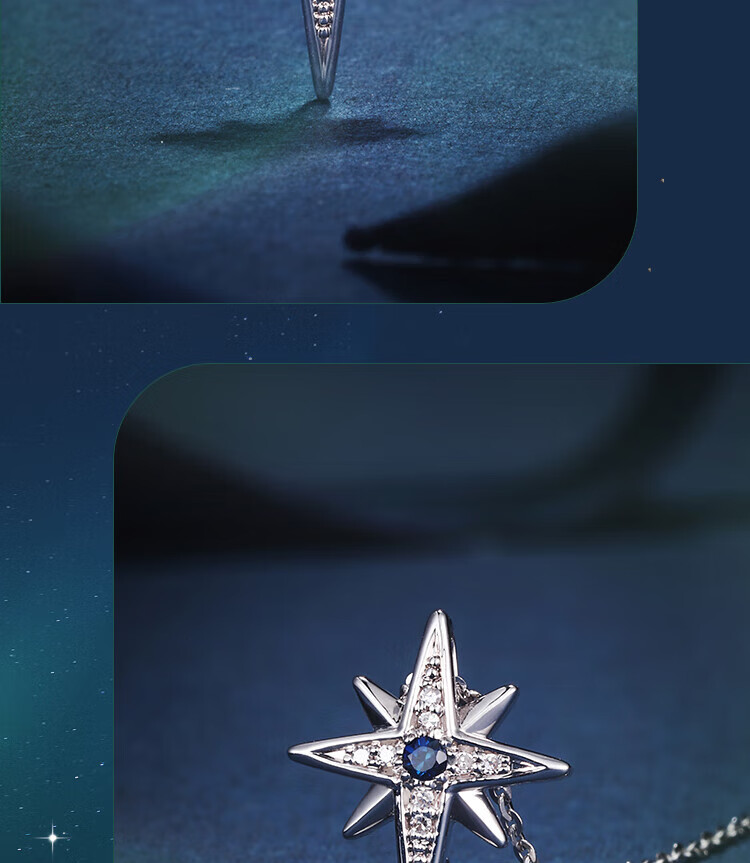 Qiaoyu Jewelry 18K Gold Sapphire Diamond Pendant K Gold Necklace Eight-pointed Star Neck Ornament for Girlfriend’s Birthday Gift Pendant