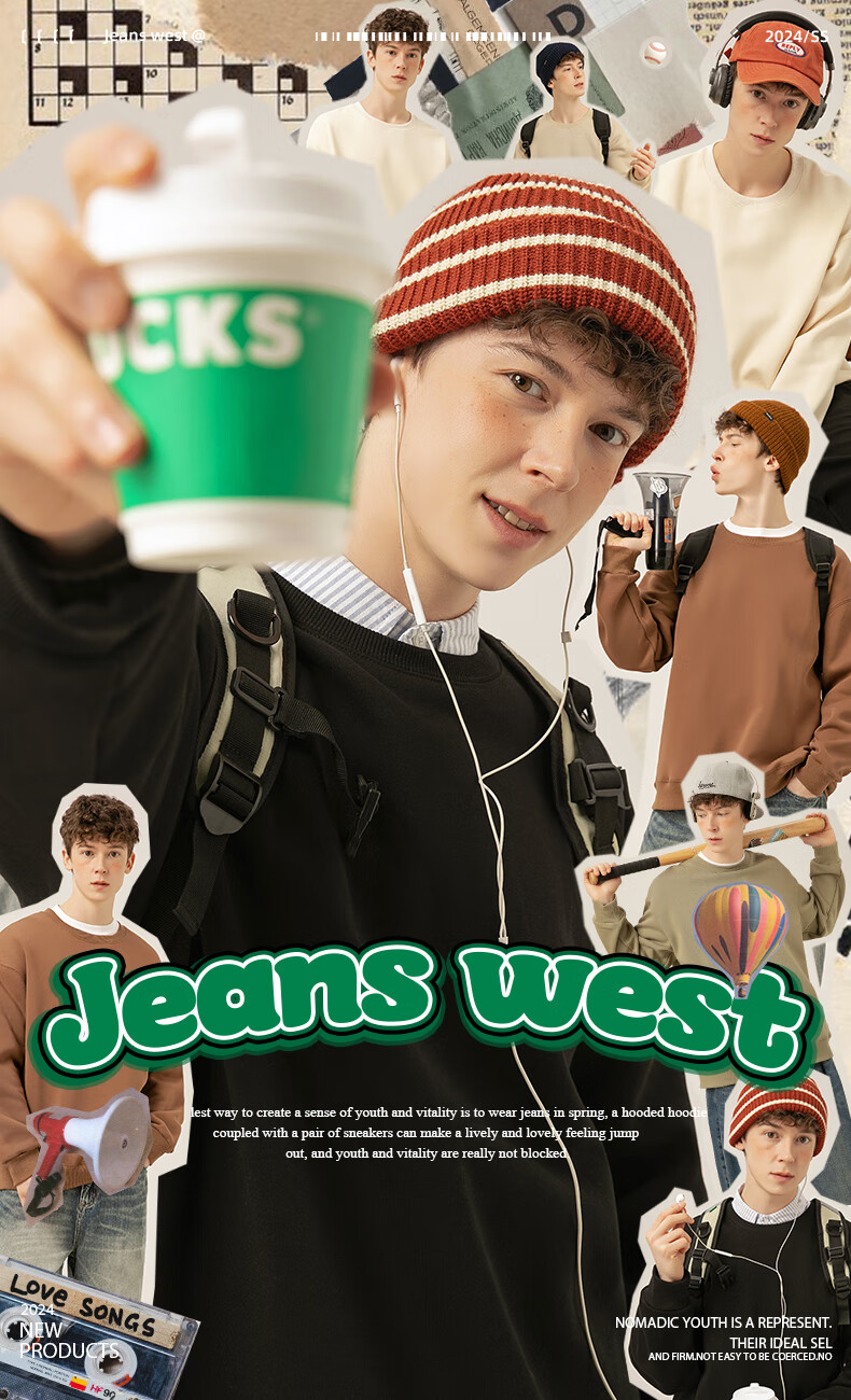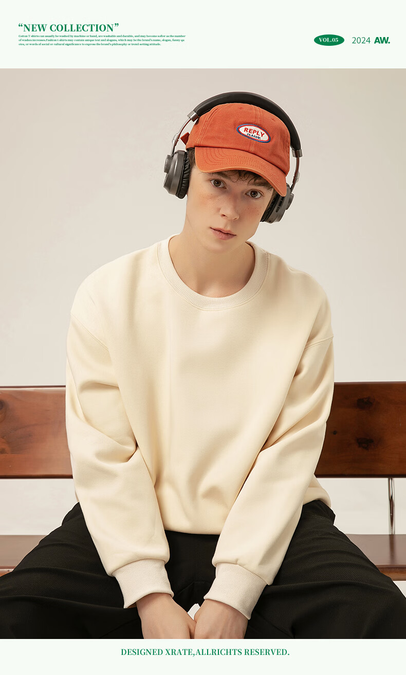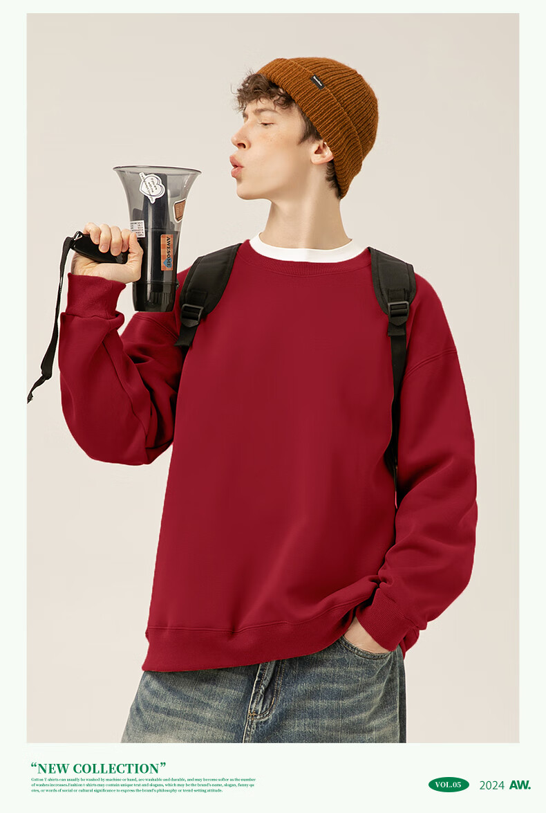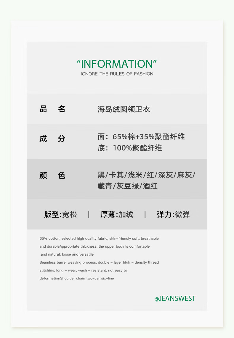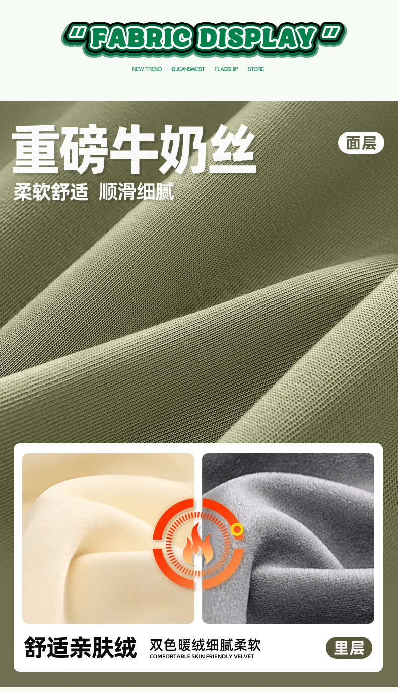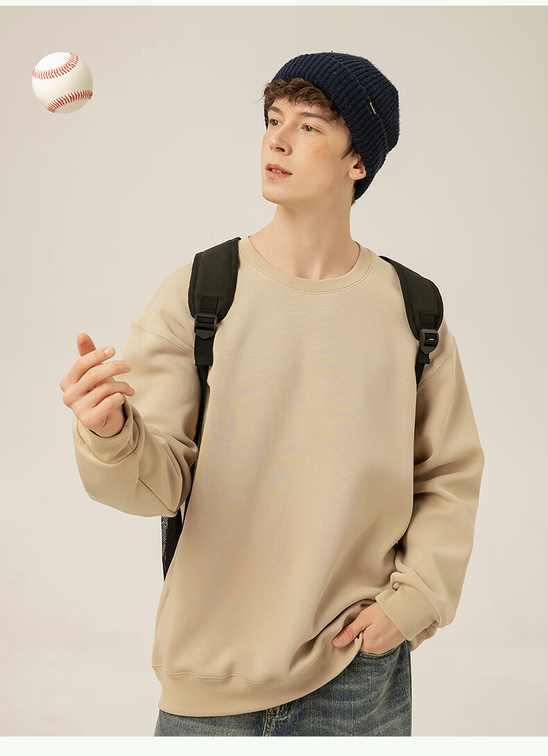 Jeanswest thickened velvet sweatshirt for men, warm long-sleeved inner, autumn and winter island velvet to keep out the cold, versatile commuting top jacket for men, shallow rice (mountain fishing) plus velvet M (170) (Full refund for quality issues within 30 days)