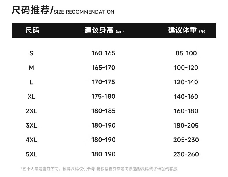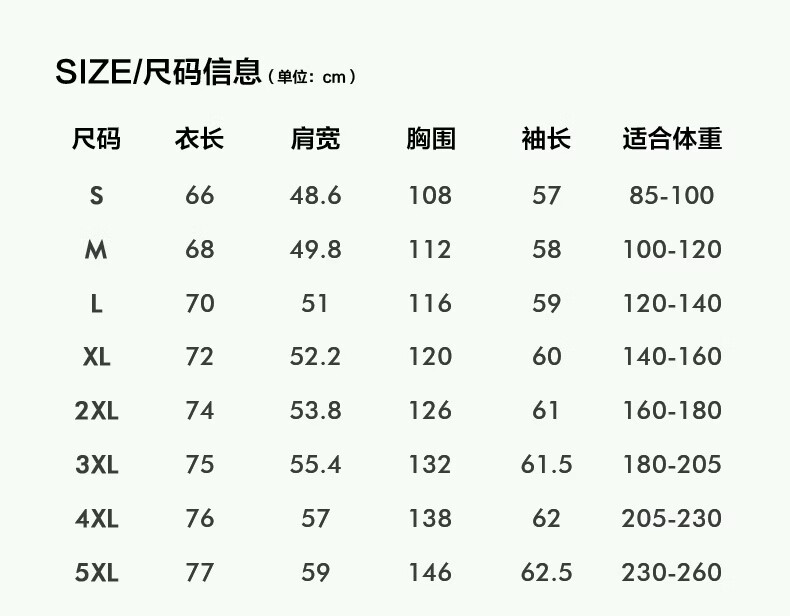 China (cm) 160-165/84-86 165-170 / 88-90 167-172 / 92-96 168-173 / 98-102 170-176 / 106-110