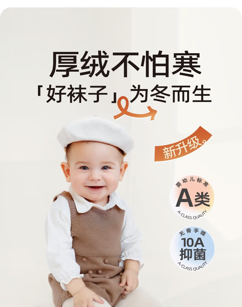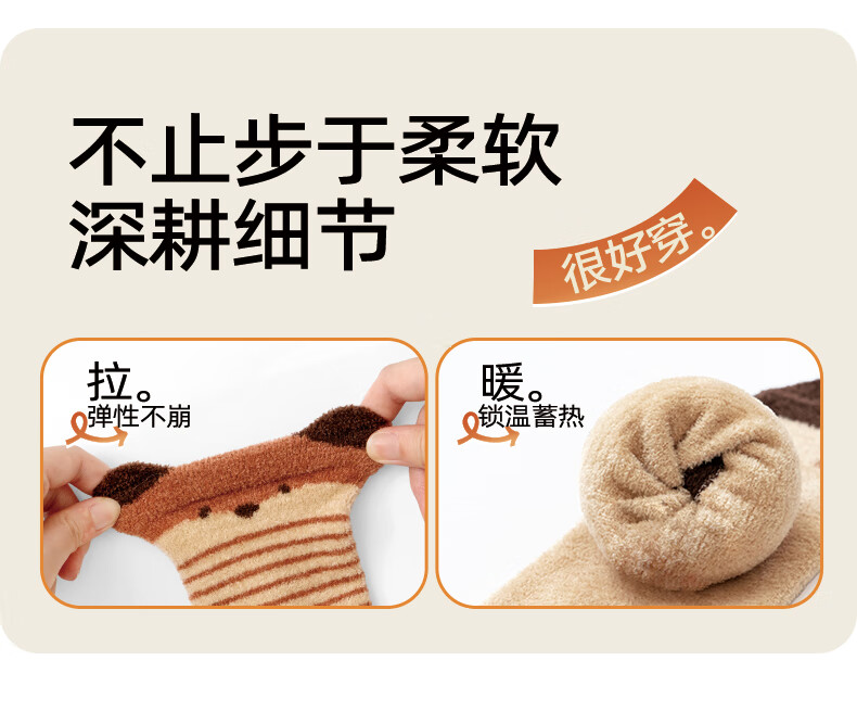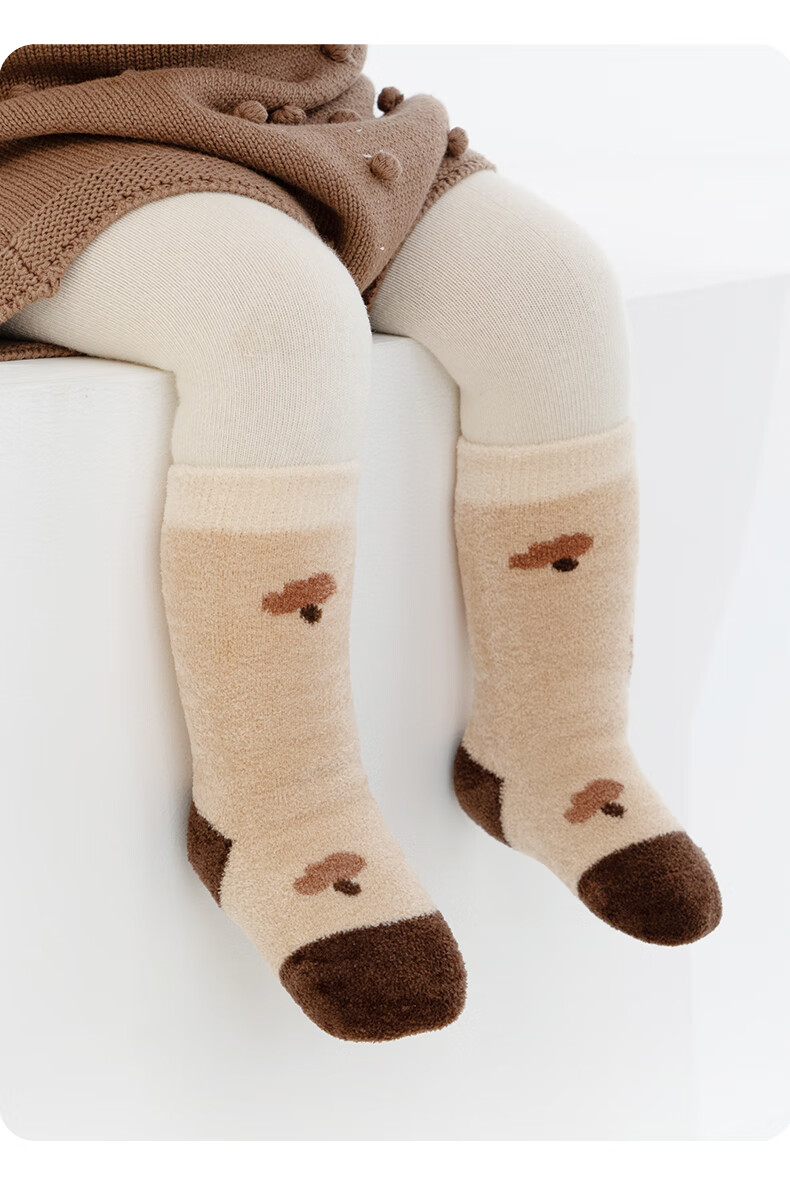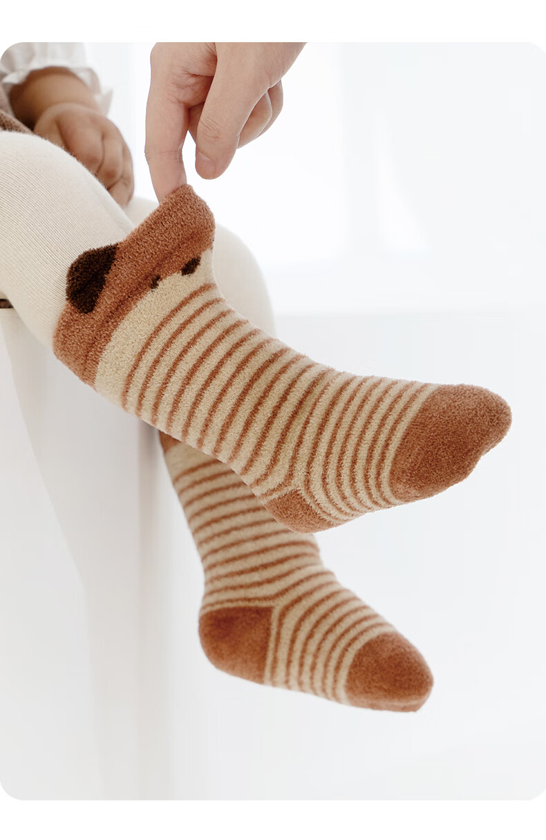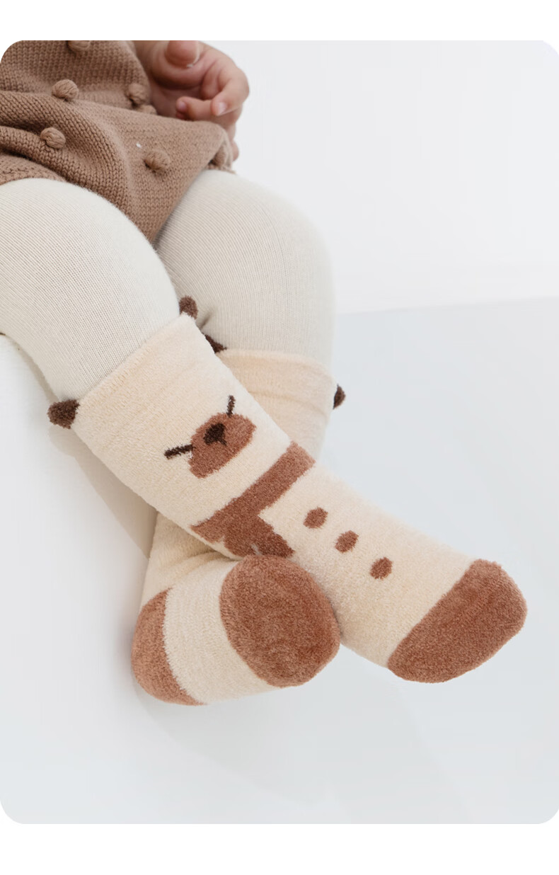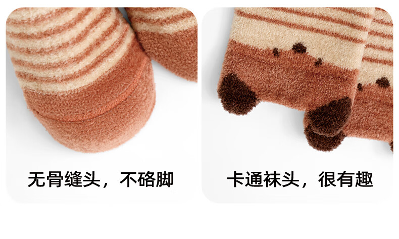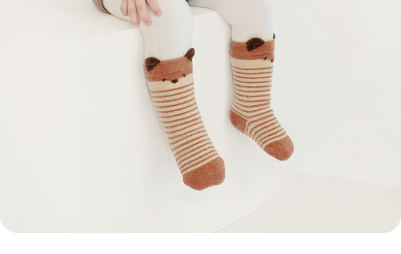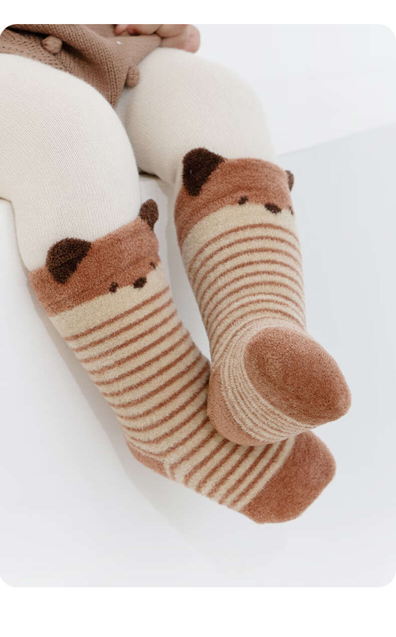 Growth sending baby socks autumn and winter type a plus velvet thickened warm mid-calf socks newborn baby winter boneless calf socks cute fox group 10A antibacterial thickening heating 3 pairs 1-3 years old M size (recommended foot length 12-14CM)