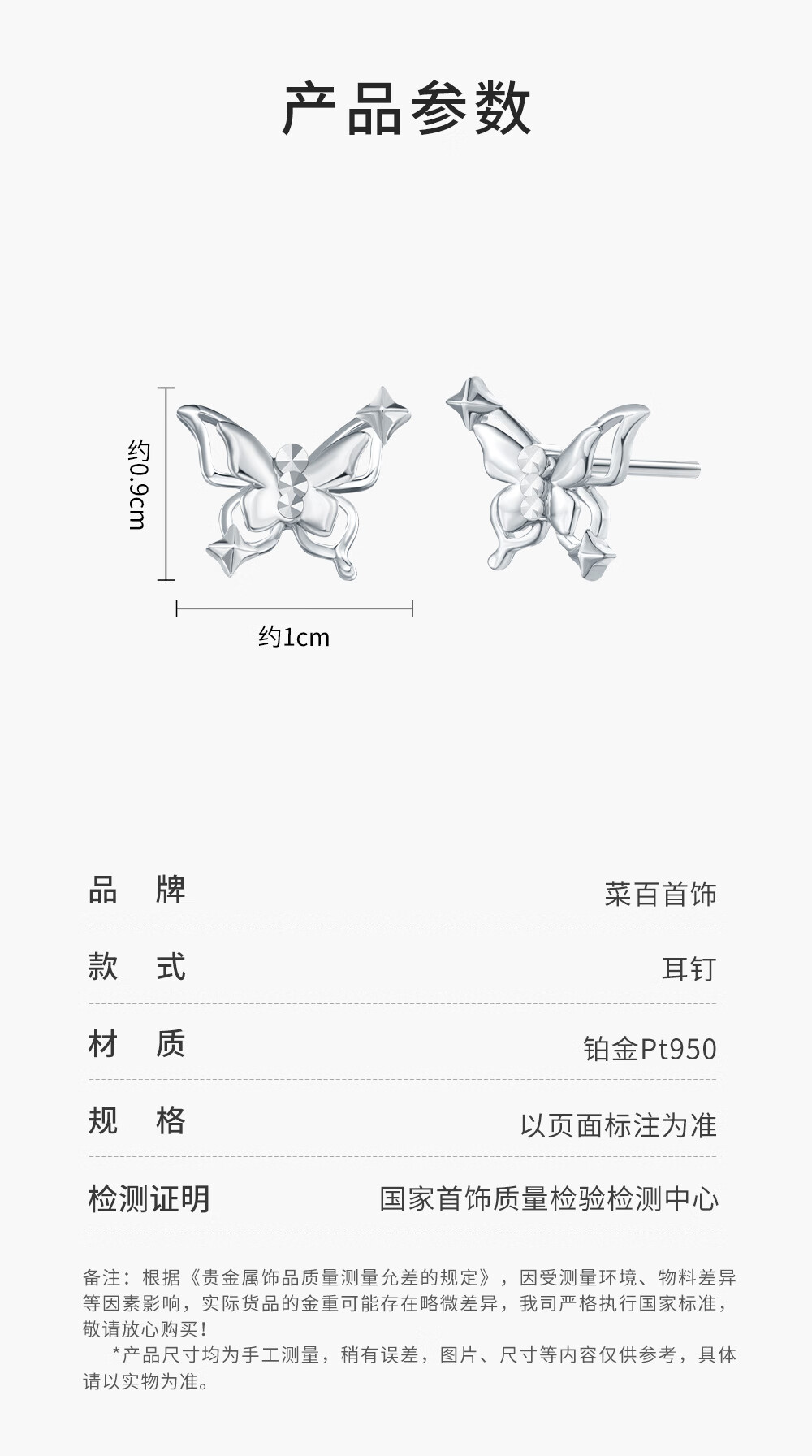 Caibai Jewelry Platinum Earrings Pt950 Platinum Fashion Design Cross Star Butterfly Earrings Price BJ Platinum Earrings About 1.71g