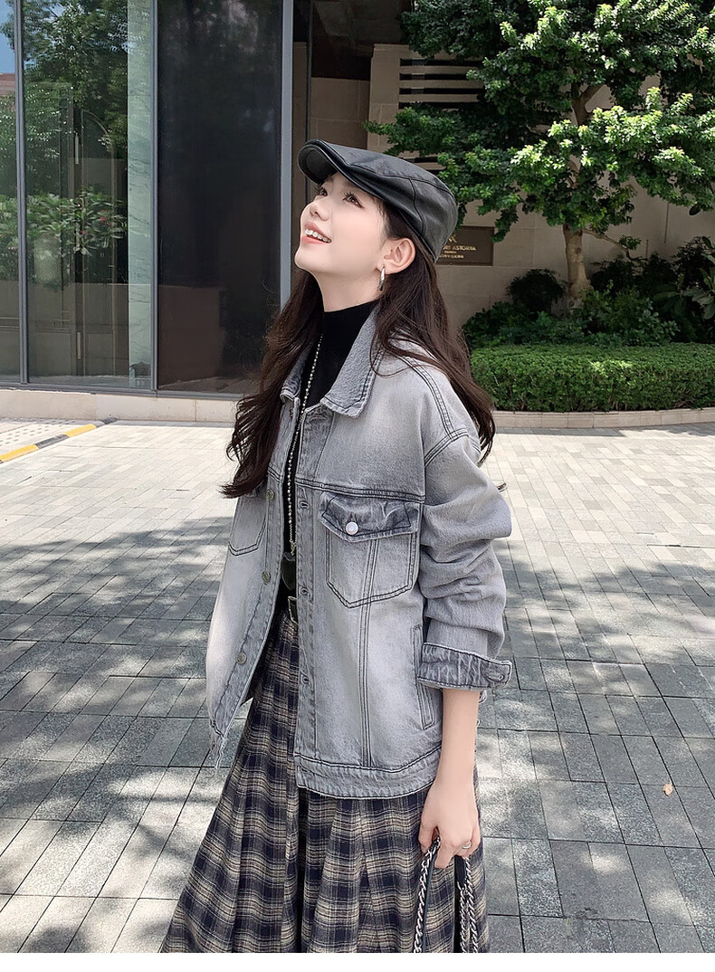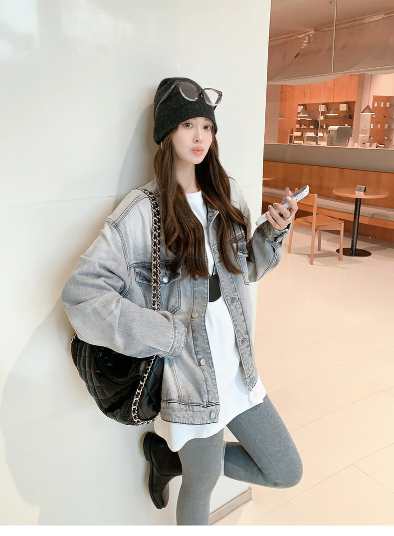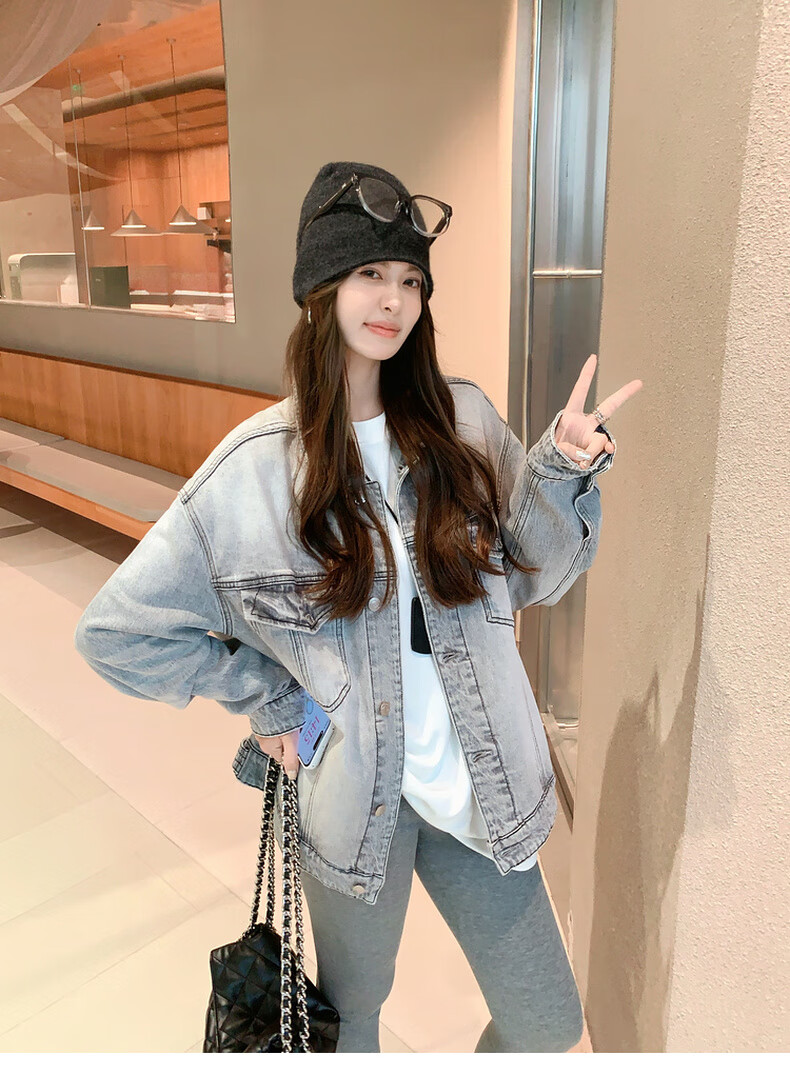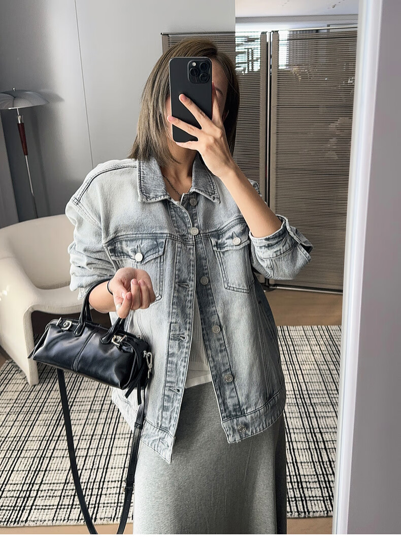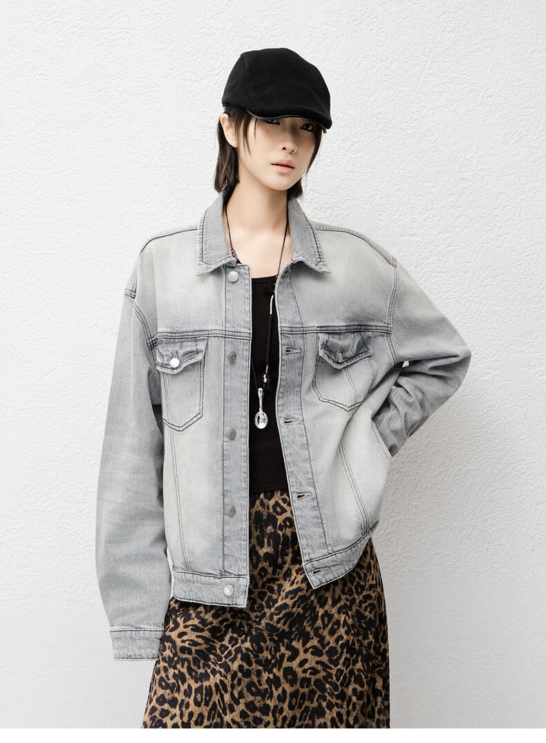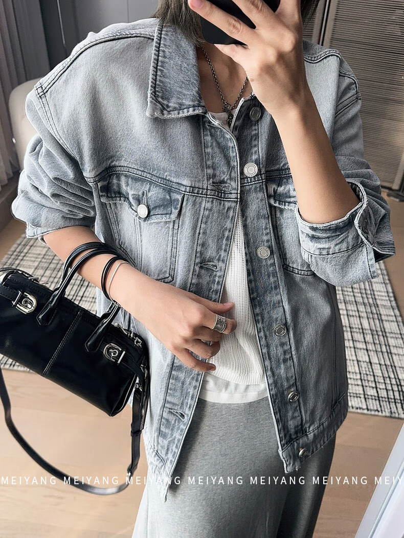 MEIYANG Stonewash Gray Denim Jacket Lyocell Cotton Simple Versatile Jacket Top Loose Casual Winter New Style Gray L