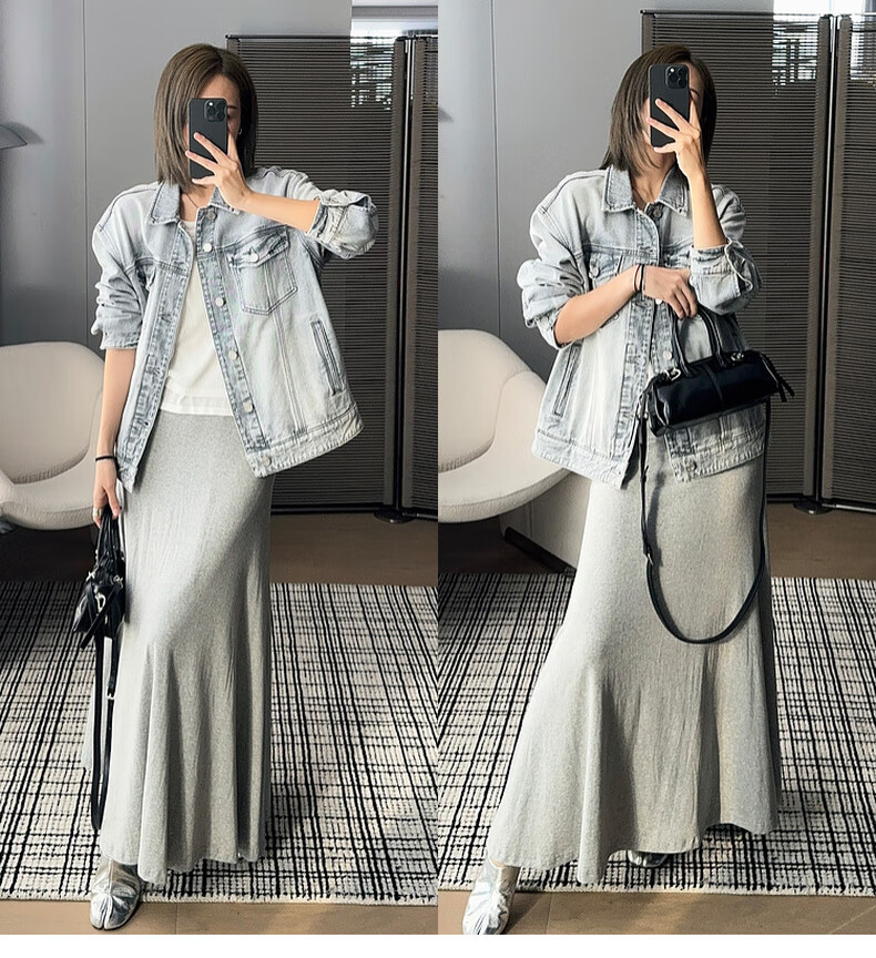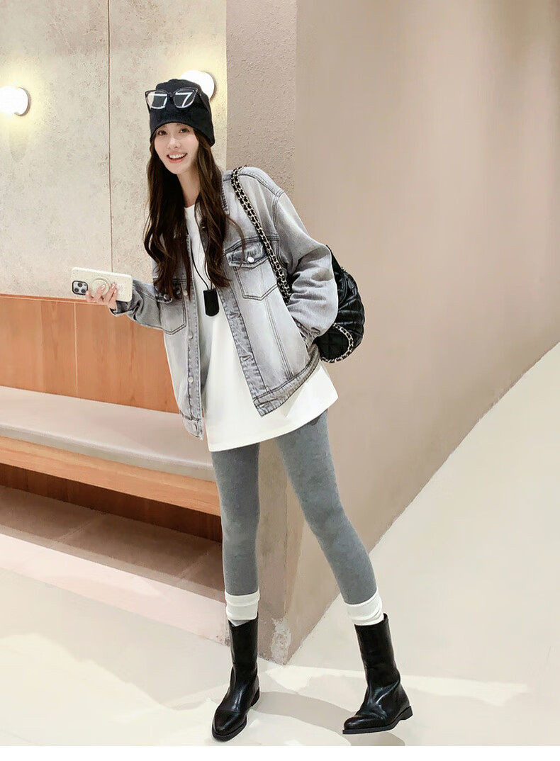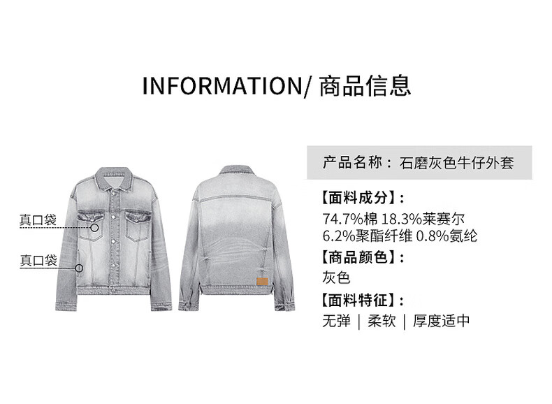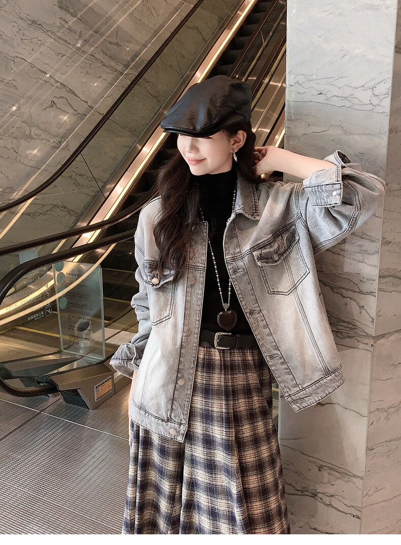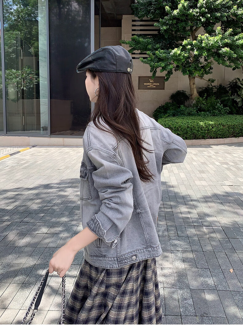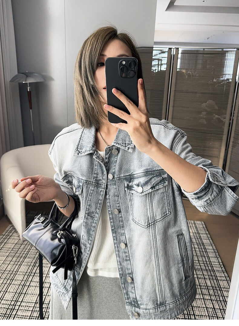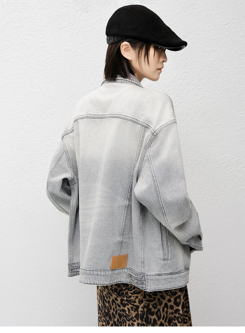 MEIYANG Stonewash Gray Denim Jacket Lyocell Cotton Simple Versatile Jacket Top Loose Casual Winter New Style Gray L