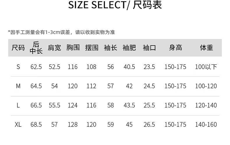 China (cm) 165 / 88-90 170 / 96-98 175 / 108-110 180 / 118-122 185 / 126-130