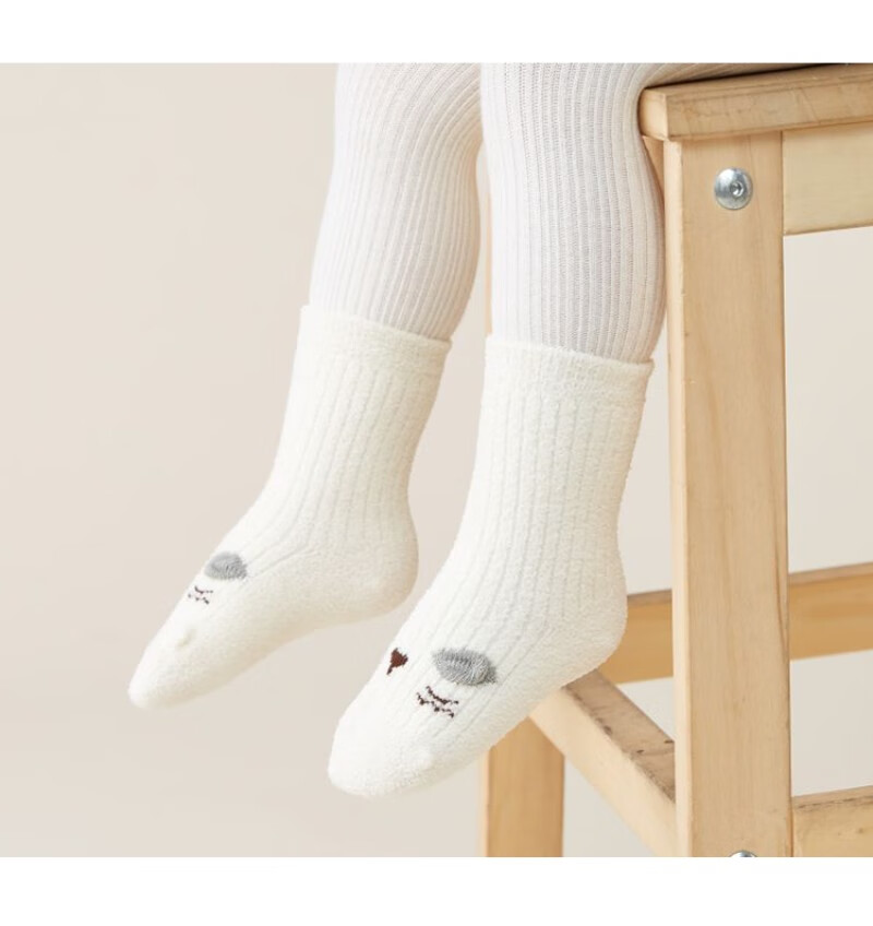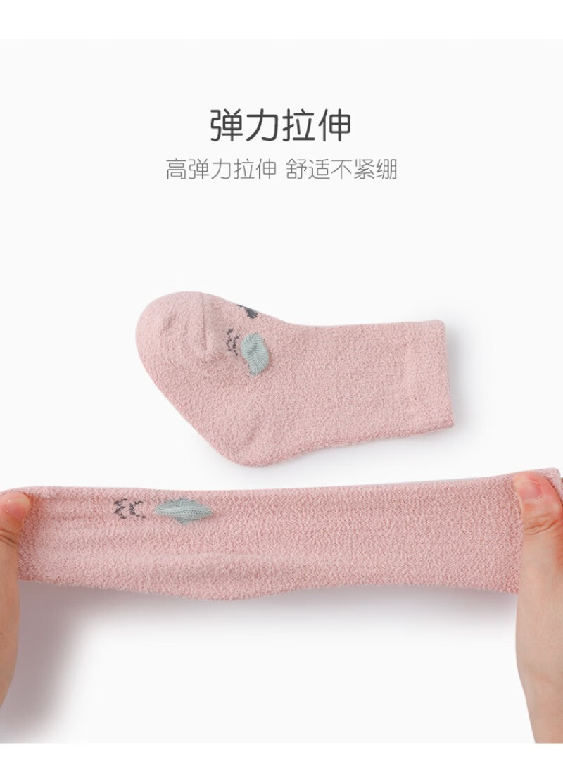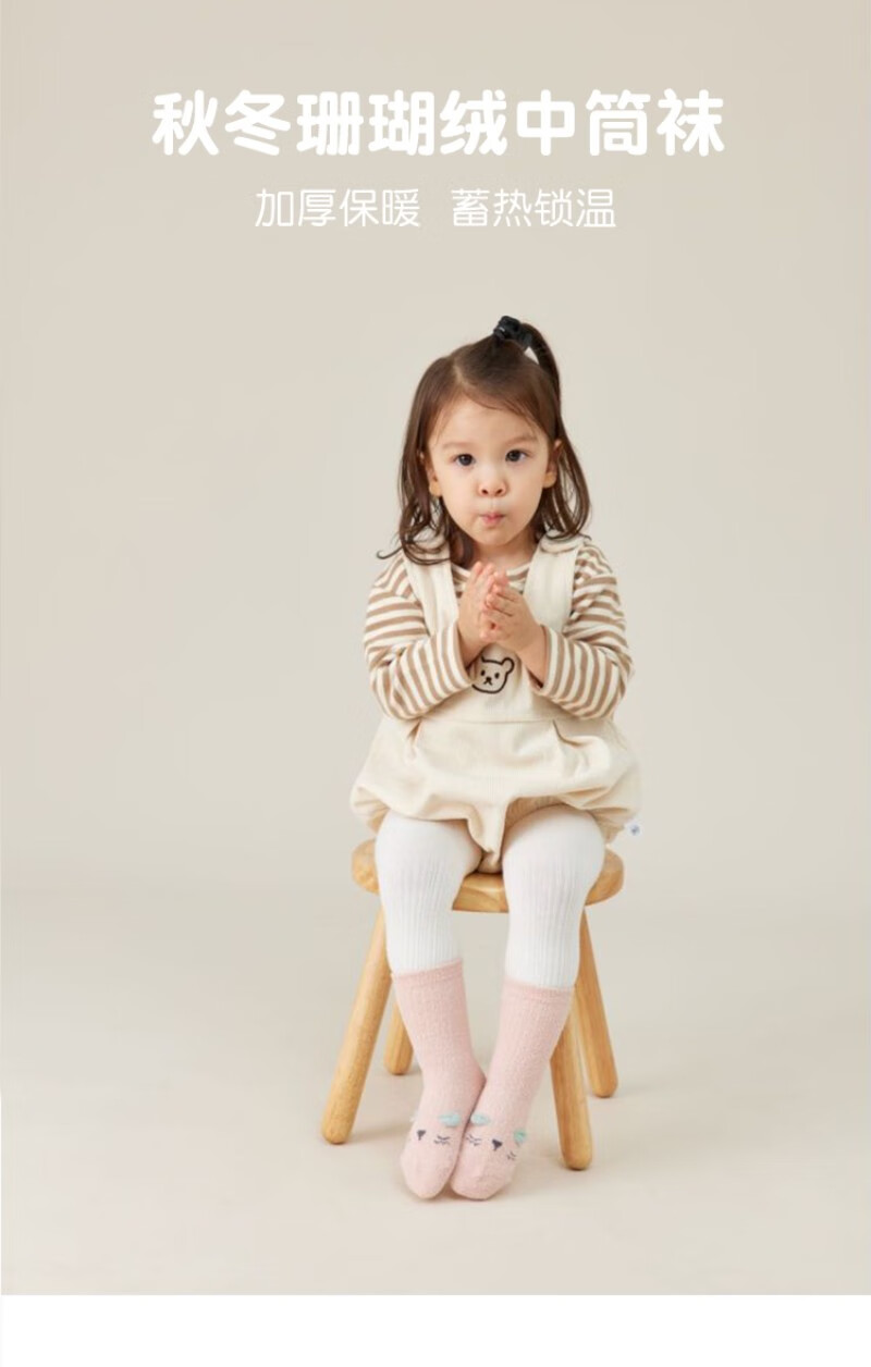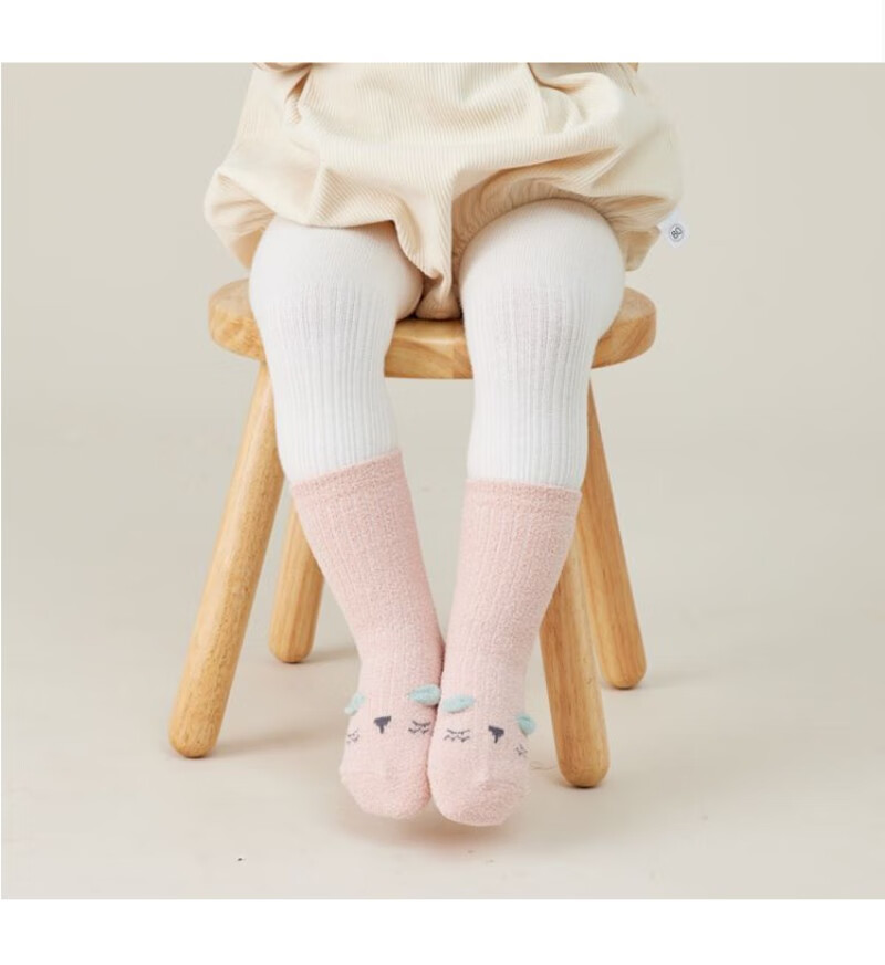 Baby socks, thickened and warm in autumn and winter, baby loose-mouthed mid-calf socks for boys and girls, velvet cute cartoon socks, MY-pink + white, 2 pairs, one size fits all, S 0-1 years old, recommended foot length 10-12CM