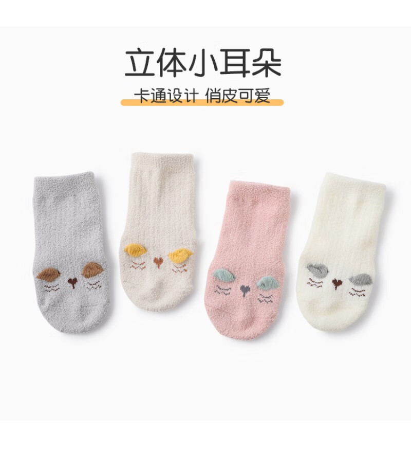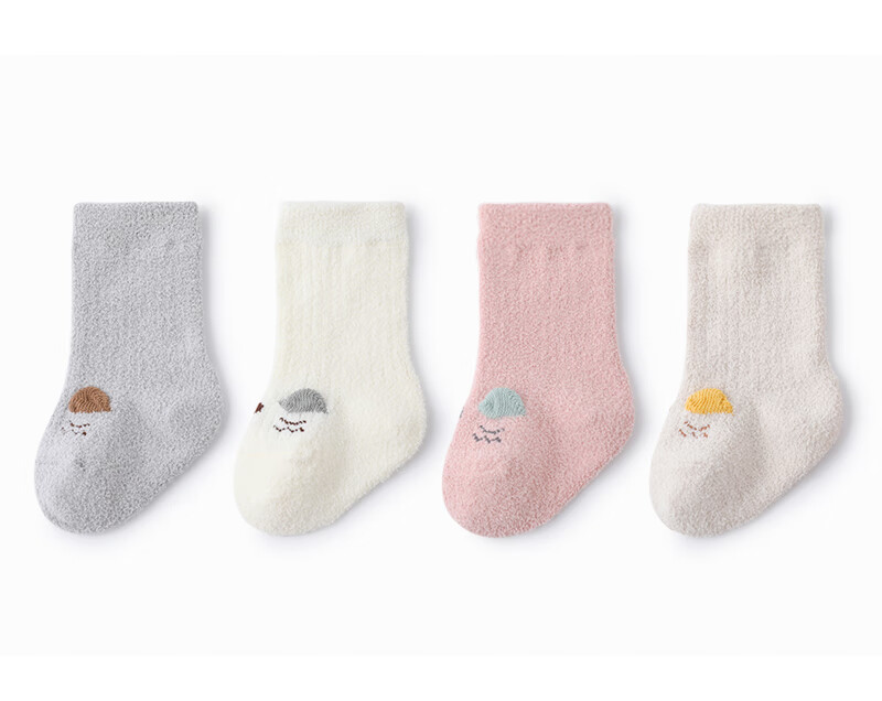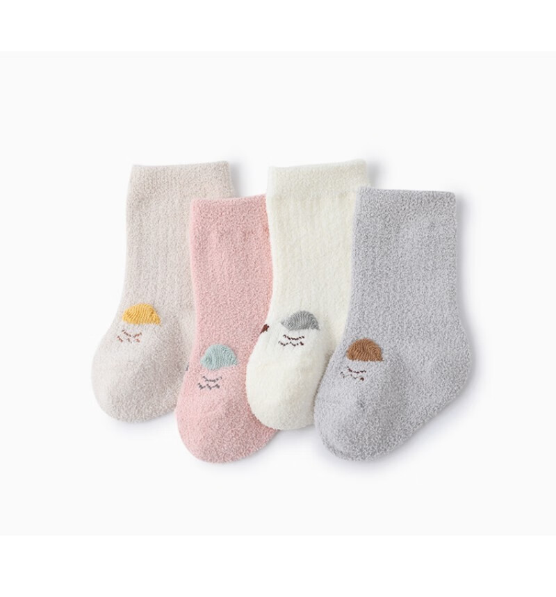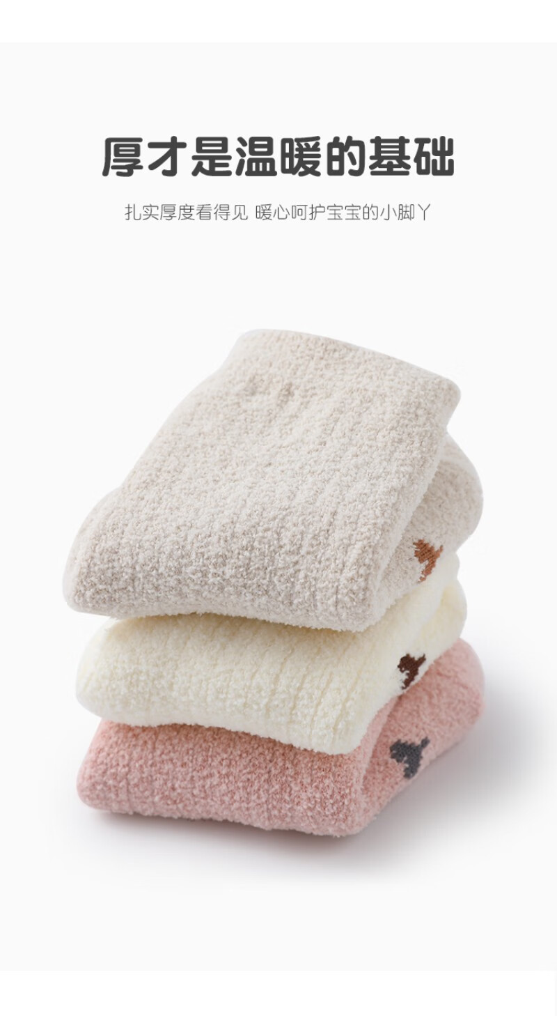 Baby socks, thickened and warm in autumn and winter, baby loose-mouthed mid-calf socks for boys and girls, velvet cute cartoon socks, MY-pink + white, 2 pairs, one size fits all, S 0-1 years old, recommended foot length 10-12CM