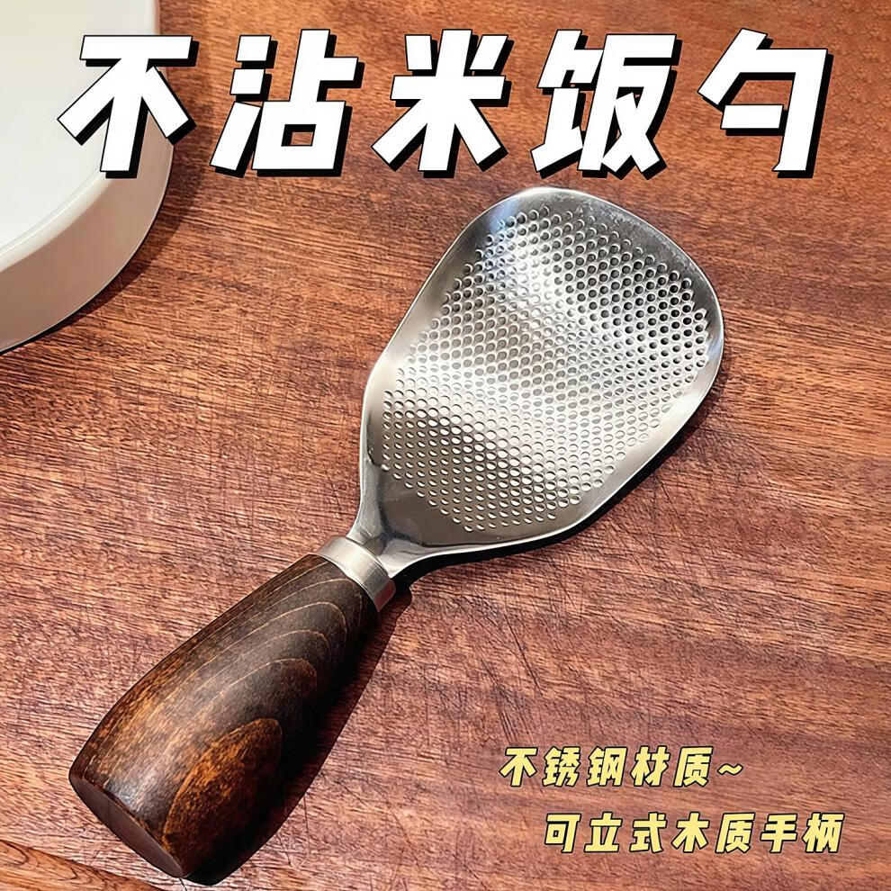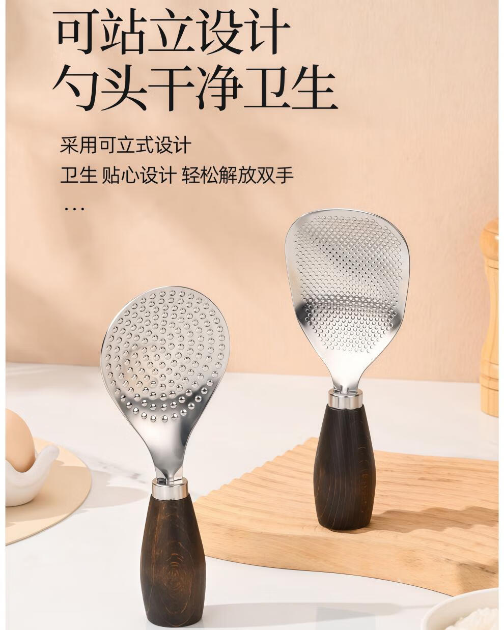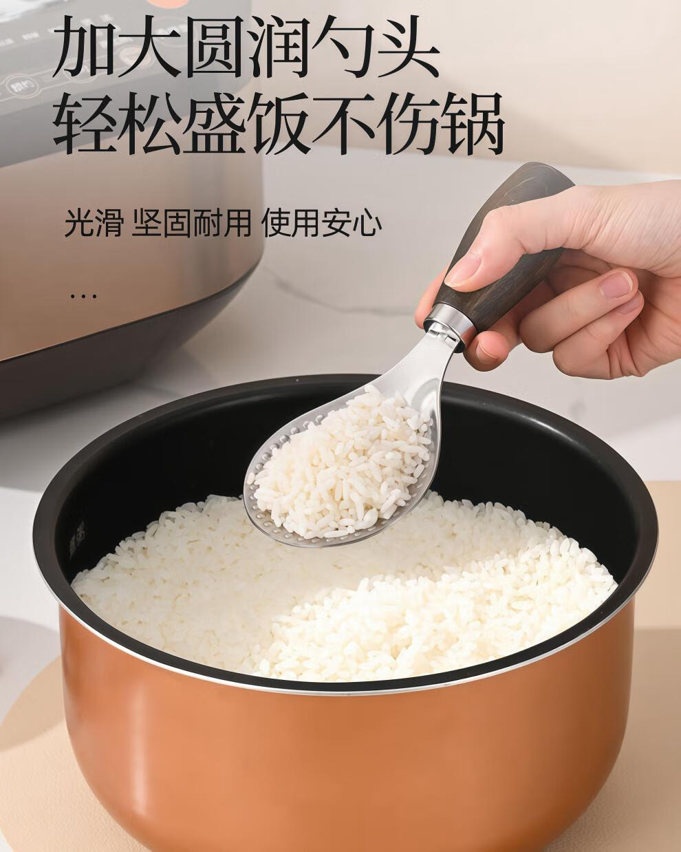 The same rice spoon as Fat Donglai can stand upright, non-stick rice, stainless steel rice shovel with imitation walnut handle, upgraded thickened stainless steel rice spoon, 1 pack, can stand upright
