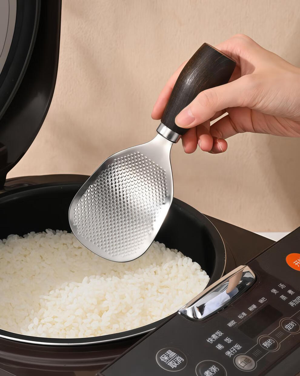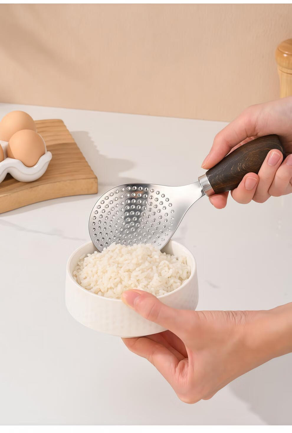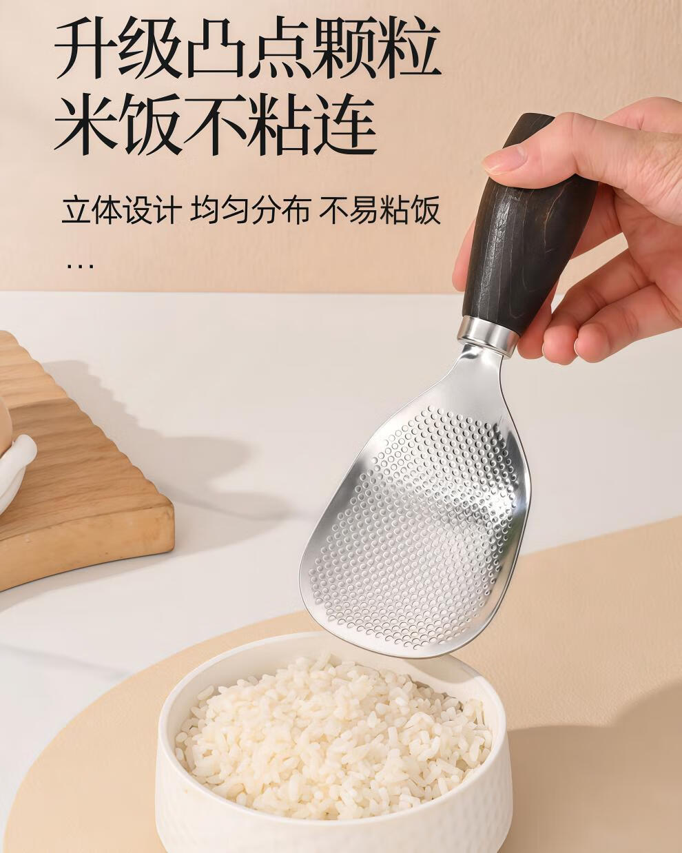 The same rice spoon as Fat Donglai can stand upright, non-stick rice, stainless steel rice shovel with imitation walnut handle, upgraded thickened stainless steel rice spoon, 1 pack, can stand upright