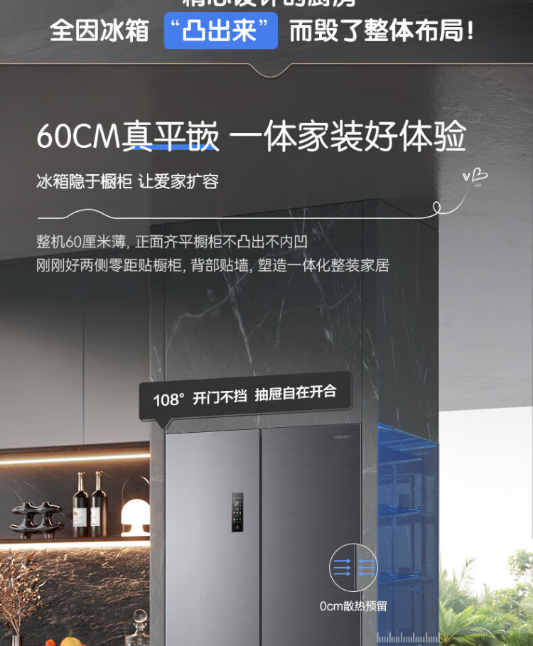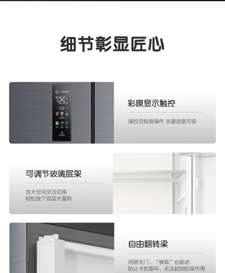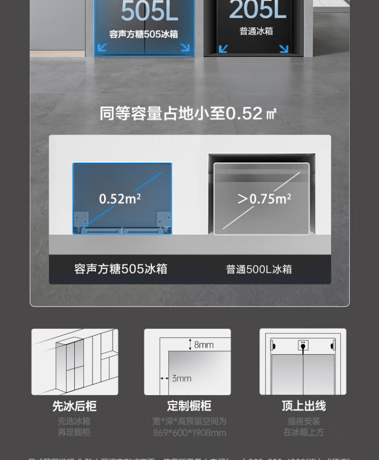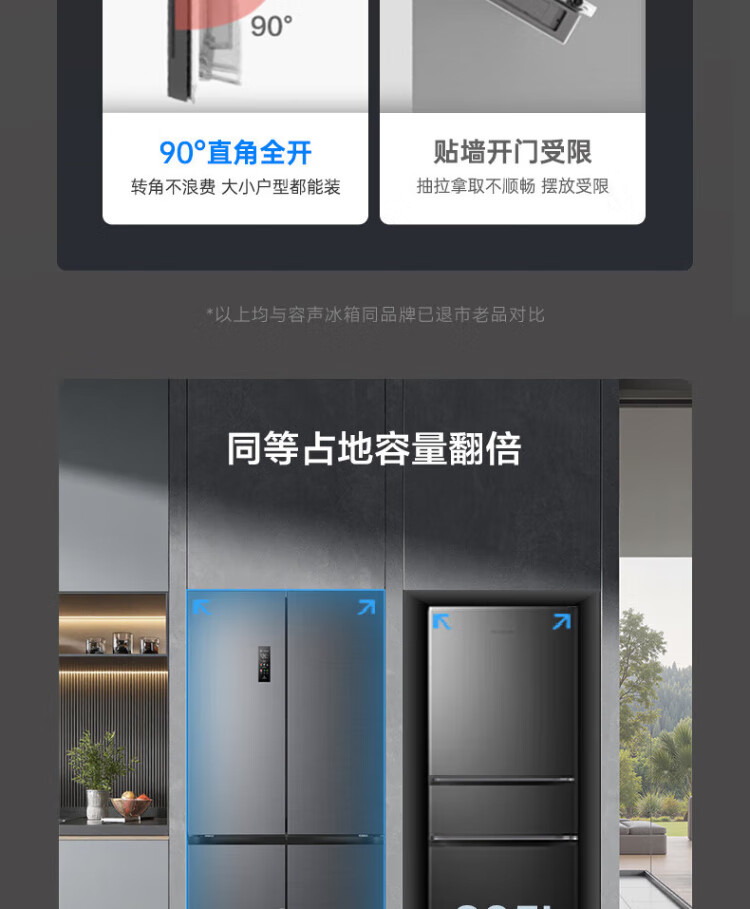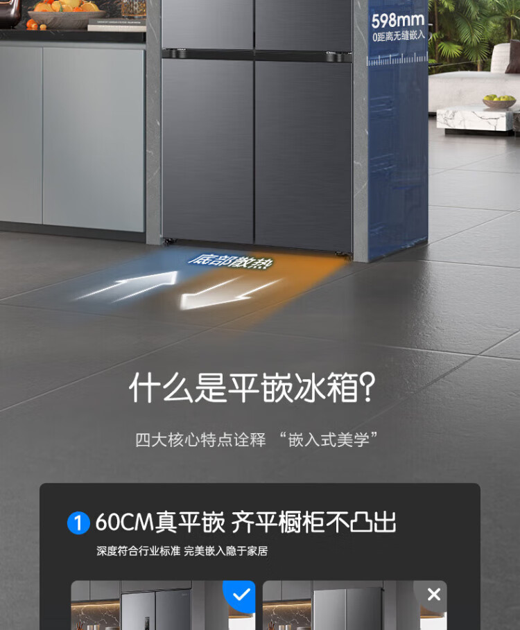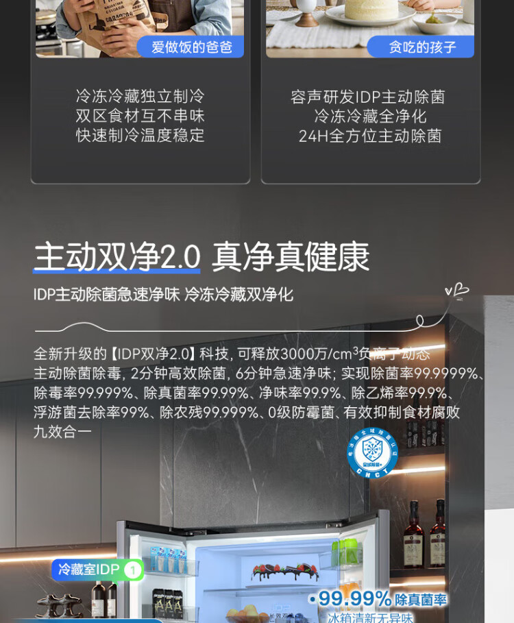 Rongsheng Cube Sugar 505L Cross Door Refrigerator Dual System Dual Cycle Ultra-Thin Zero Embedded Active Sterilization Level One Energy Efficiency Gray BCD-505P60CZMAD National Subsidy World Cup Sugar Cube Series | Odor-Free Dual System | 505 Gray