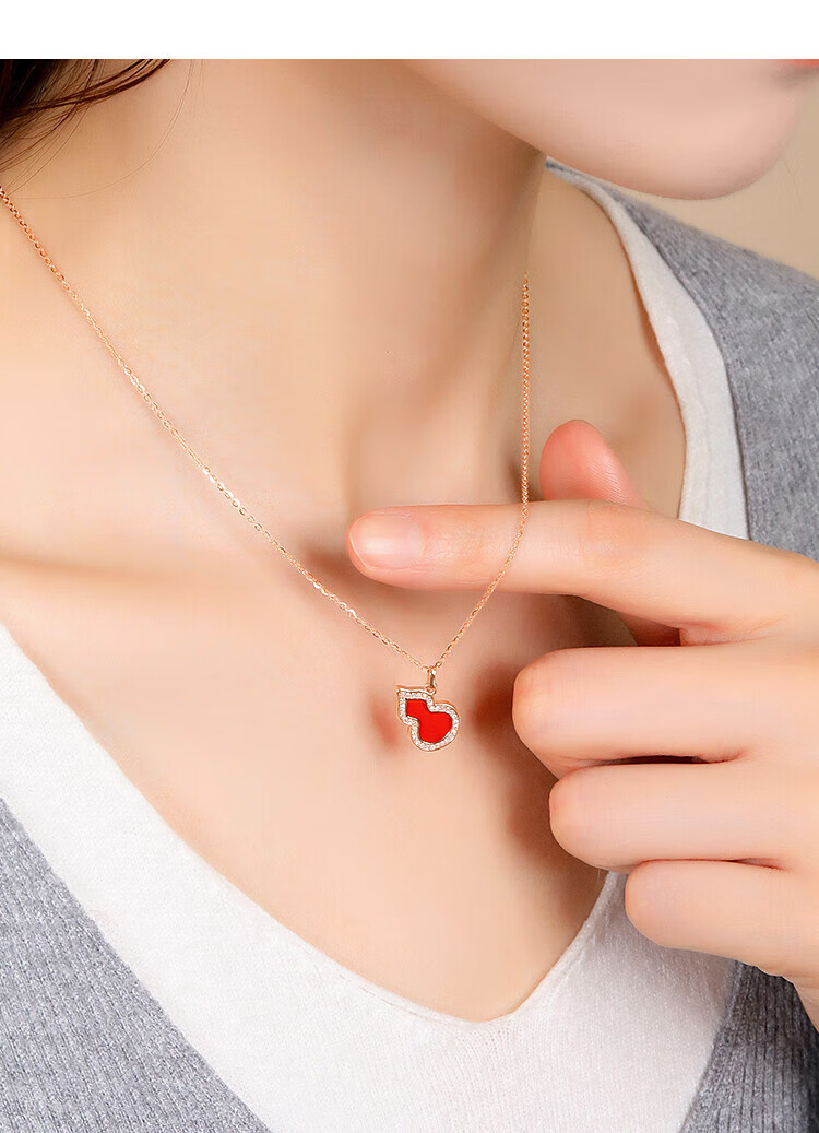 Fuwu Jewelry 18k gold diamond agate pendant new gourd festive Fulu necklace for wife and girlfriend birthday gift 18