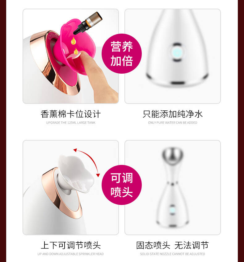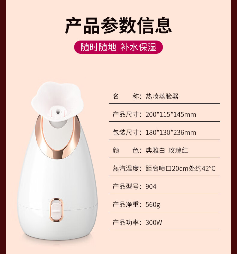 Hot spray facial steamer to hydrate and moisturize, household facial steamer, beauty instrument, delicate spray machine, facial humidifier, nano spray to hydrate, girlfriend and elders Christmas gift 904 red