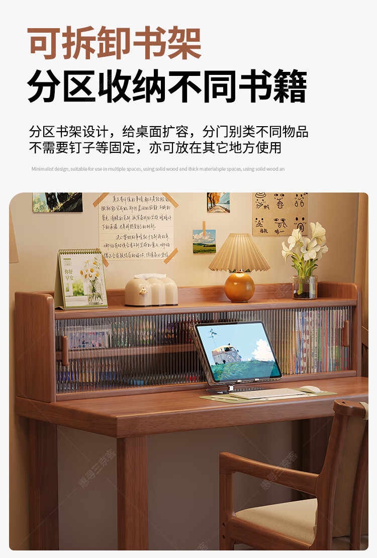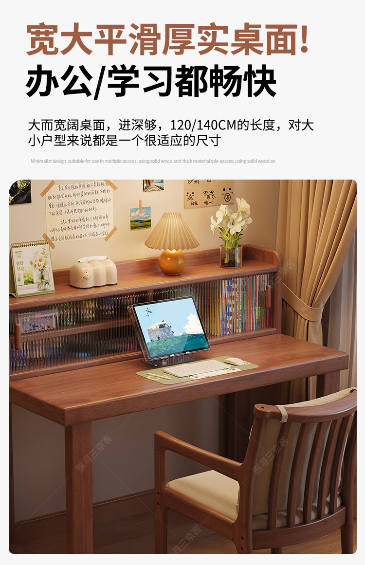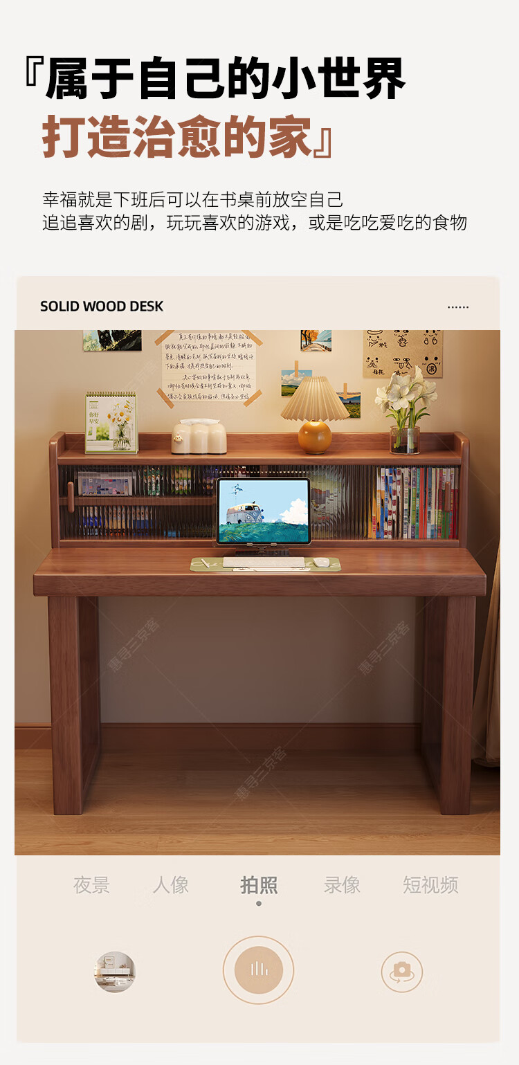 Huixun solid wood desk and bookshelf integrated bedroom simple computer desk home large board study table small apartment student writing desk ivory white #desk + bookshelf 120cm*60cm*75cm total height 109cm