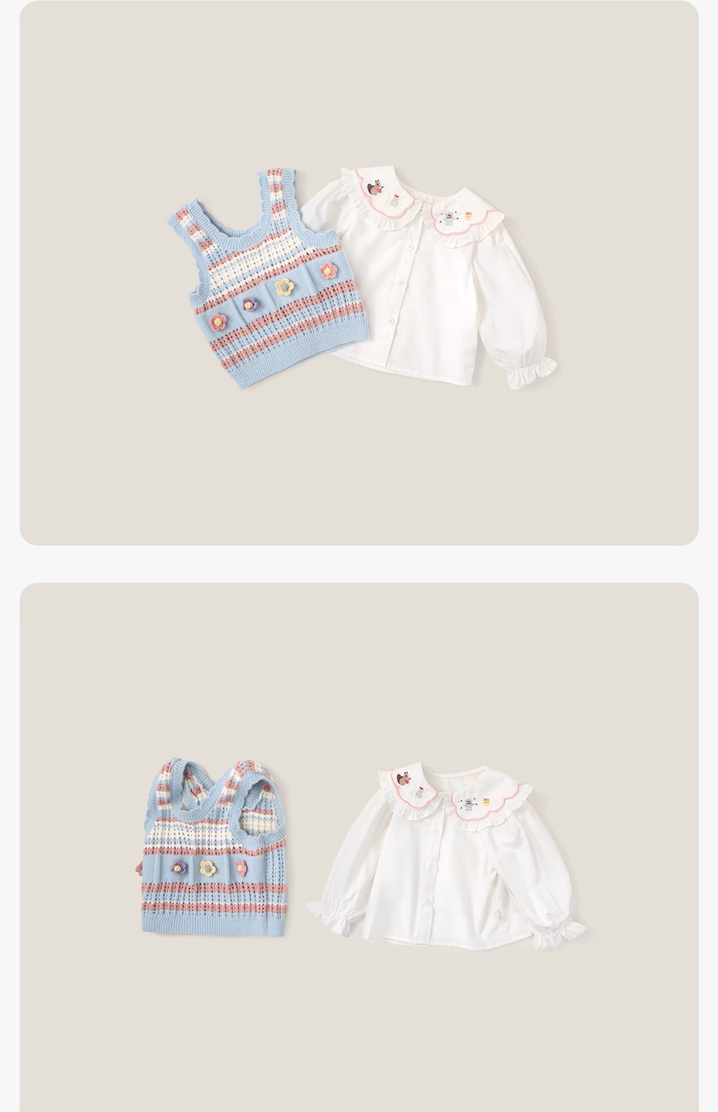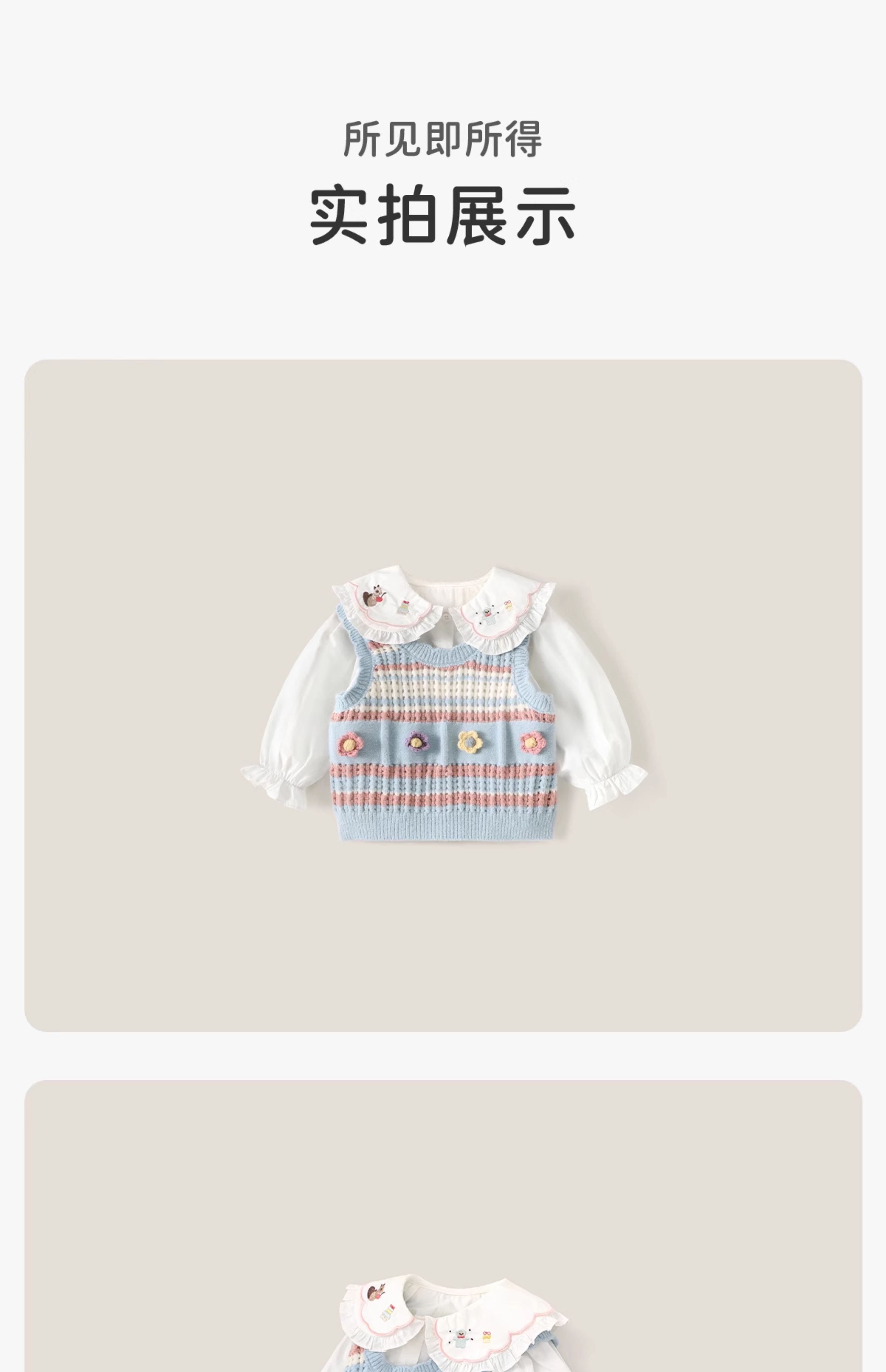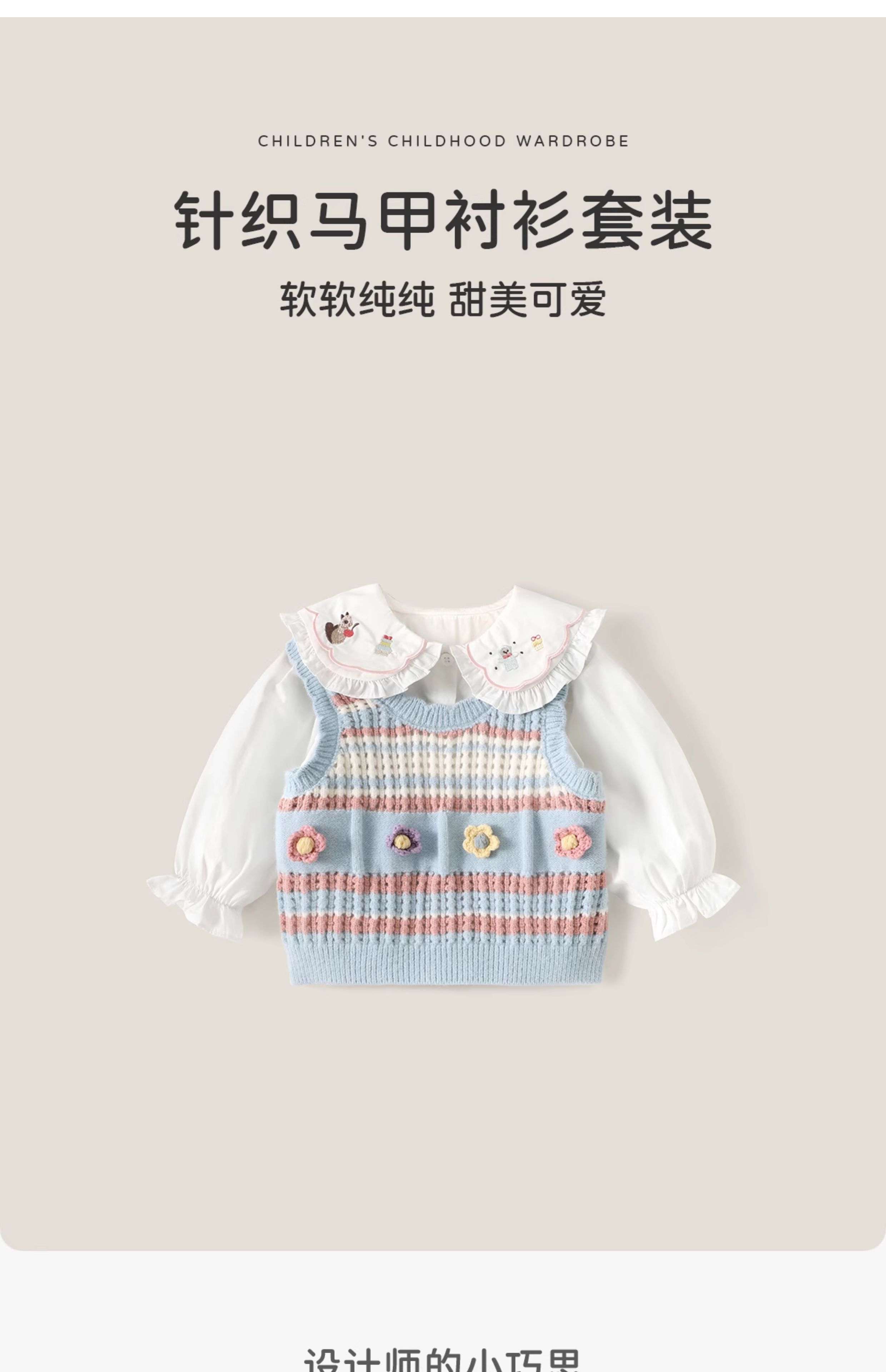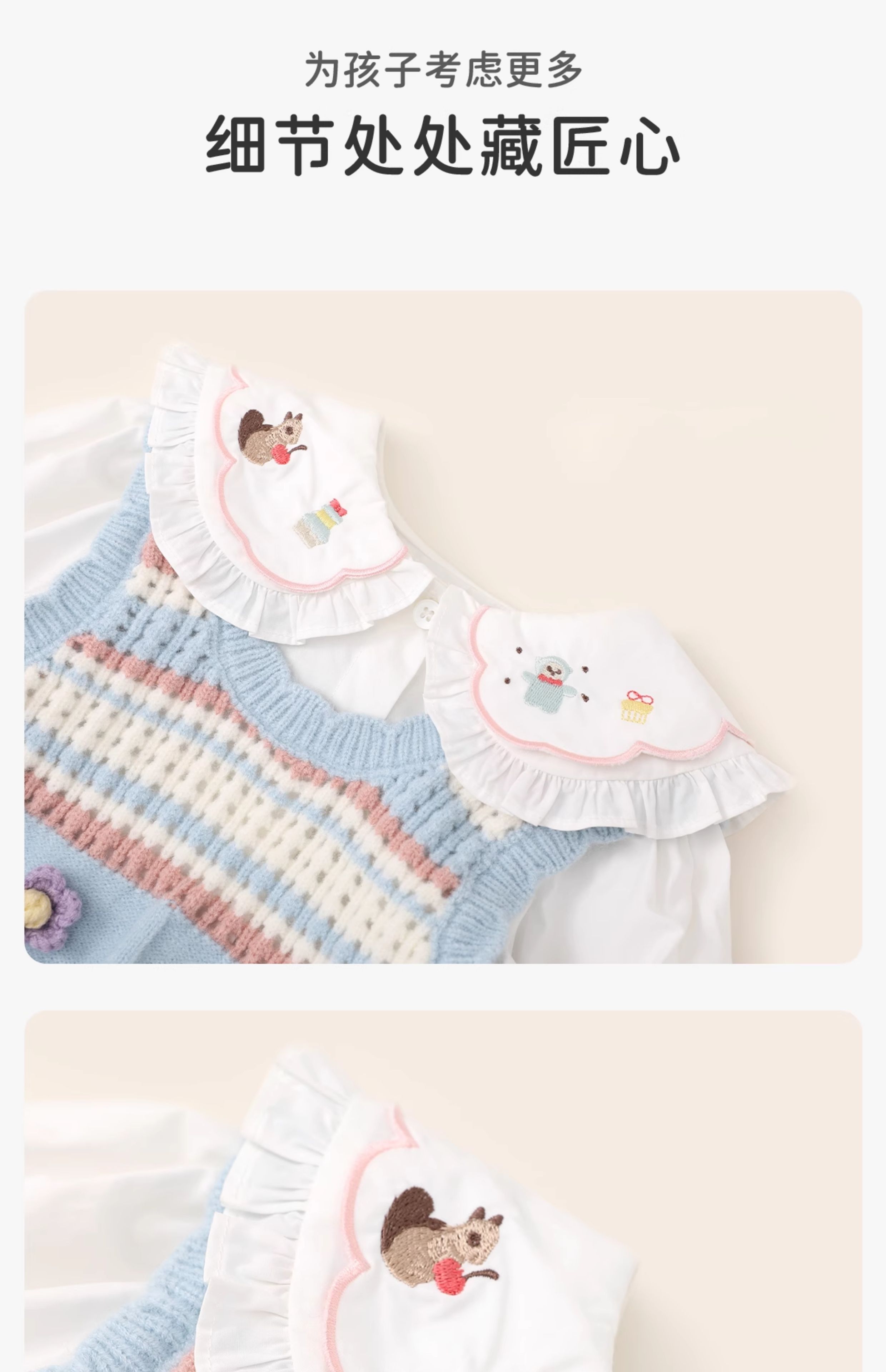 Om Bear Girl Doll Shirt Spring and Autumn 2025 New White Little Girl Baby Children Early Autumn Long Sleeve Shirt Pants 130 130cm
