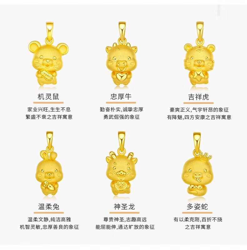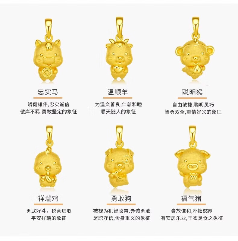Di is au999 gold zodiac necklace 999 gold pendant imitation pure gold zodiac sign for girlfriend gift gold zodiac horse 0.7g + 18K gold necklace +