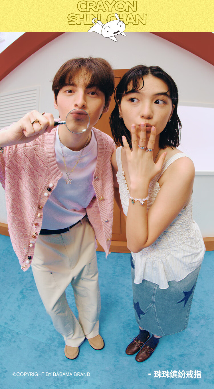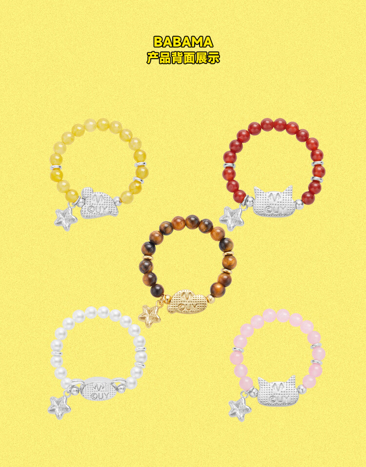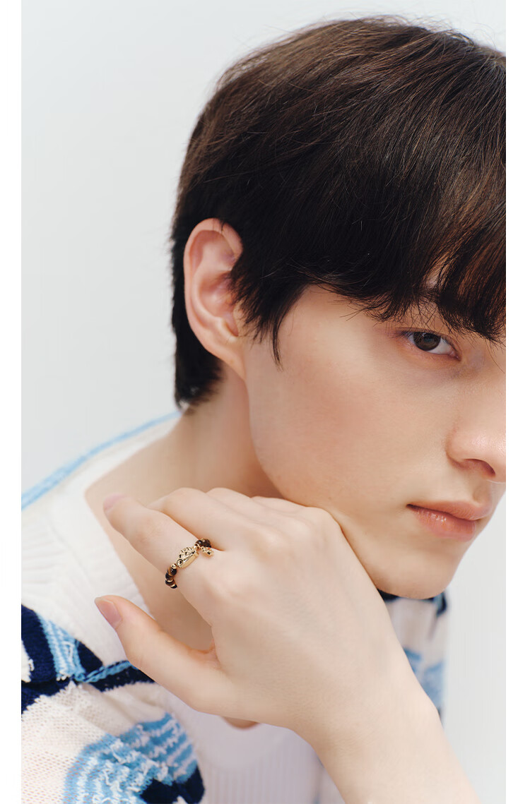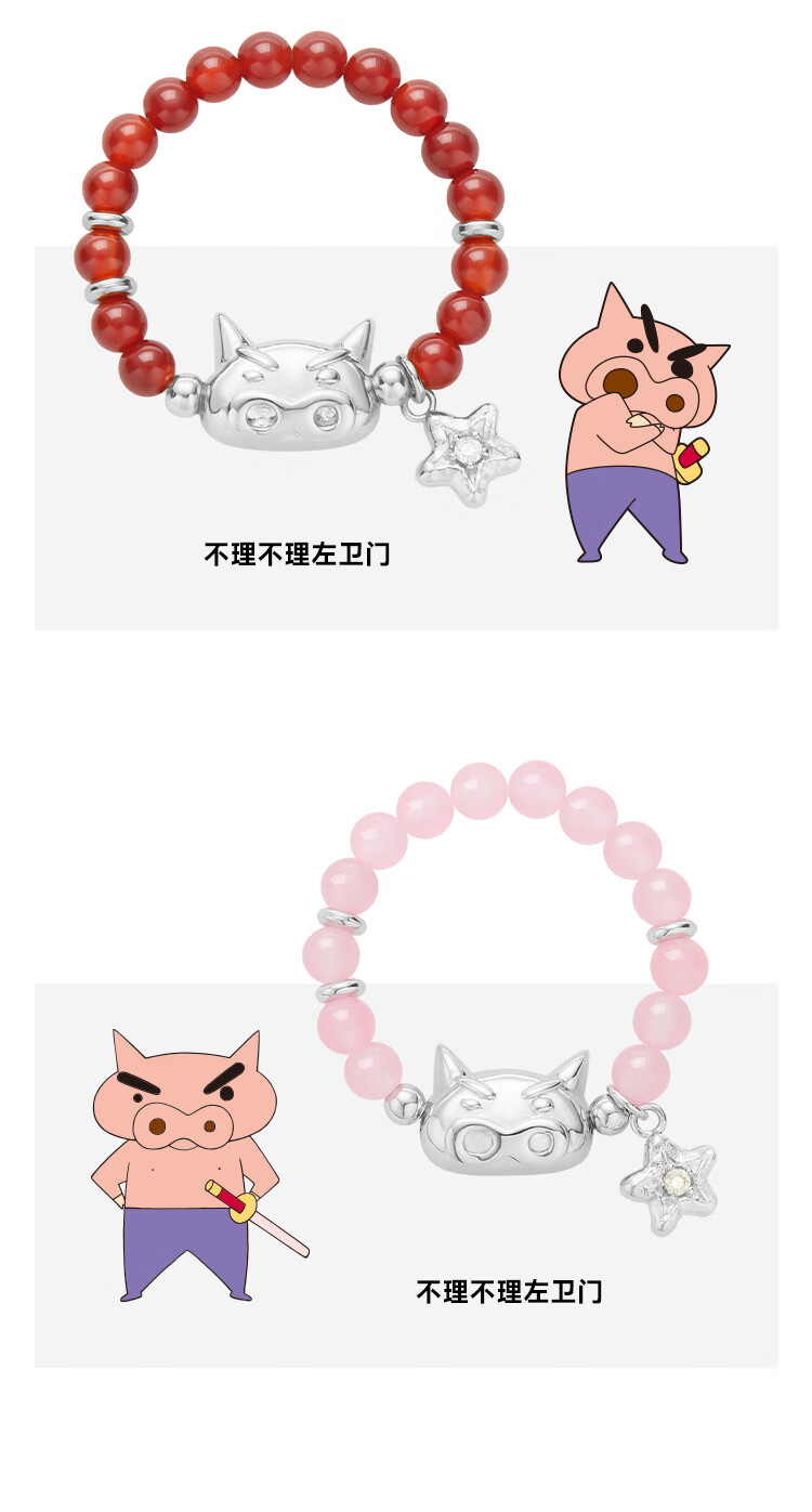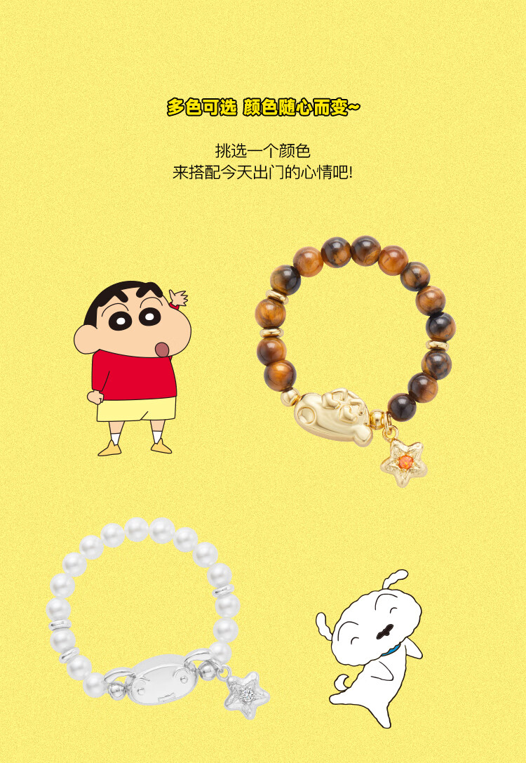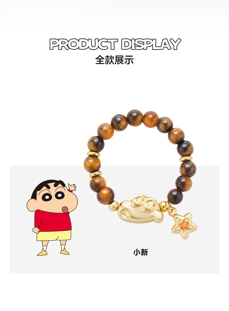 BABAMA Crayon Shin-chan Colorful Rings for Men and Women Couples Birthday Gifts Tiger Eye Stone (54cm)